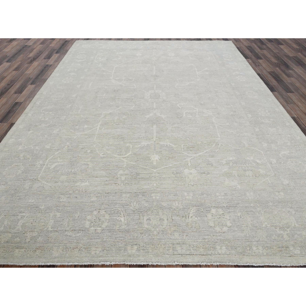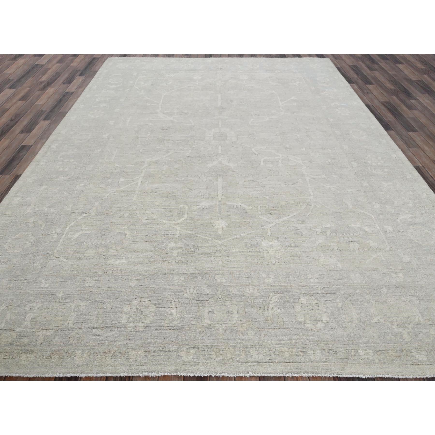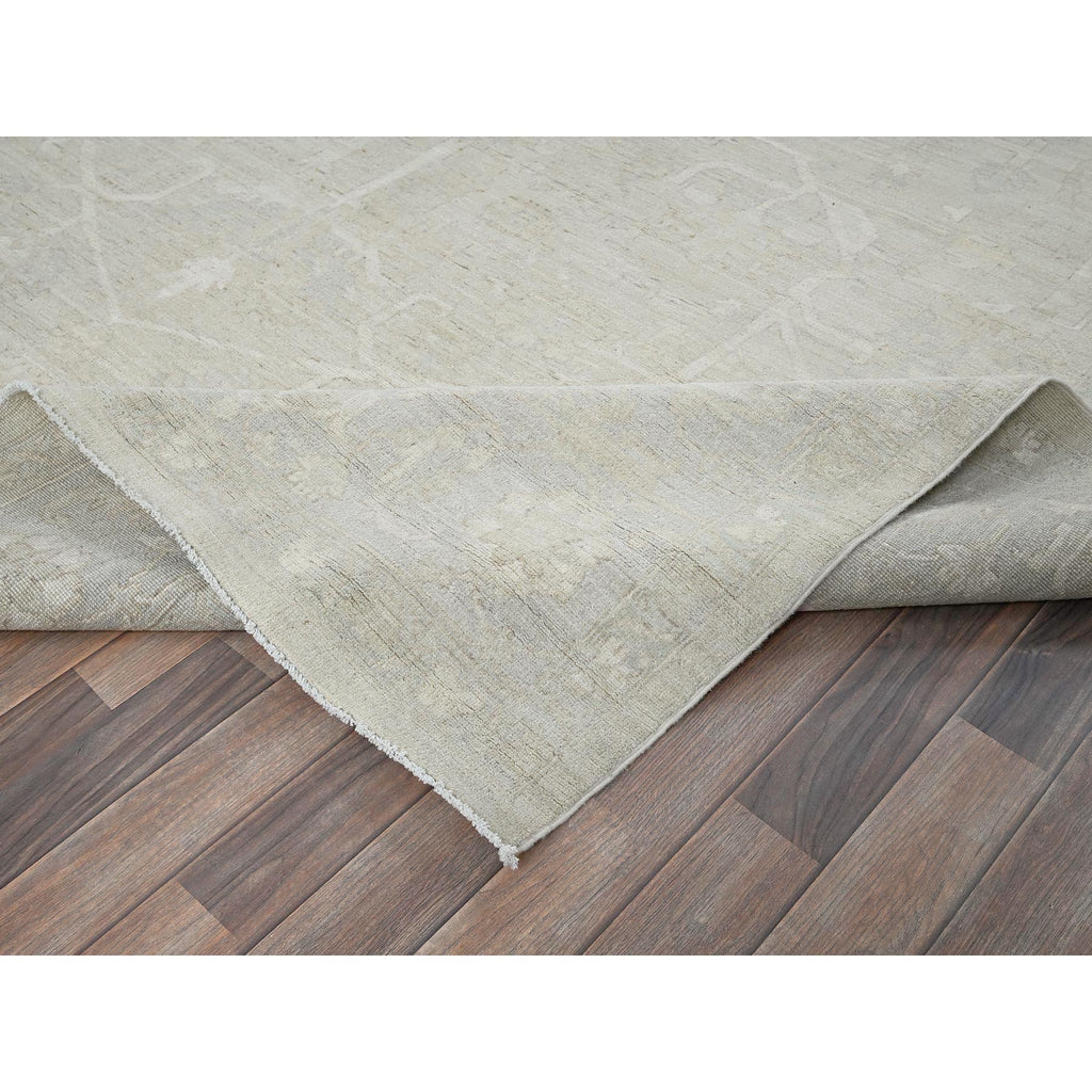 9'x11'10" Oyster White, Washed Out Peshawar With All Over Vines Design, Hand Knotted, 100% Wool, Densely Woven, Oriental Rug FWR5526