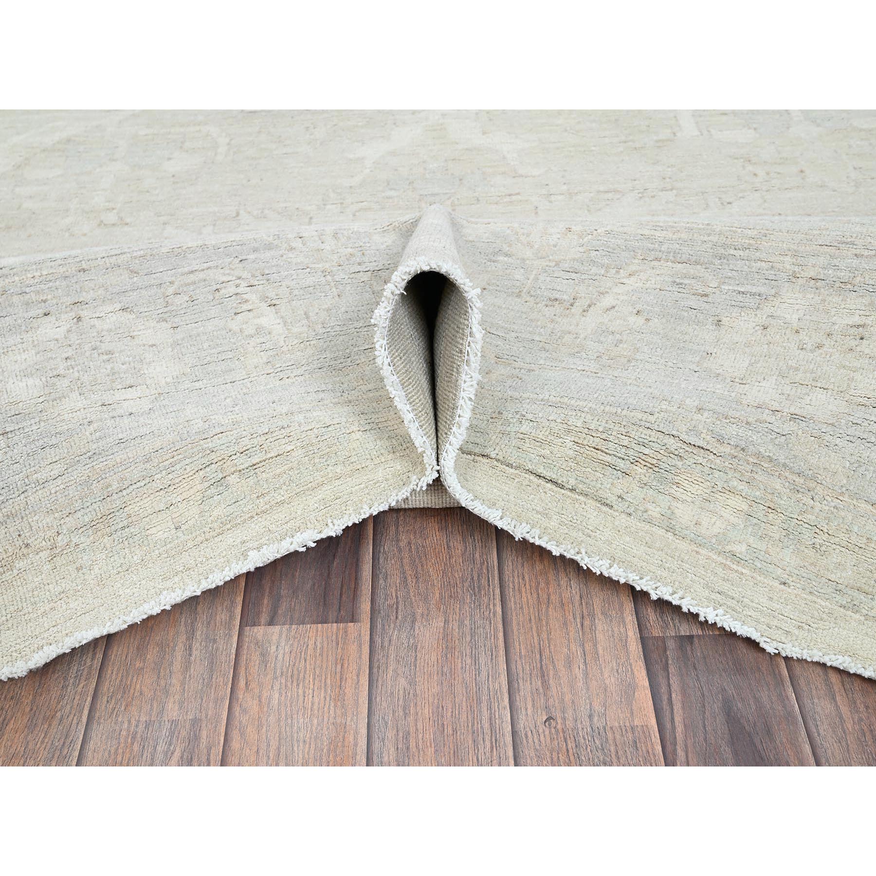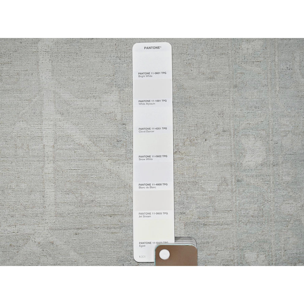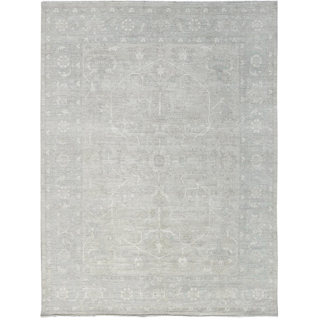 9'x11'10" Oyster White, Washed Out Peshawar With All Over Vines Design, Hand Knotted, 100% Wool, Densely Woven, Oriental Rug FWR5526