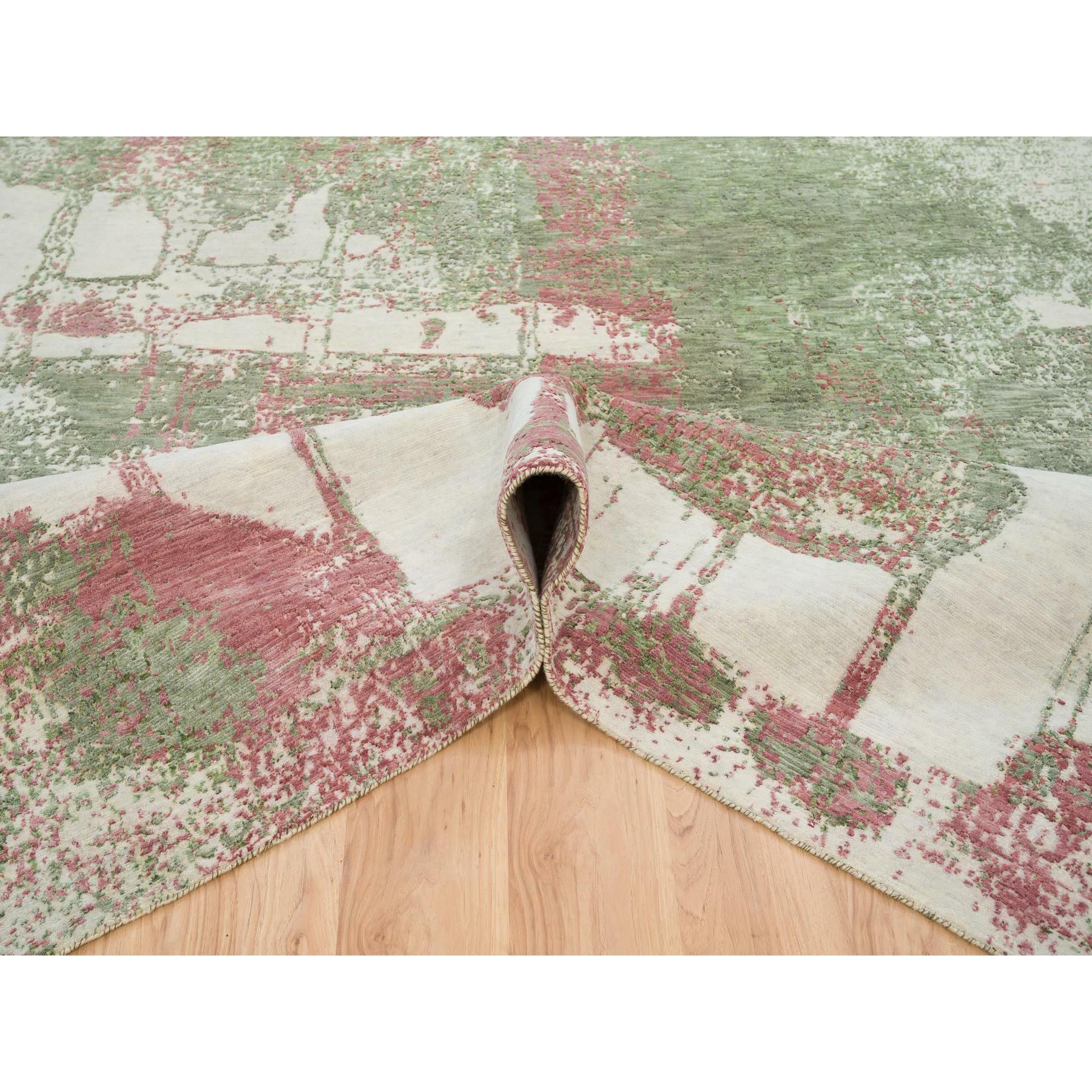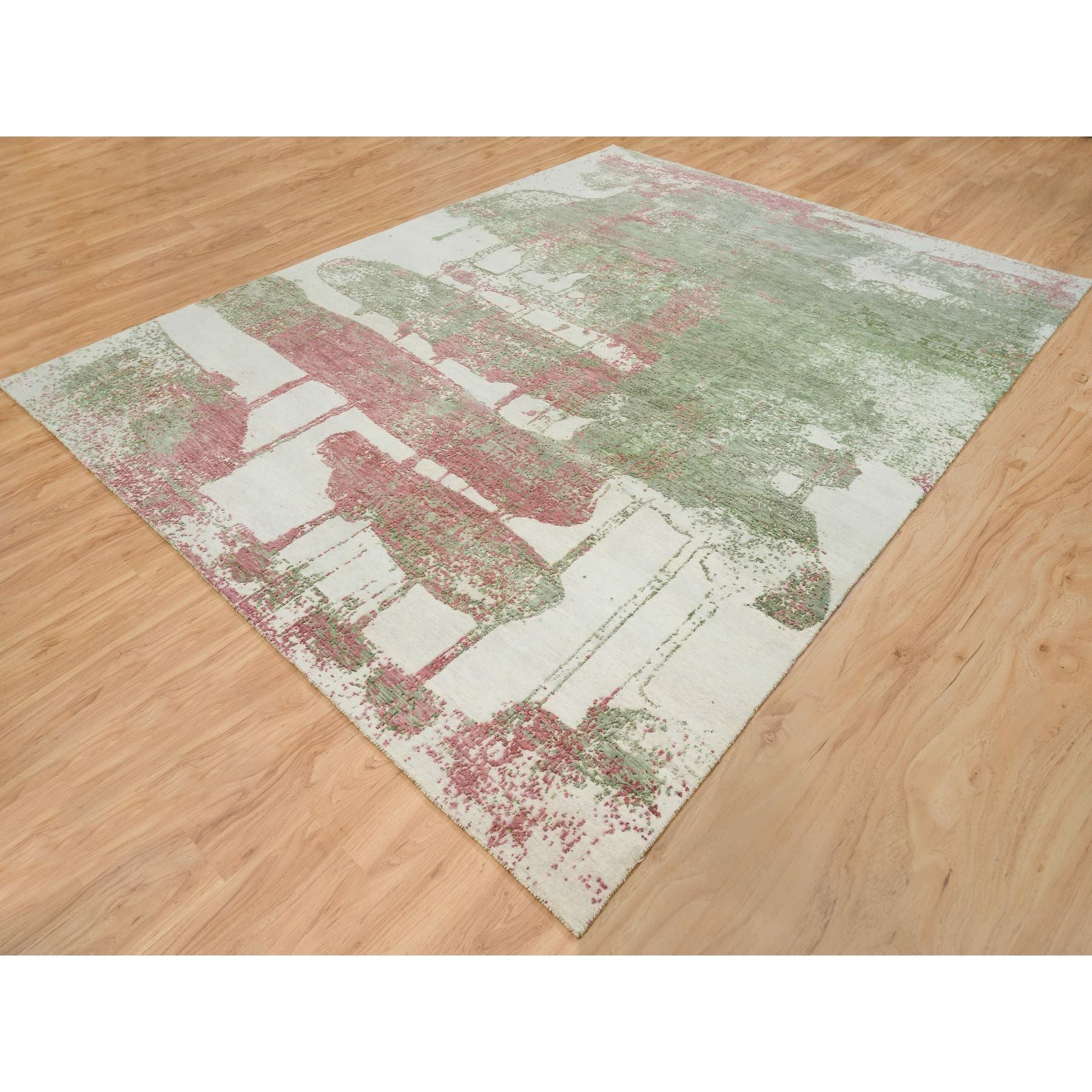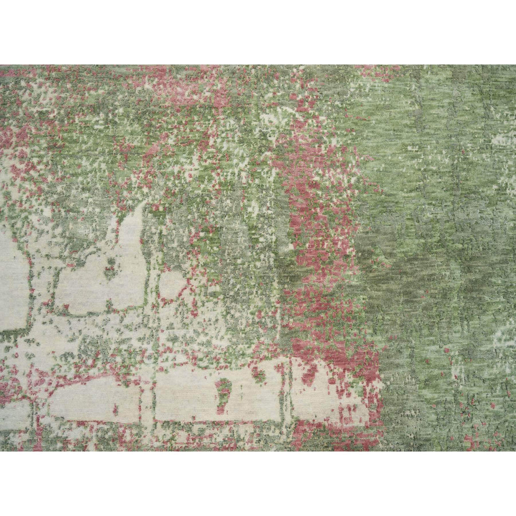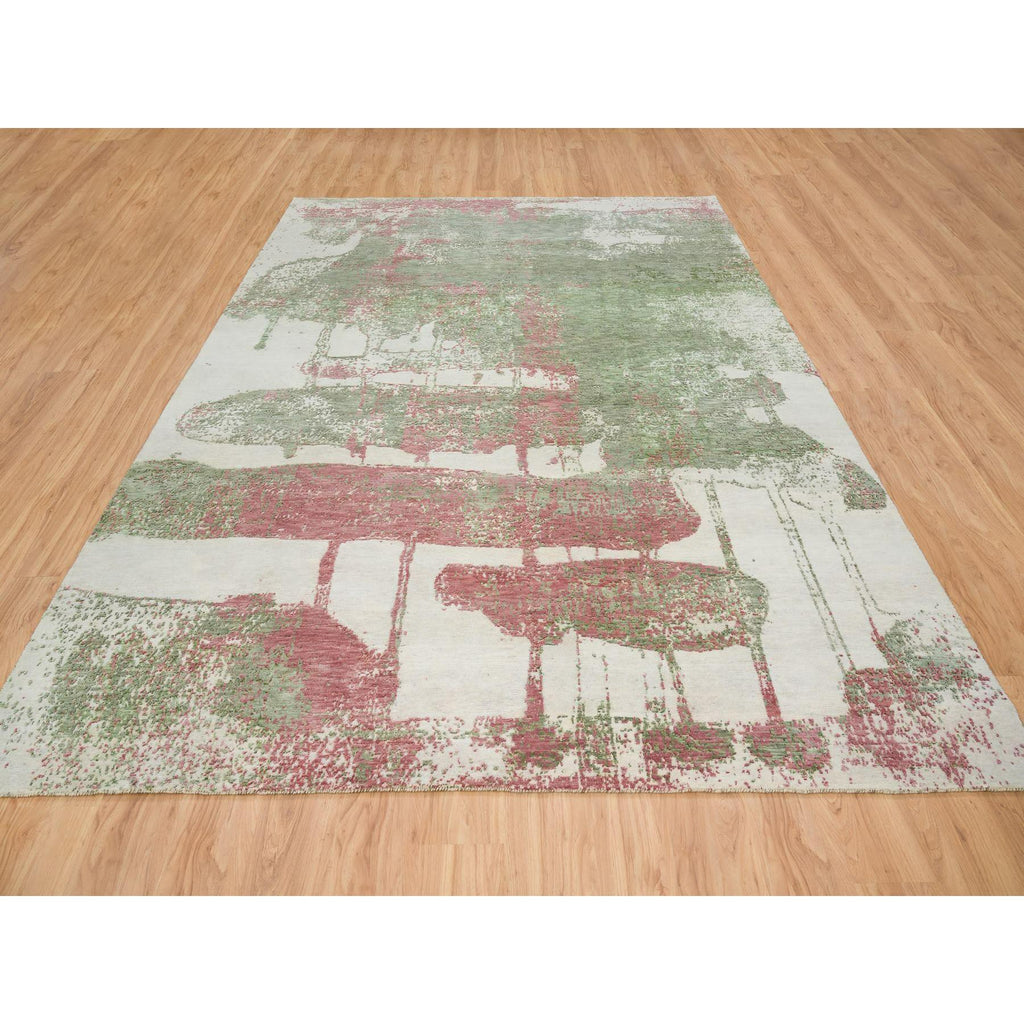 9'x11'10" Spring Green, All Wool, Thick And Plush, Tone On Tone, Hand Knotted, Pastel Colors Dripping Clouds Design, Modern Rug FWR393738