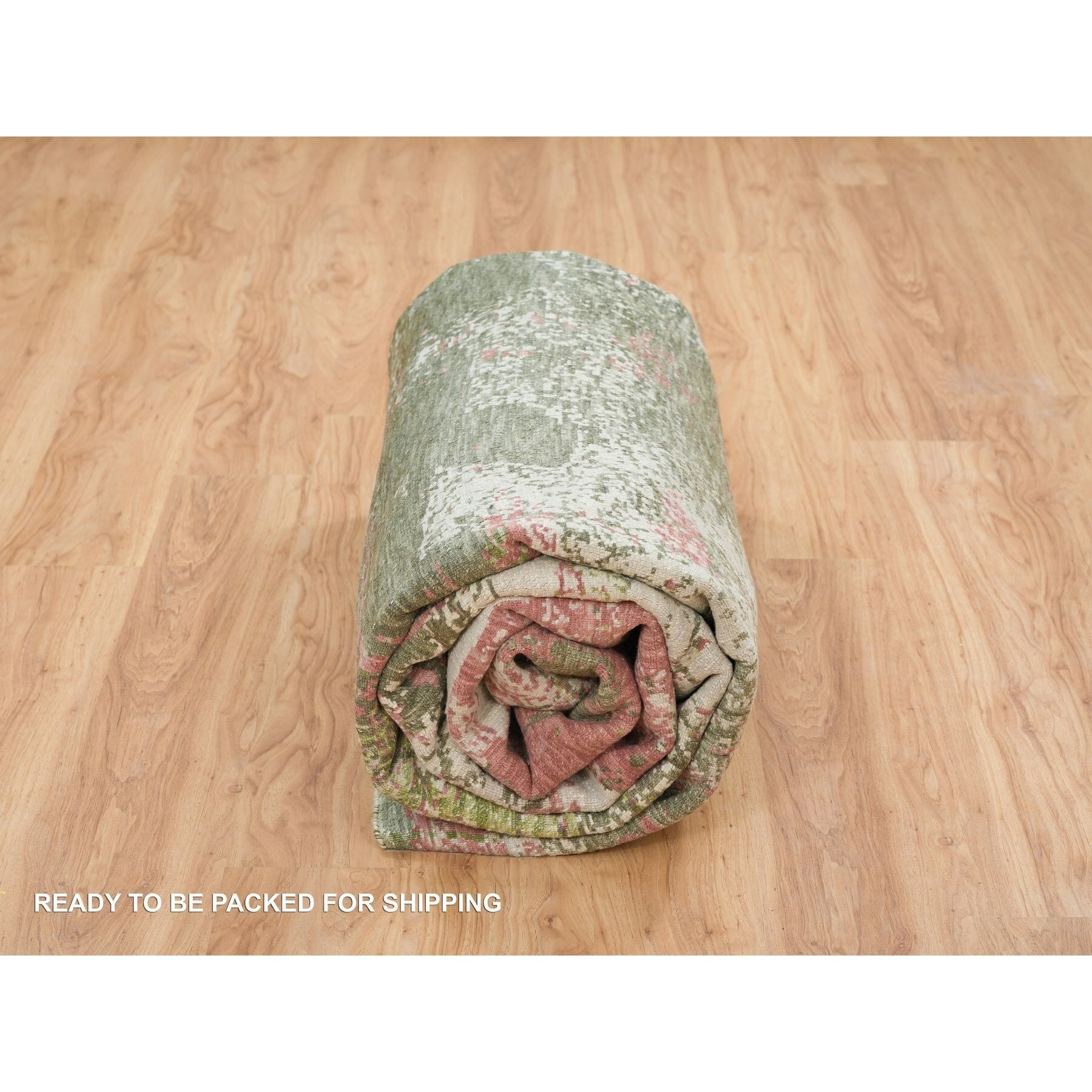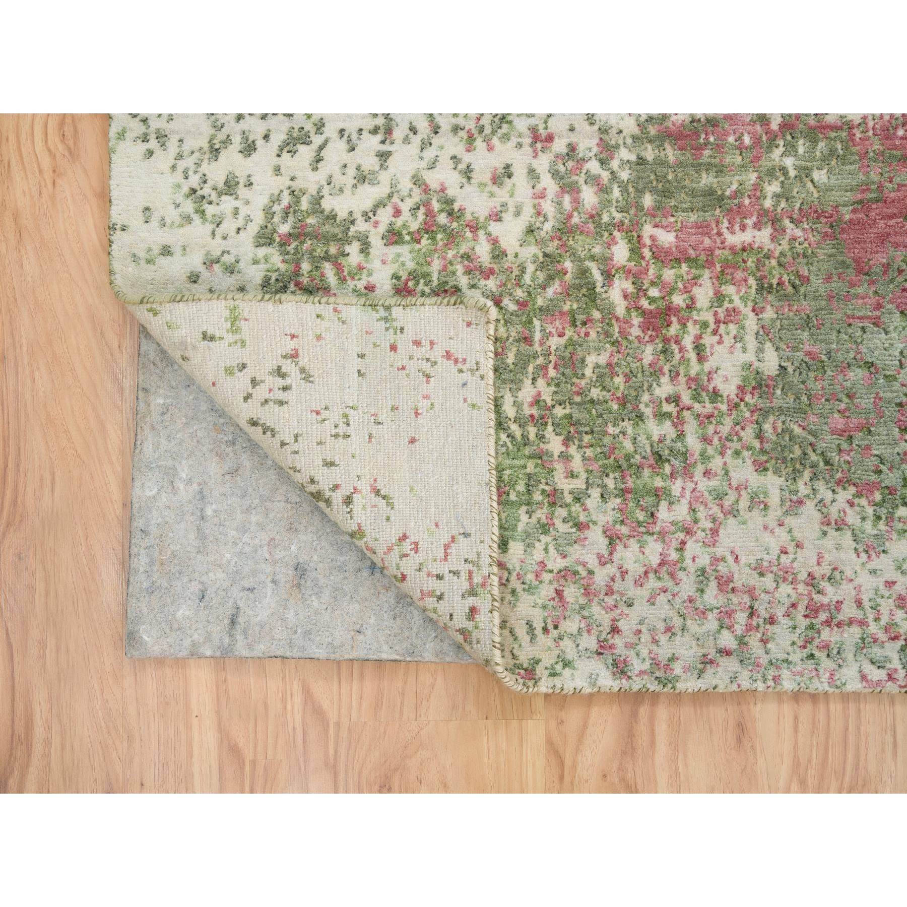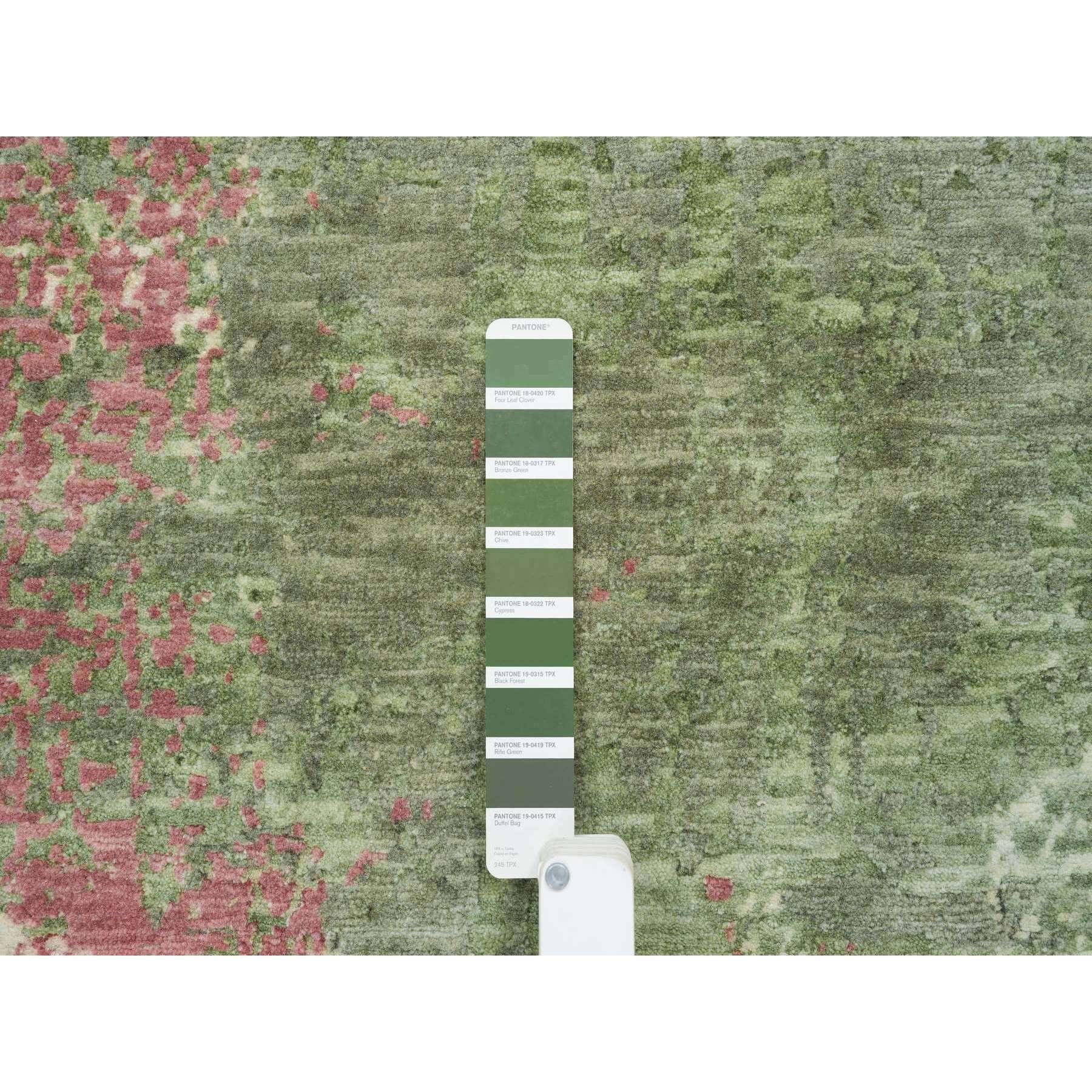 9'x11'10" Spring Green, All Wool, Thick And Plush, Tone On Tone, Hand Knotted, Pastel Colors Dripping Clouds Design, Modern Rug FWR393738