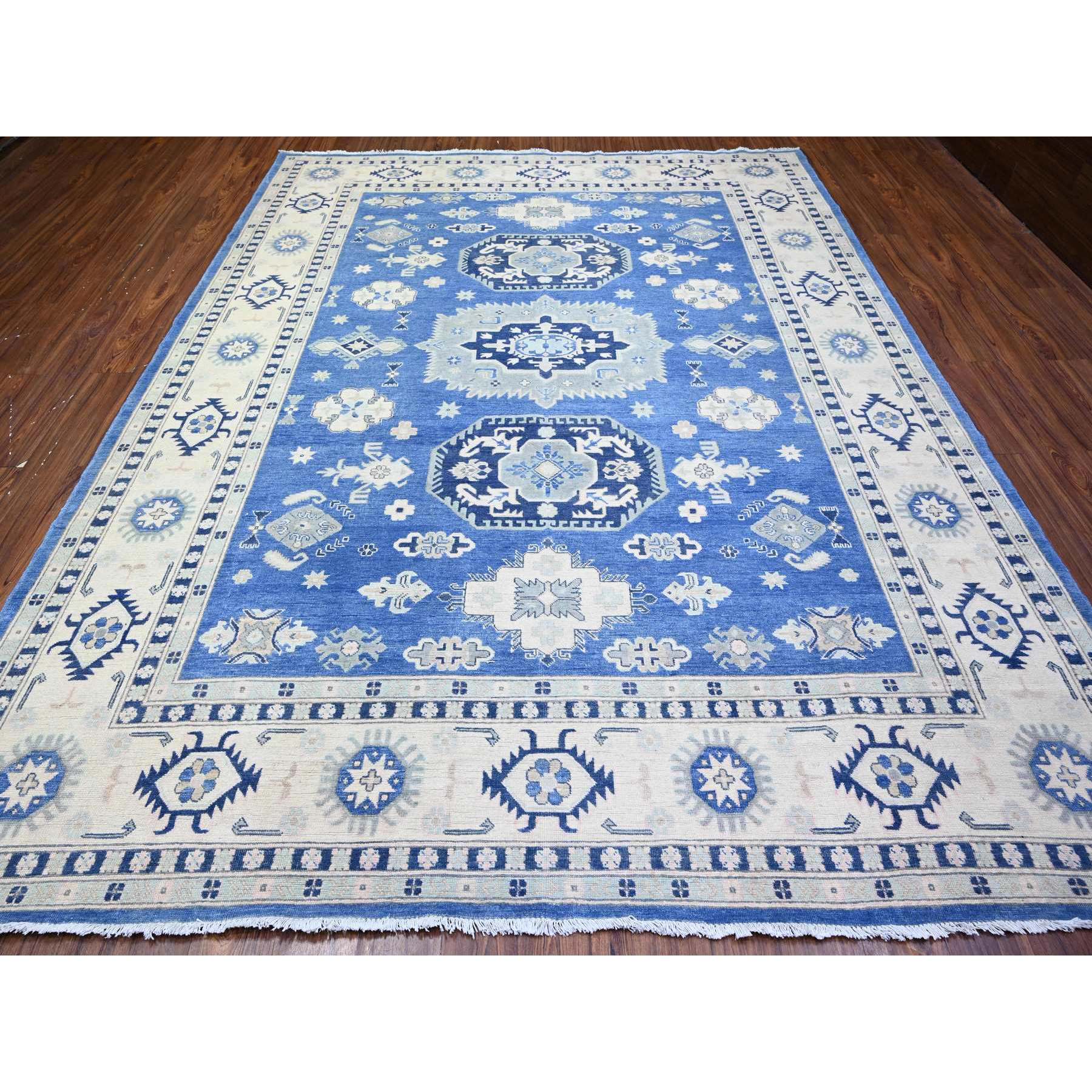 9'x11'5" Berry Blue With Huntington White, Vintage Look Kazak With Large Medallions Design High Grade Wool, Hand Knotted, Natural Dyes, Oriental Rug FWR448356