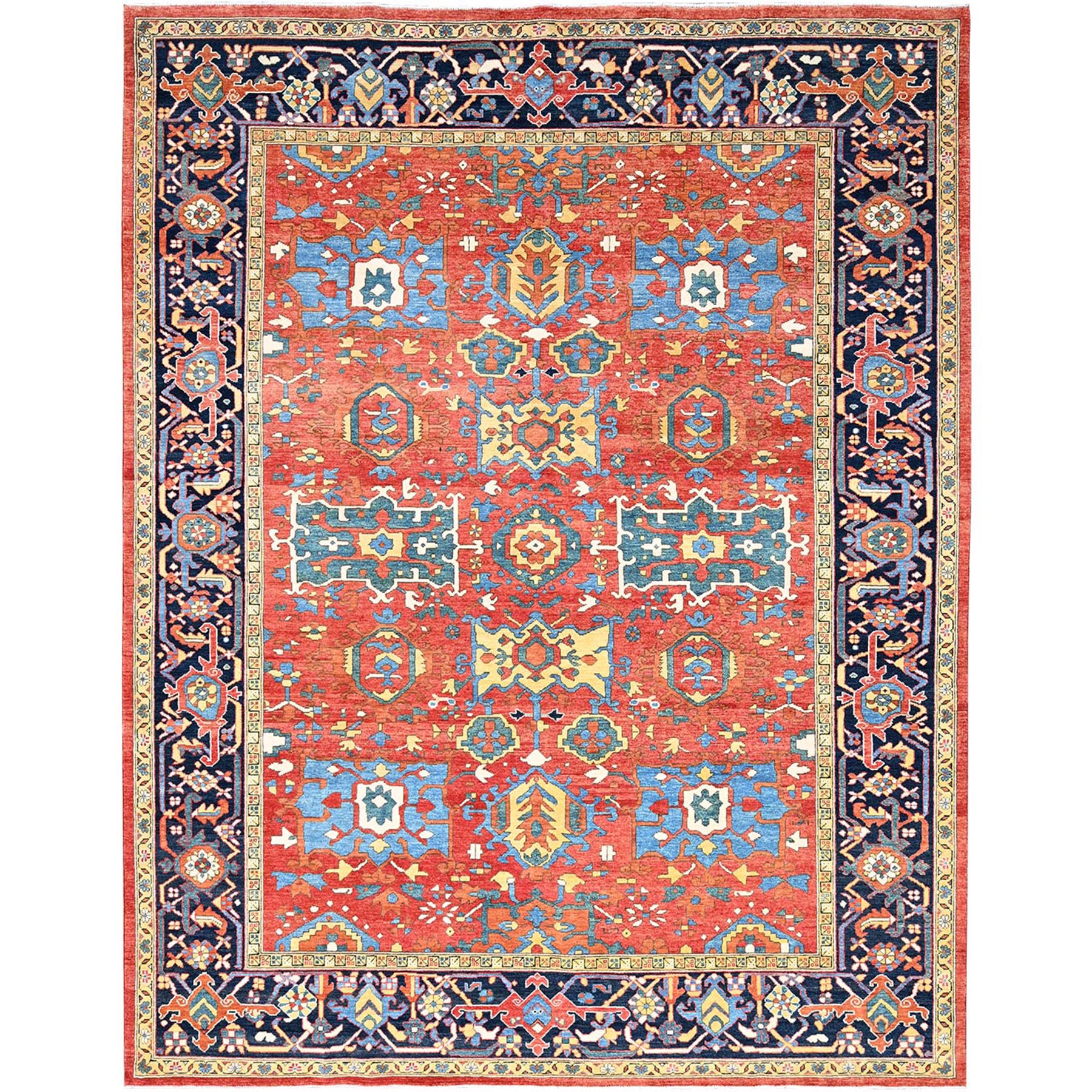 9'x11'6" Candy Red, Soft Wool, Dense Weave, Natural Dyes, Afghan Peshawar With Serapi Heriz Design, Hand Knotted, Oriental Rug FWR512616