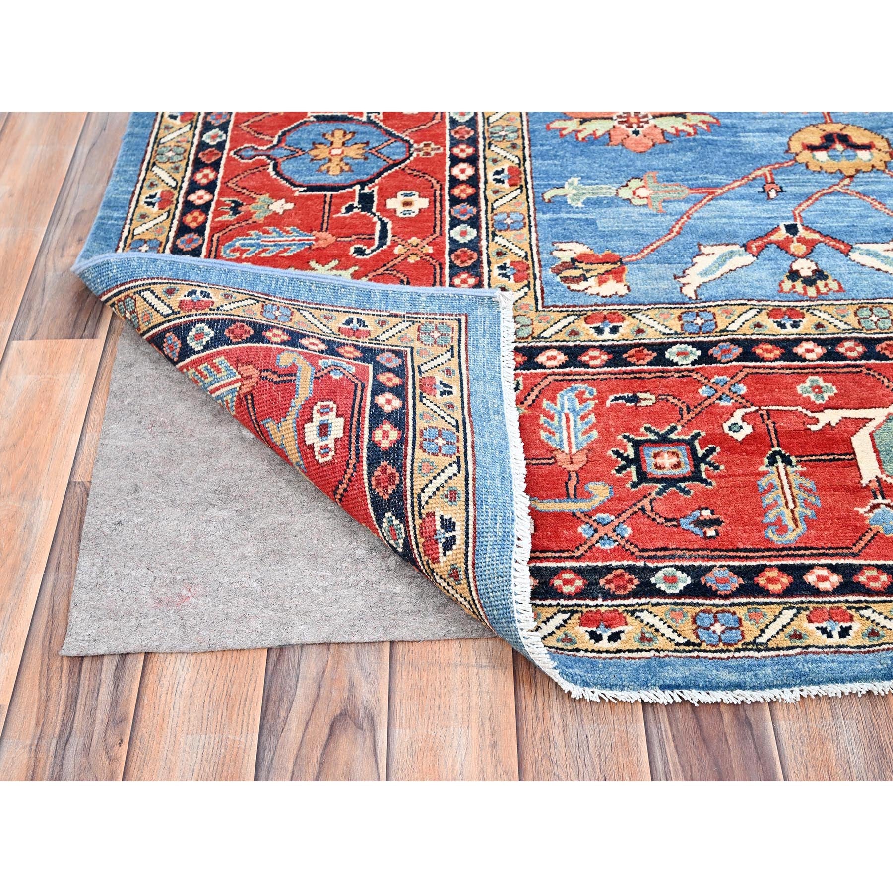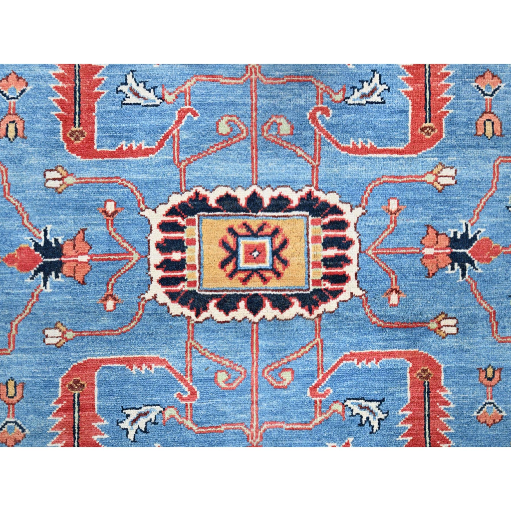 9'x11'6" Sky Blue, Vegetable Dyes, Extra Soft Wool, Afghan Peshawar With Serapi Heriz Design, Dense Weave, Hand Knotted, Oriental Rug FWR512682