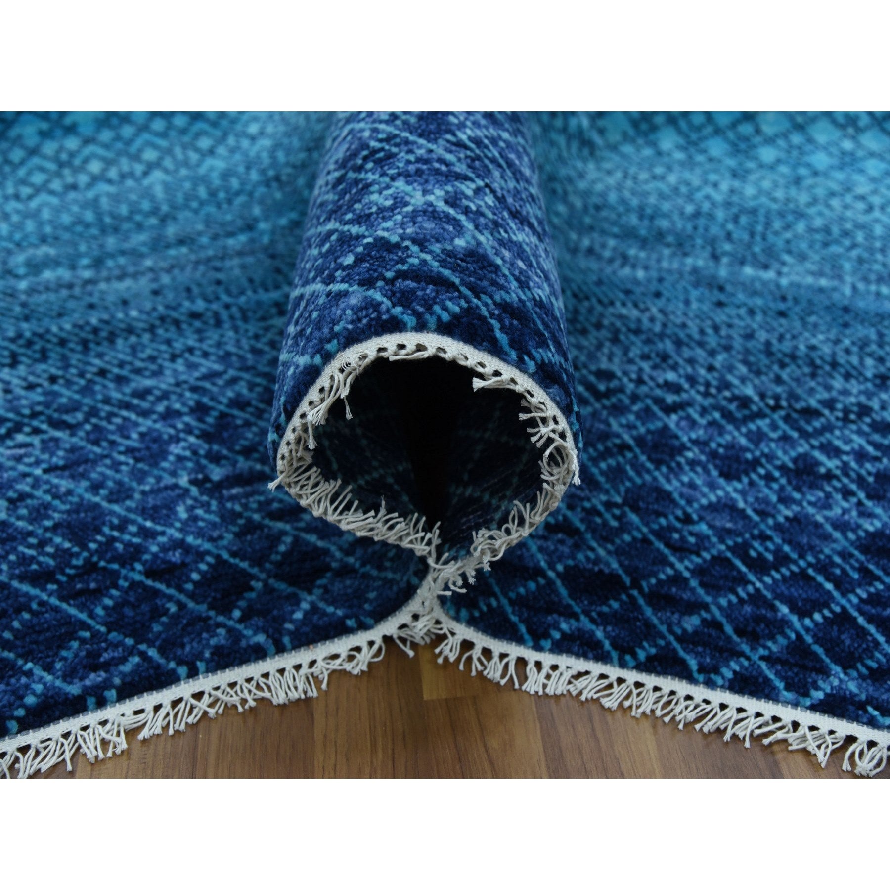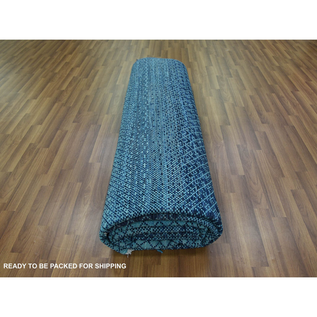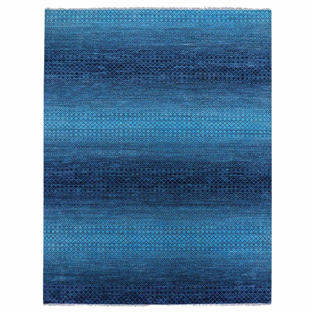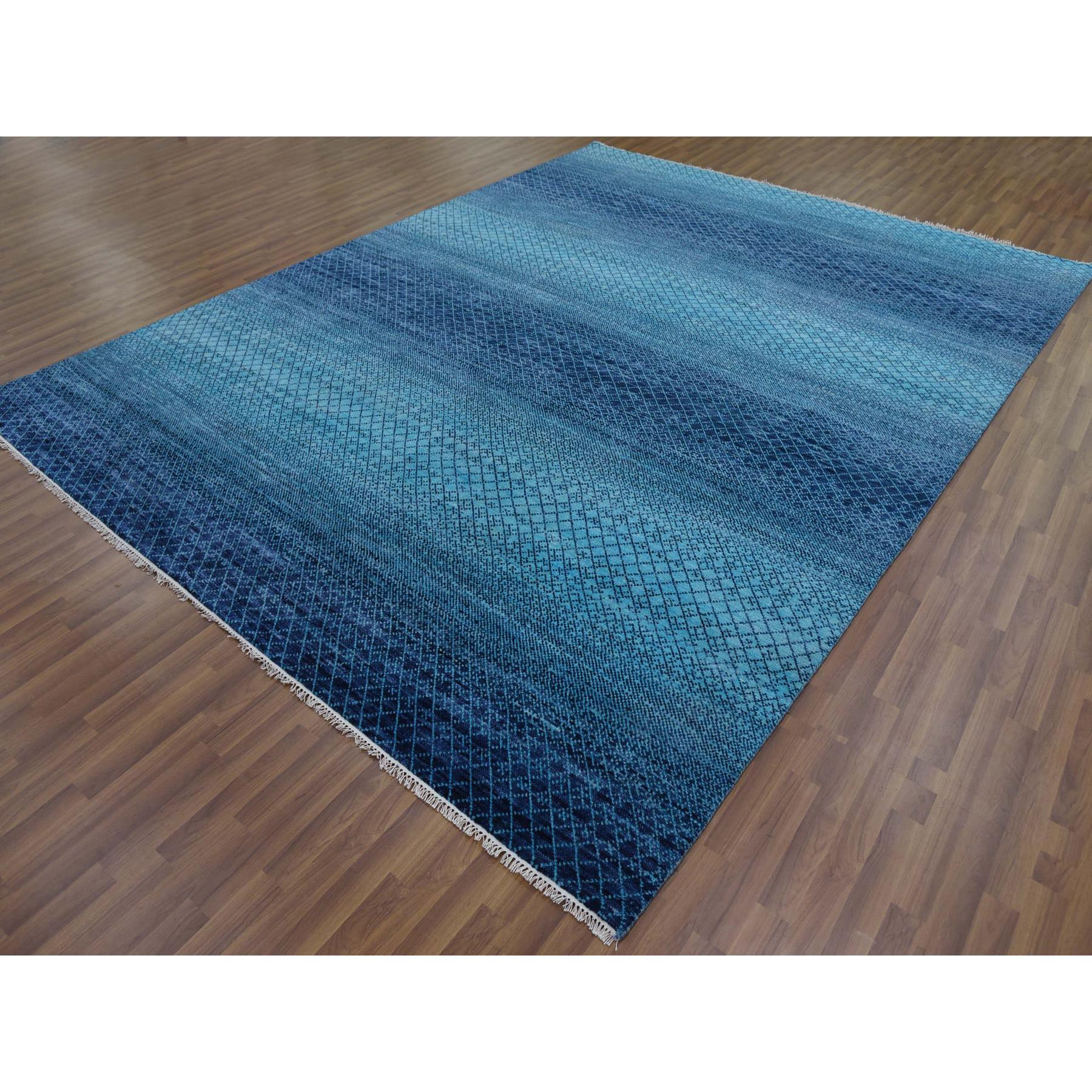 9'x11'7" Blue, Pure Wool Hand Knotted, Modern Chiaroscuro Collection Thick And Plush, Oriental Rug FWR475398