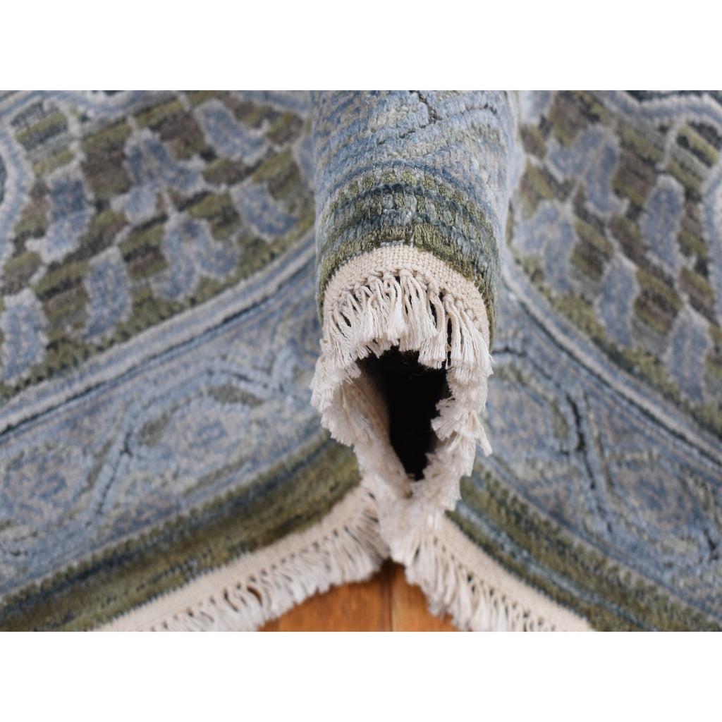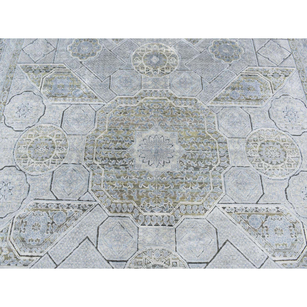 9'x11'7" Cadet Gray, Silk With Textured Wool, Mamluk Design, Hand Knotted, Oriental Rug FWR522450