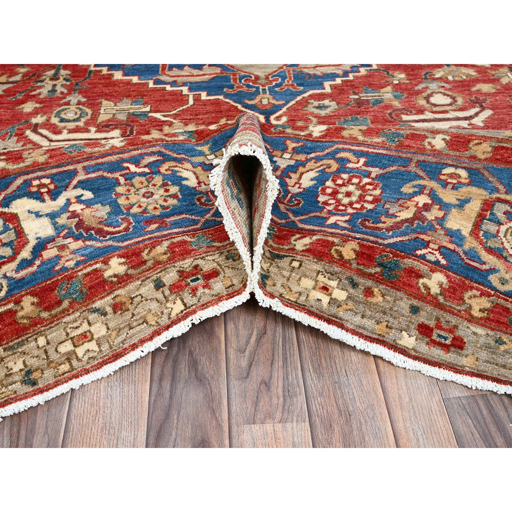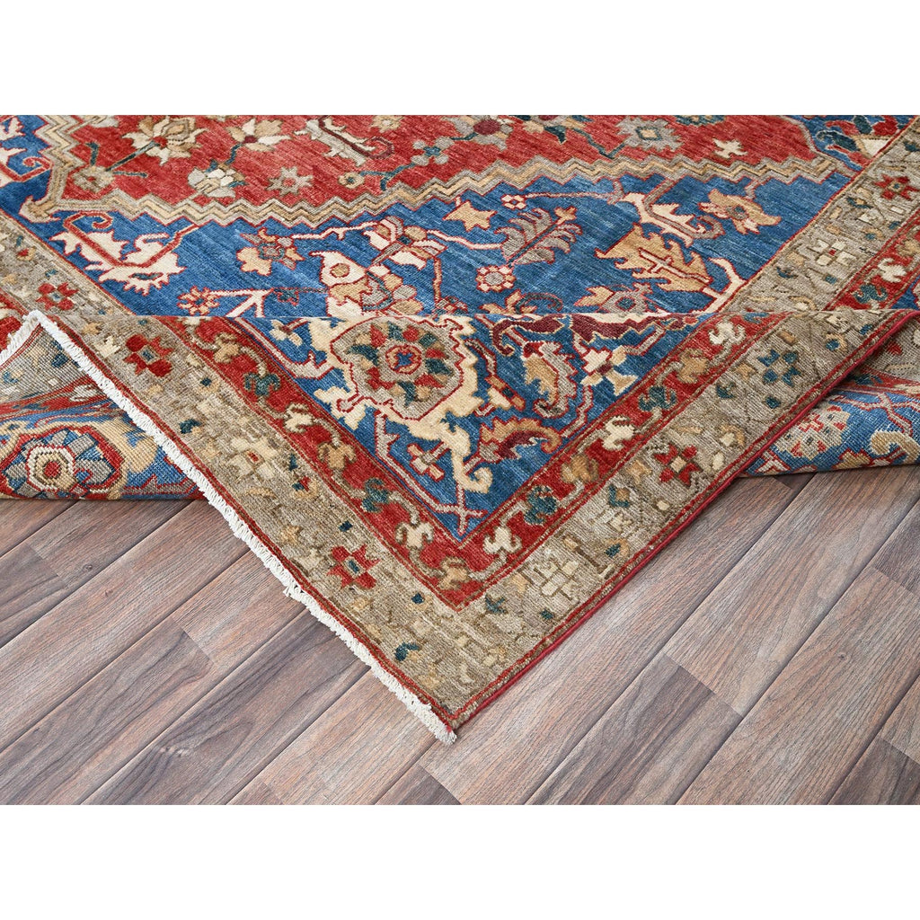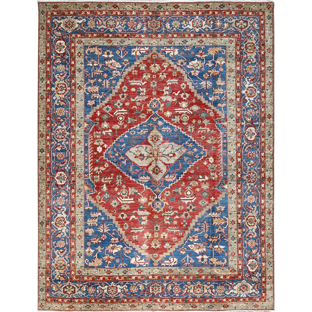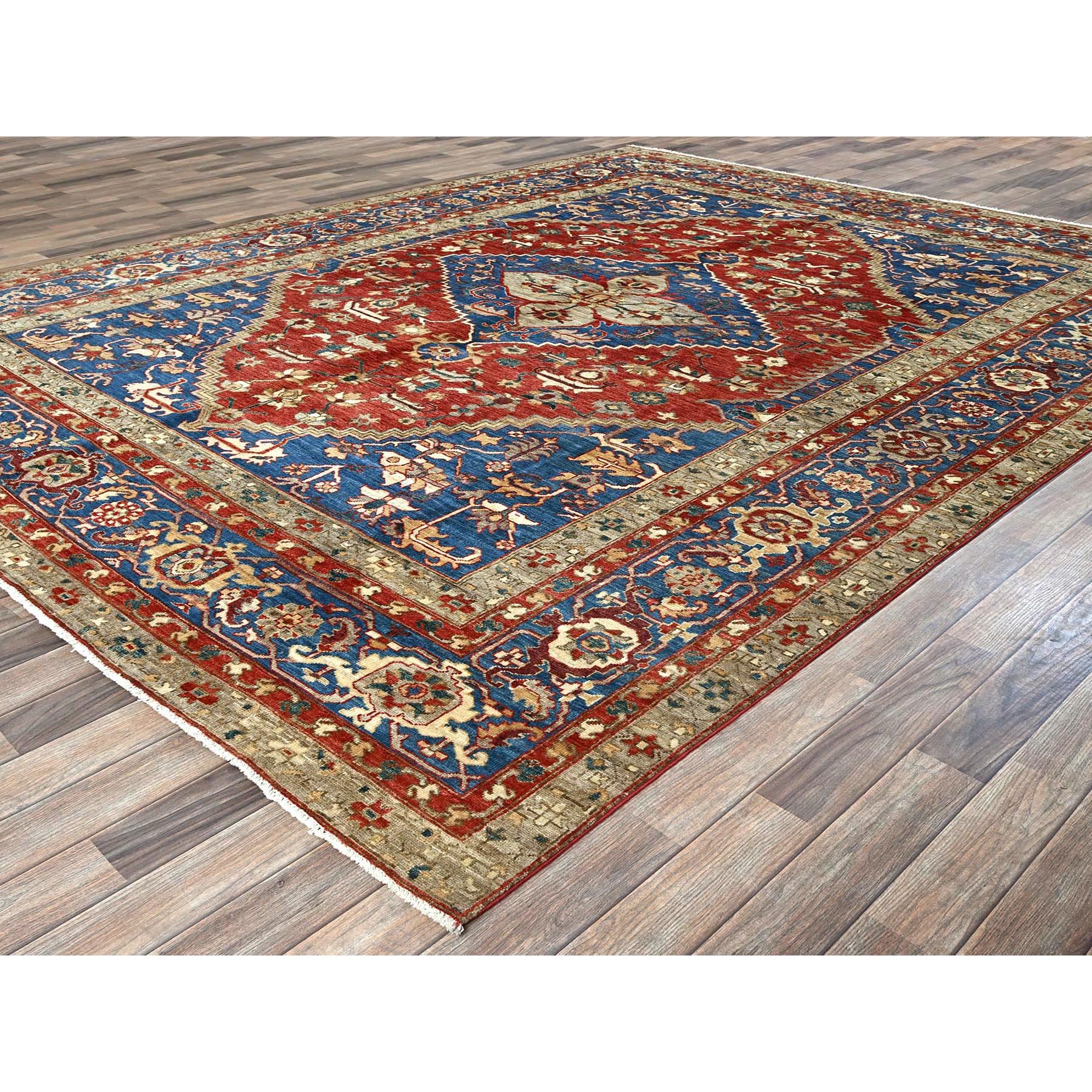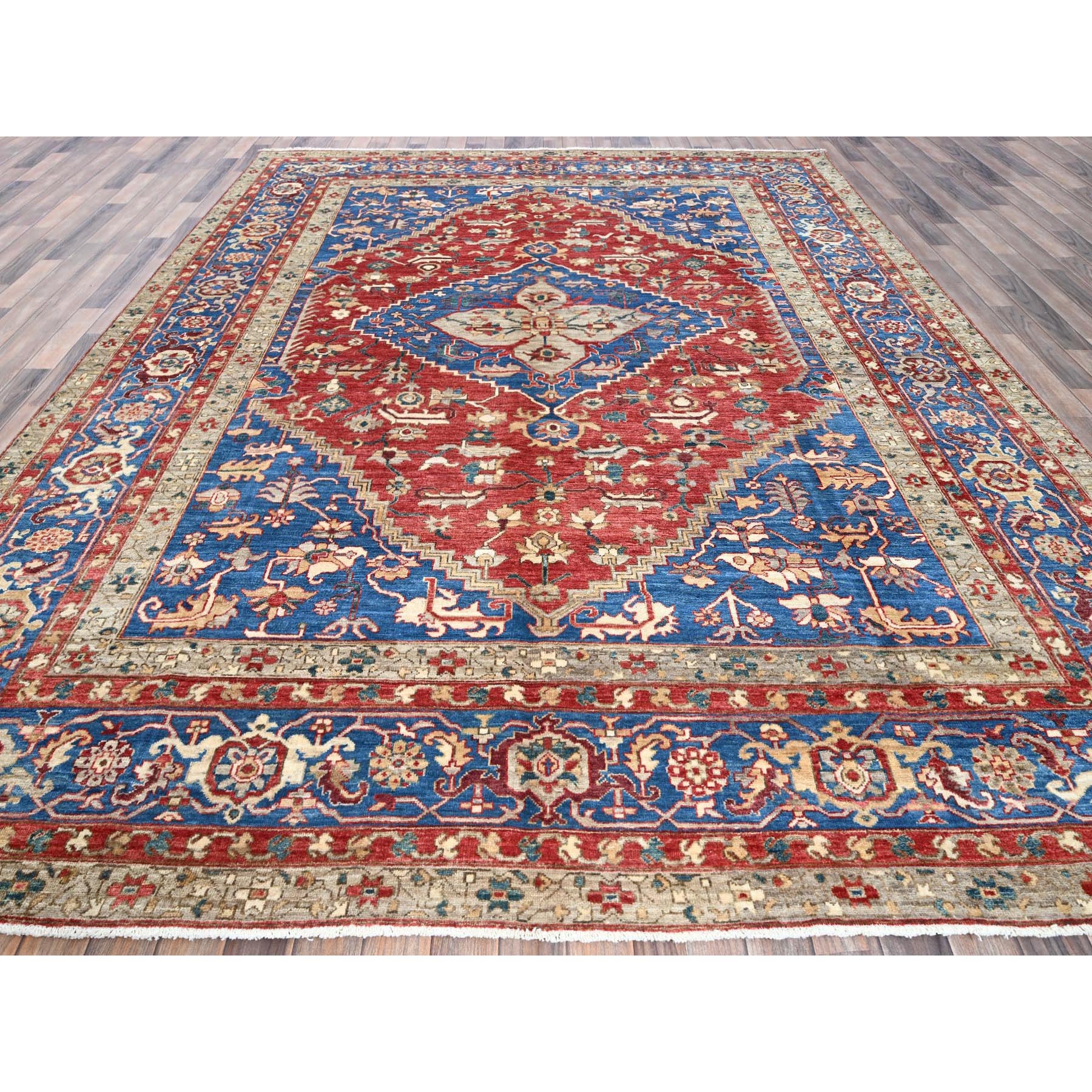 9'x11'8" Ajax Red, Peshawar Heriz With Antique Serapi Design, Shiny High Mountain Wool, Hand Knotted, Vegetable Dyes, Densely Woven, Soft Pile, Oriental Rug FWR5430