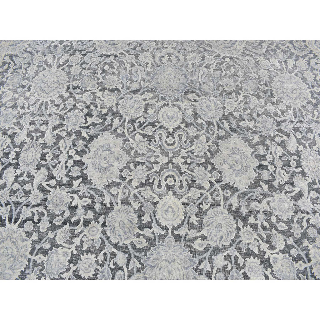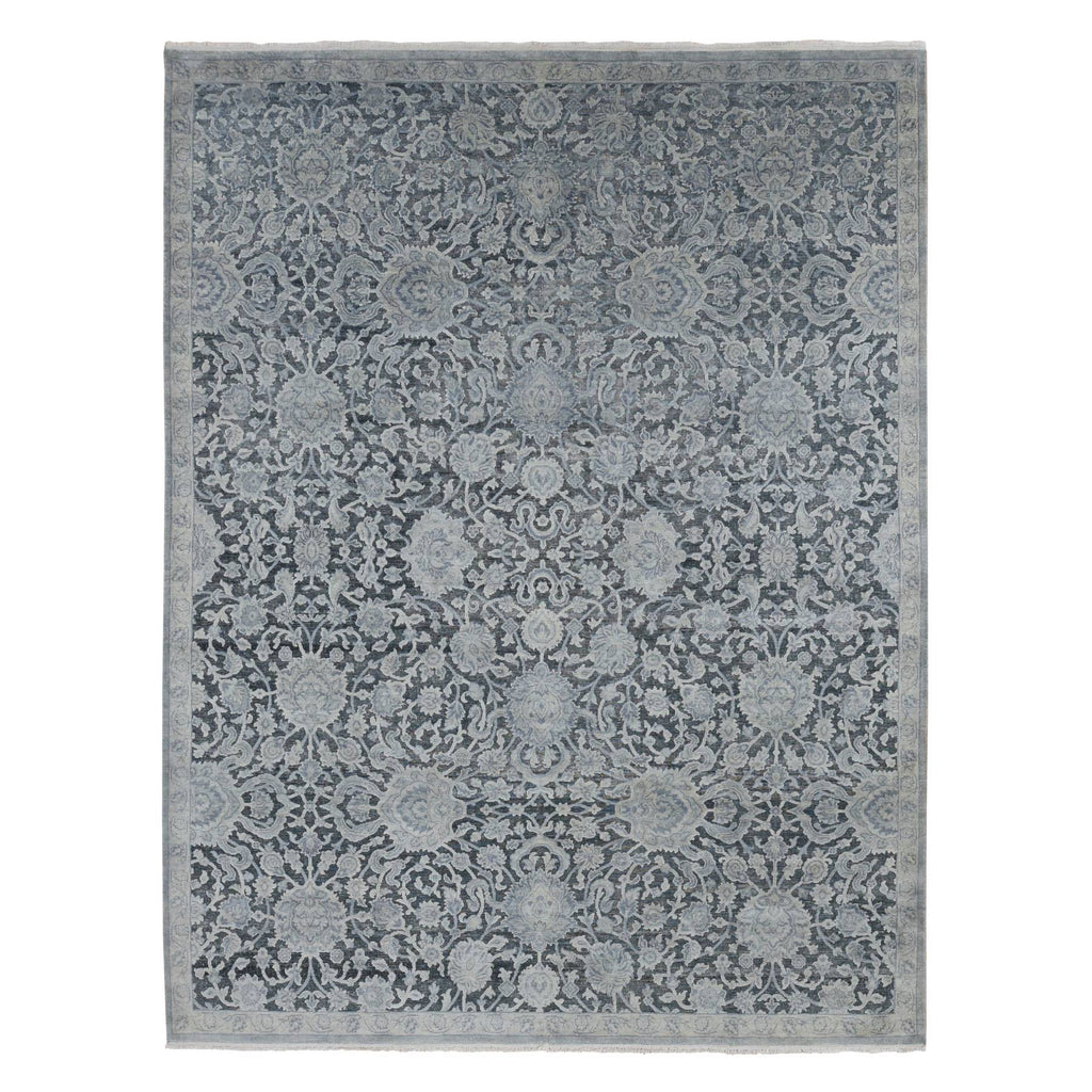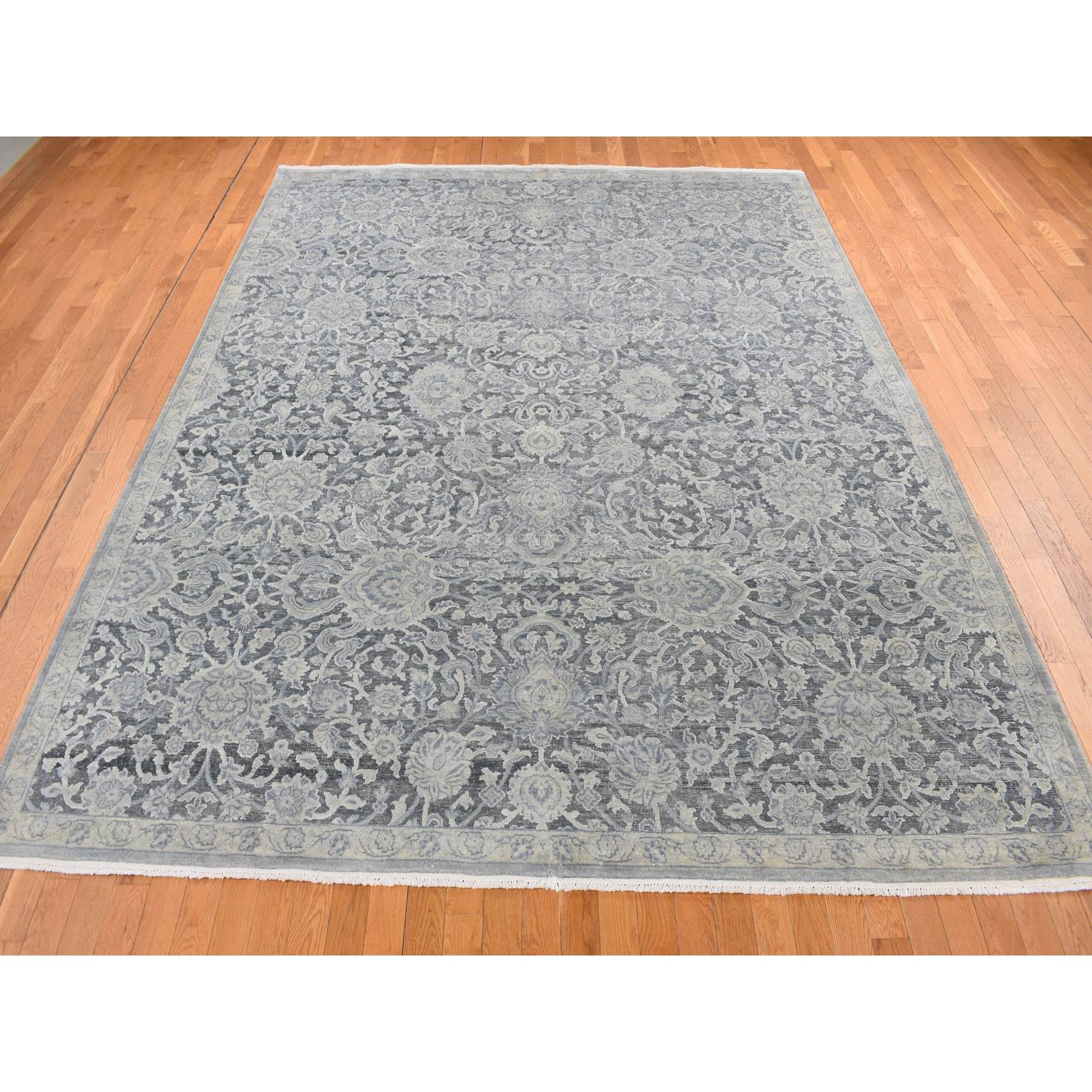 9'x11'8" Ash Gray, Oushak Influence, All Over Design, Pure Silk With Textured Wool, Hand Knotted, Oriental Rug FWR522456