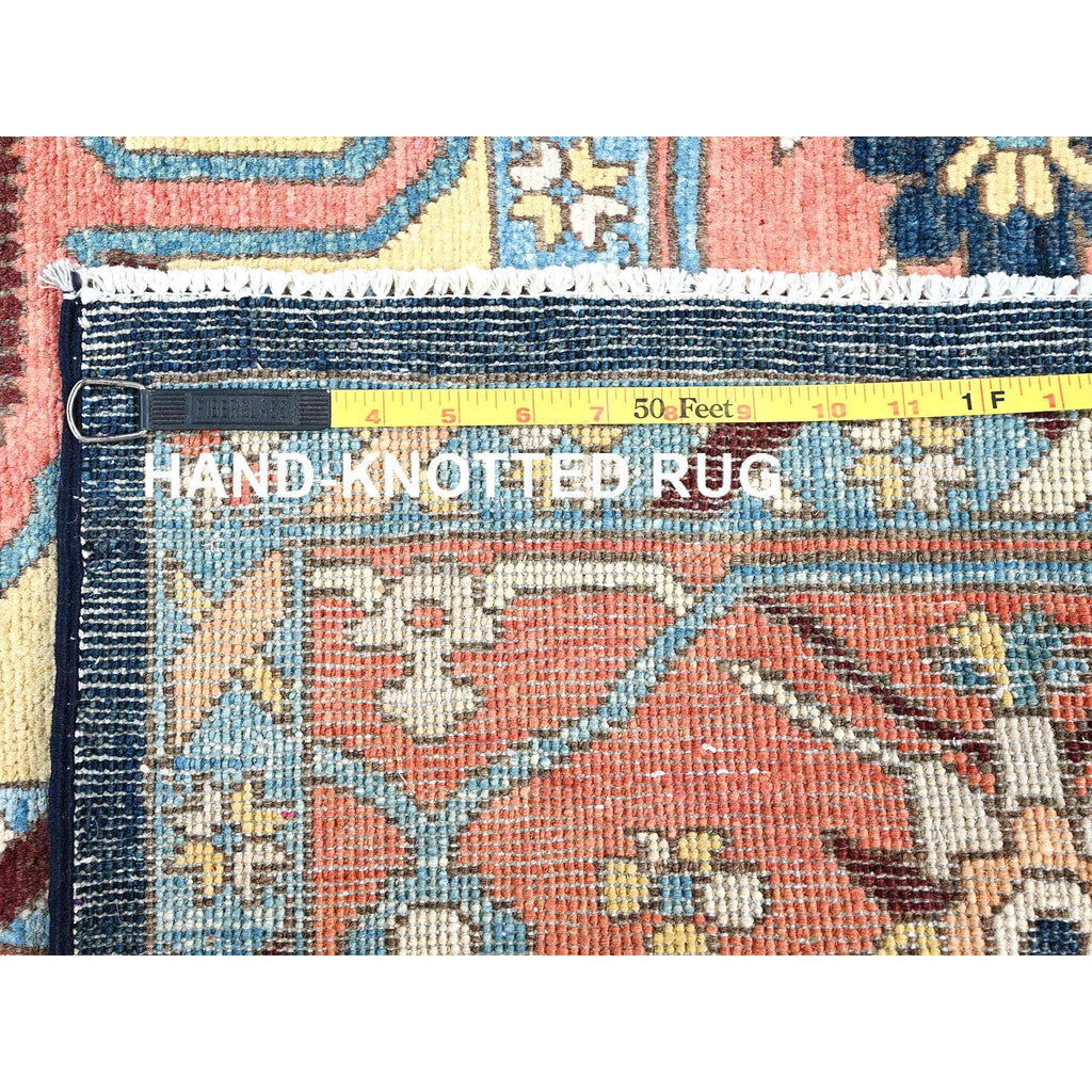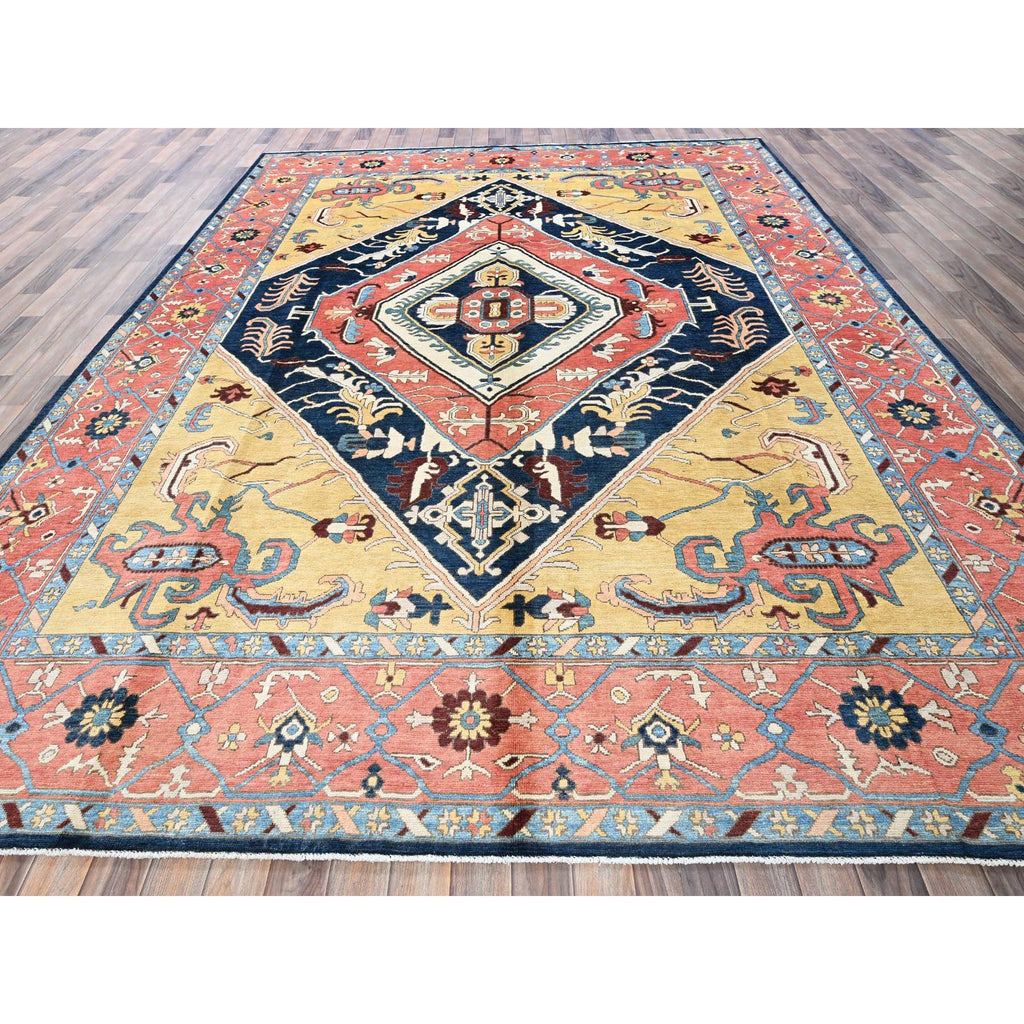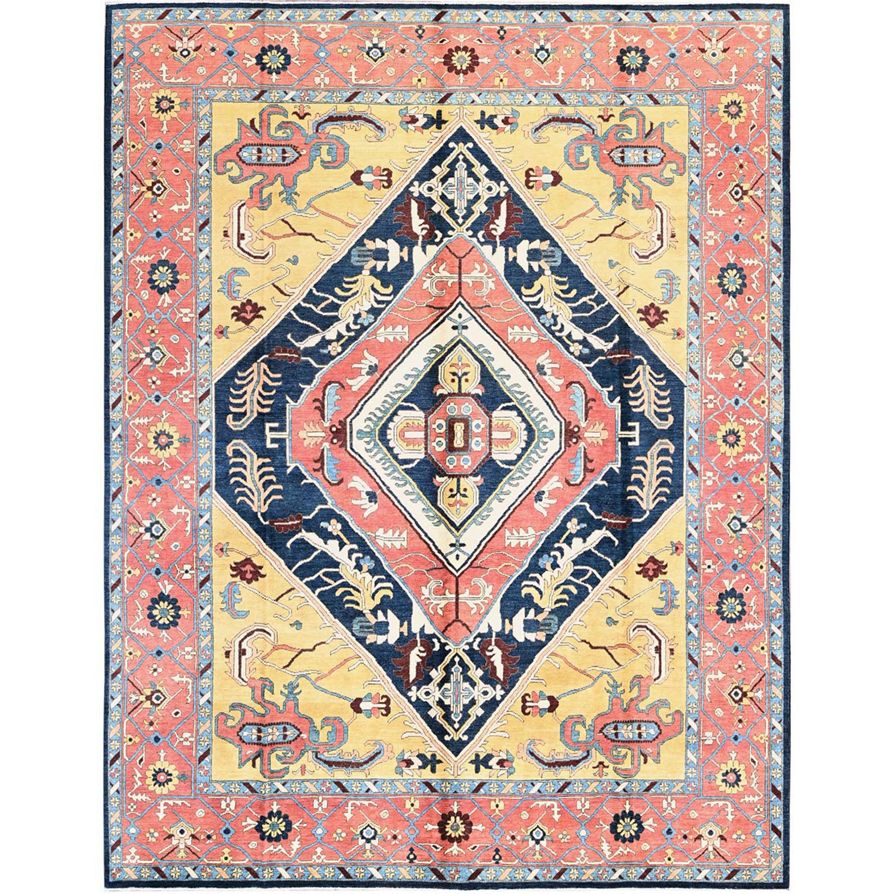 9'x11'8" Midnight Blue With Yellow, Afghan Peshawar With Serapi Heriz Design, Dense Weave, Vegetable Dyes, Pure Wool, Hand Knotted, Oriental Rug FWR1932