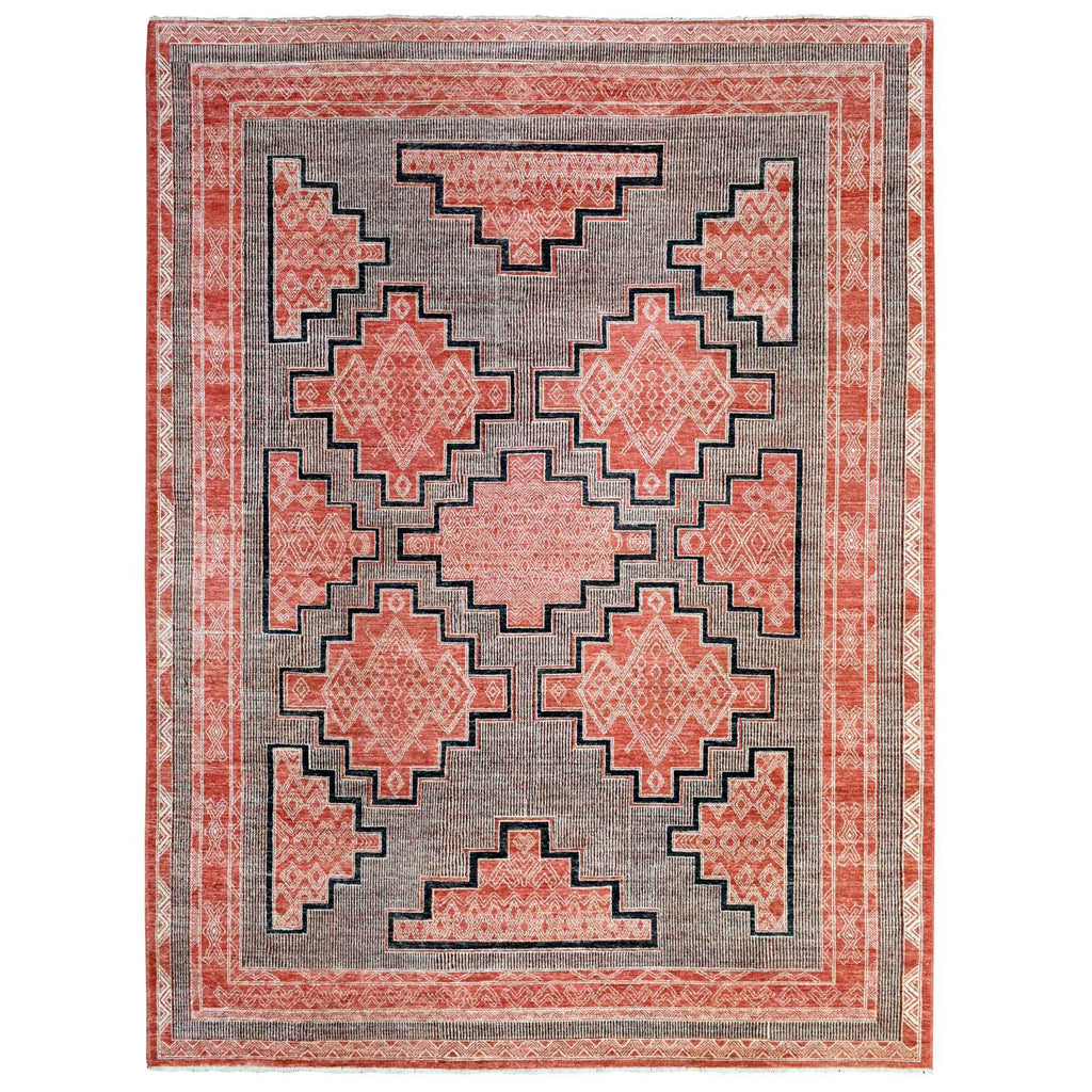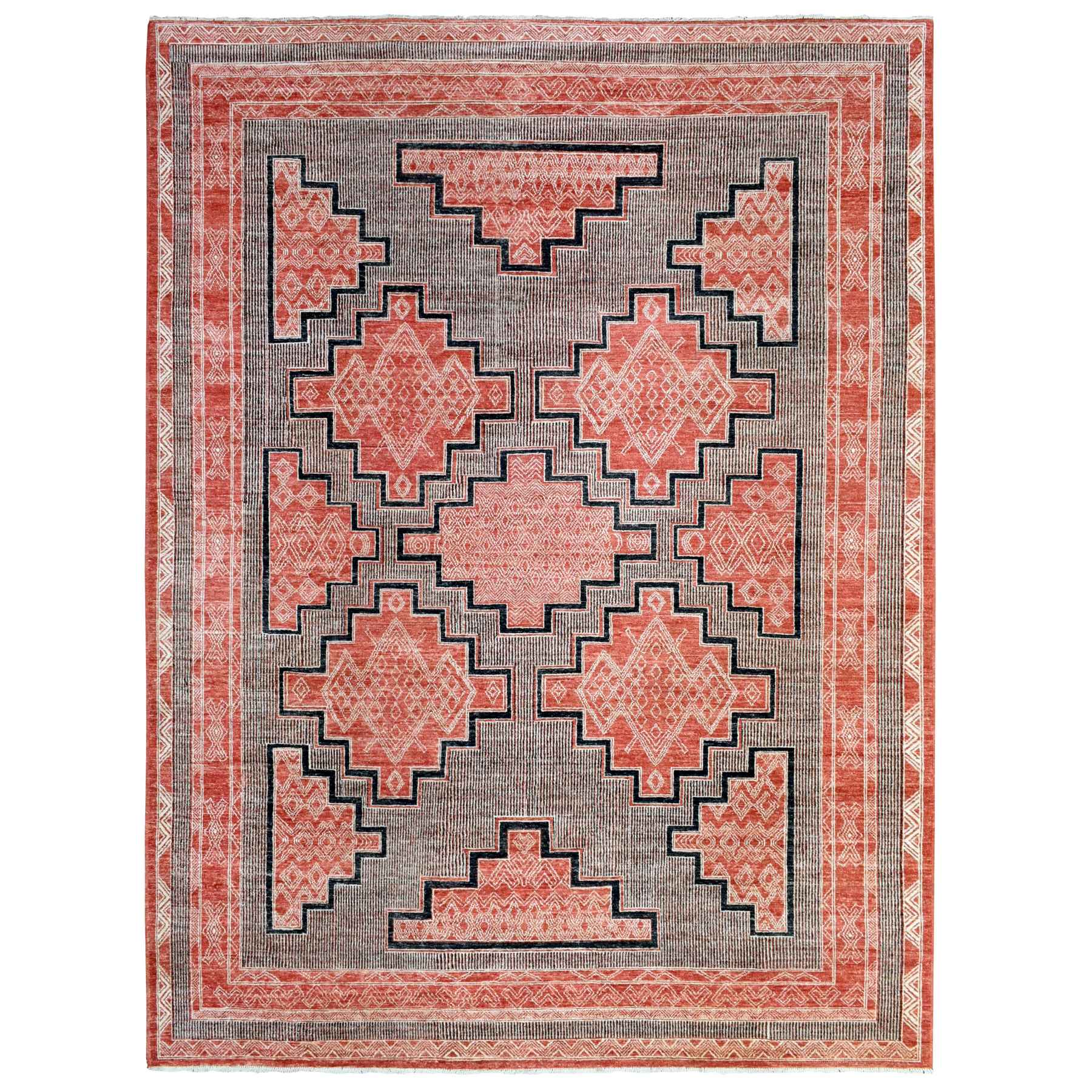 9'x11'9" Brick Red, Extra Soft Wool Hand Knotted, Fine Peshawar With Intricate Geometric Motifs Dense Weave, Oriental Rug FWR435450