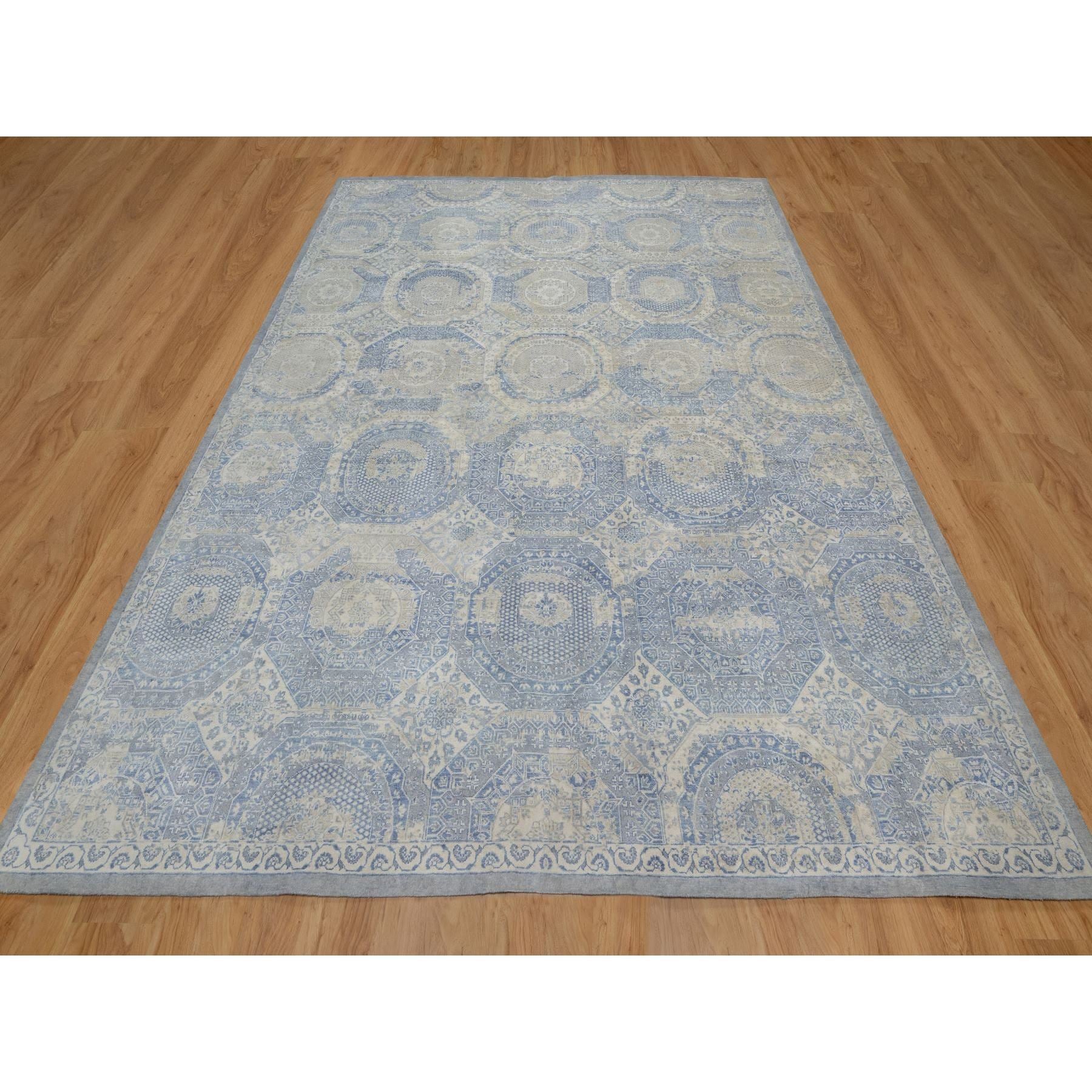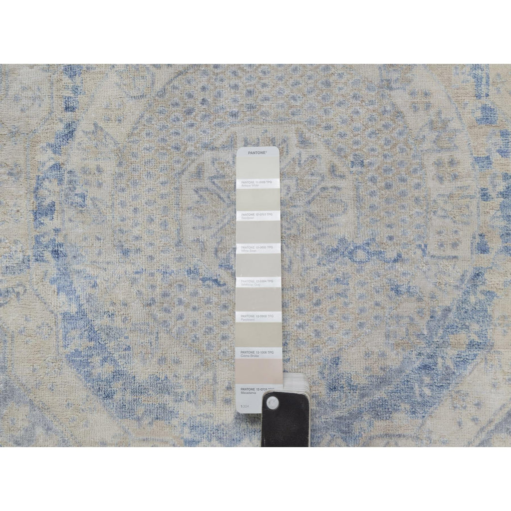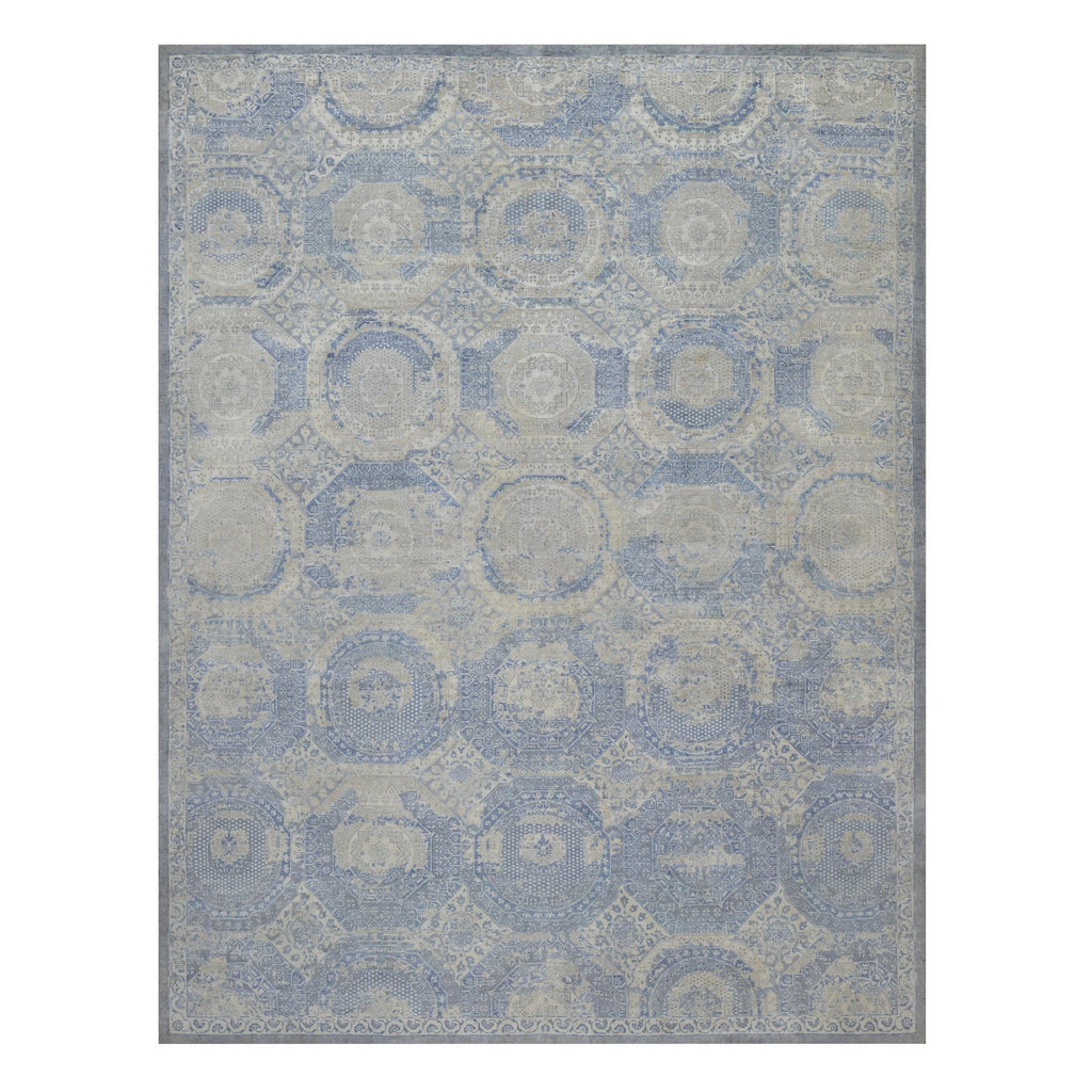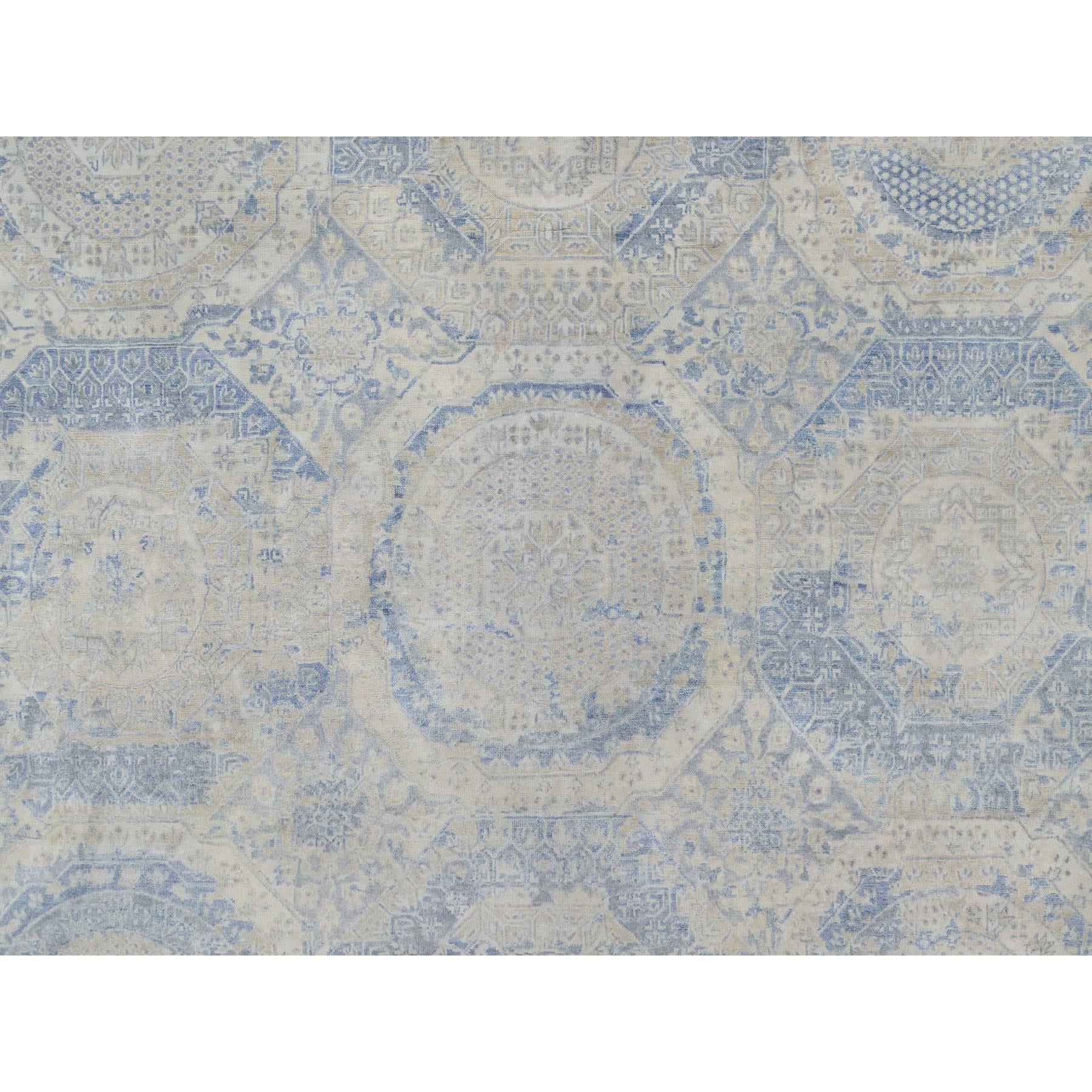 9'x11'9" Parchment White With Blue, Pure Natural Linen, Mamluk Design, Soft And Silky Feel, Broken And Erased All Over Medallions Pattern, Hand Knotted, Oriental Rug FWR548640