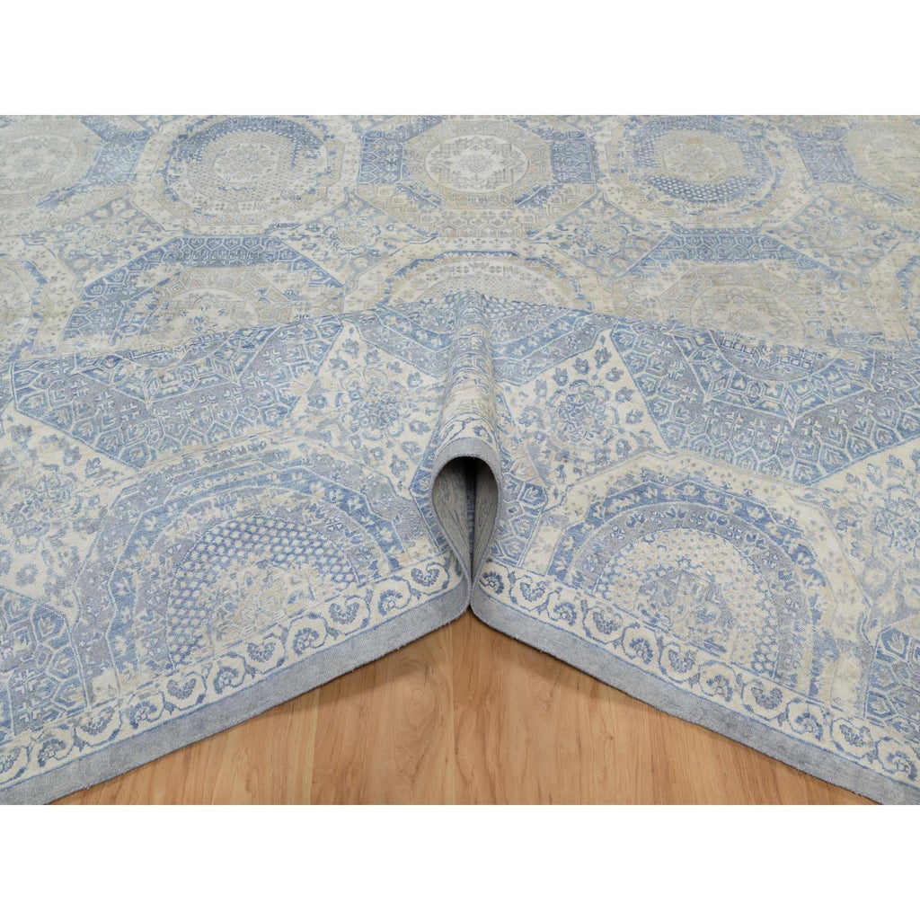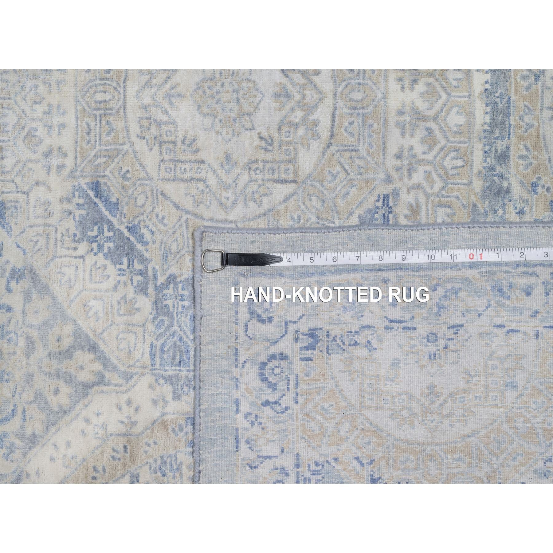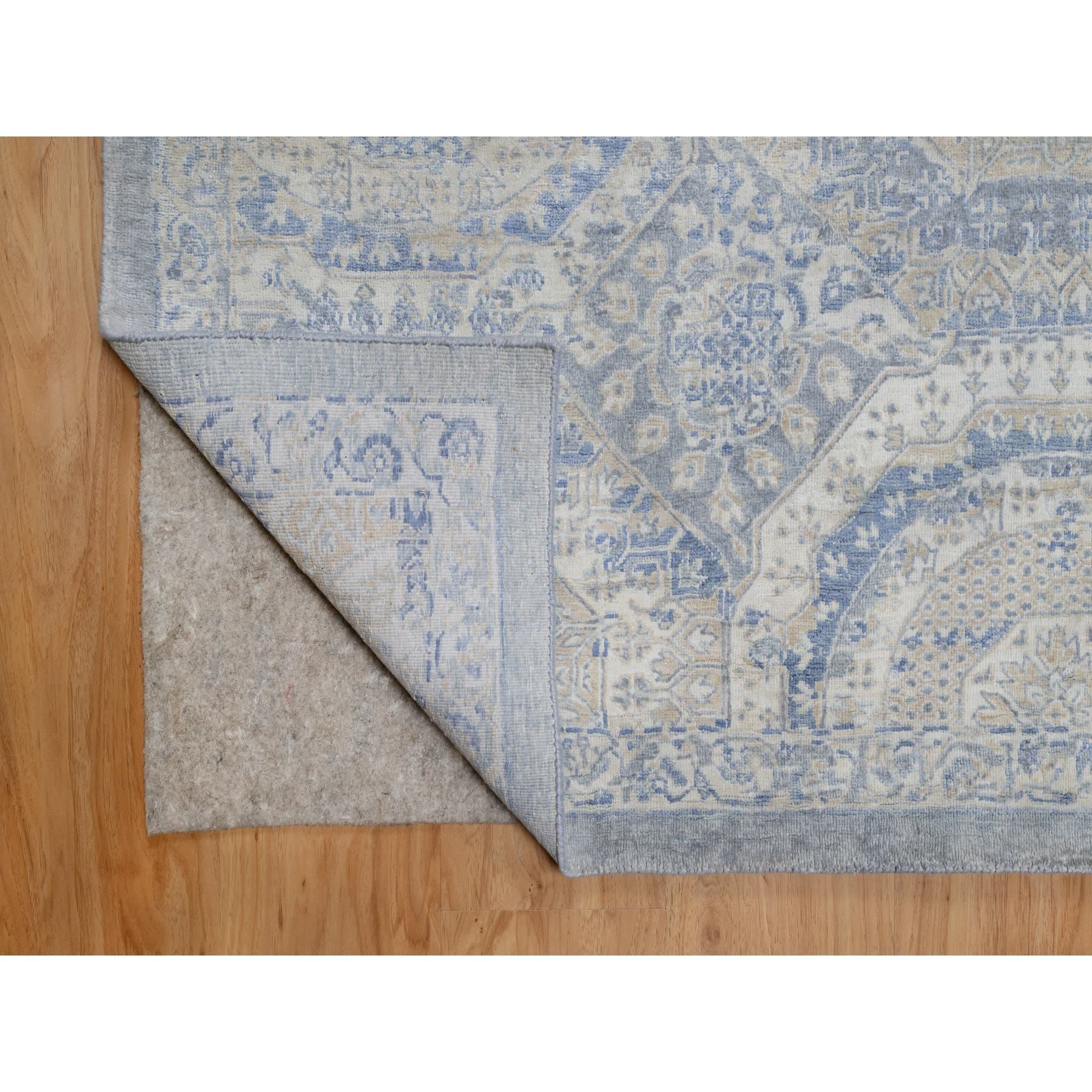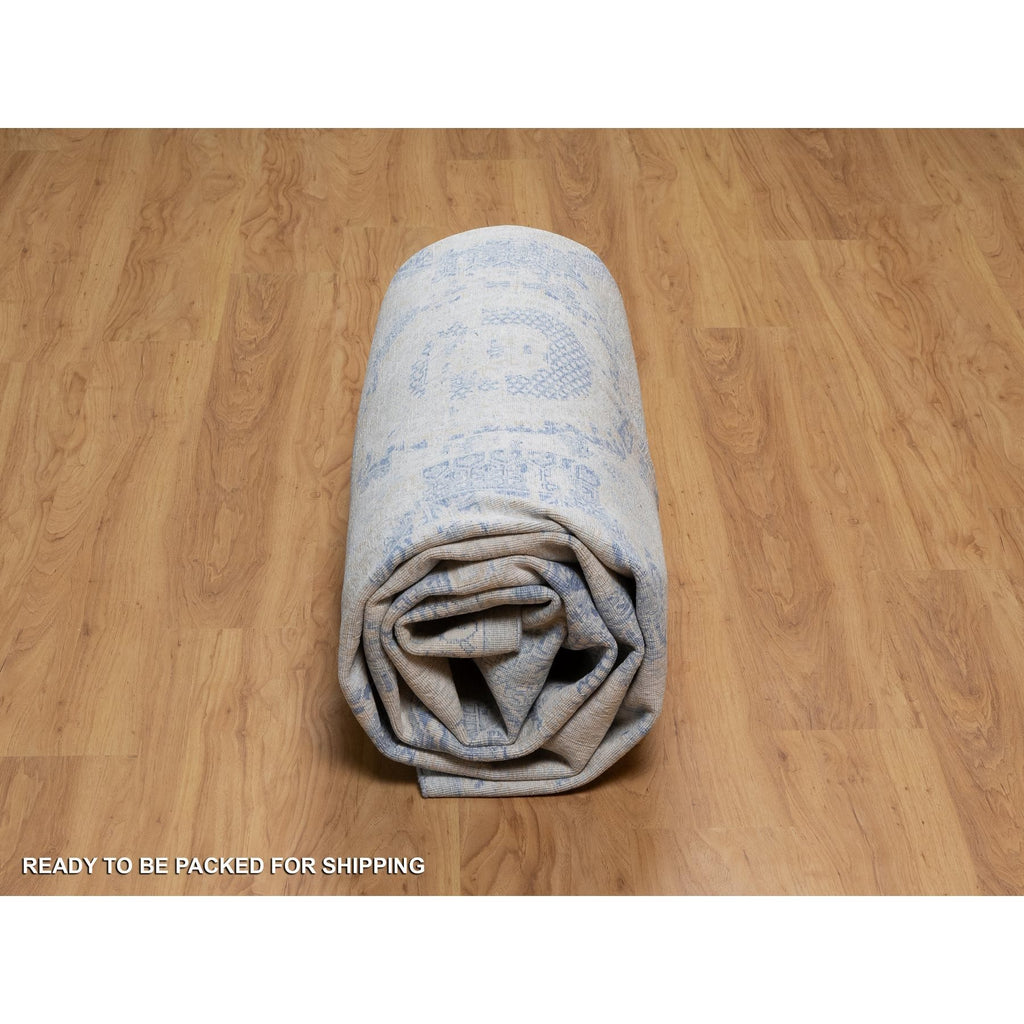 9'x11'9" Parchment White With Blue, Pure Natural Linen, Mamluk Design, Soft And Silky Feel, Broken And Erased All Over Medallions Pattern, Hand Knotted, Oriental Rug FWR548640