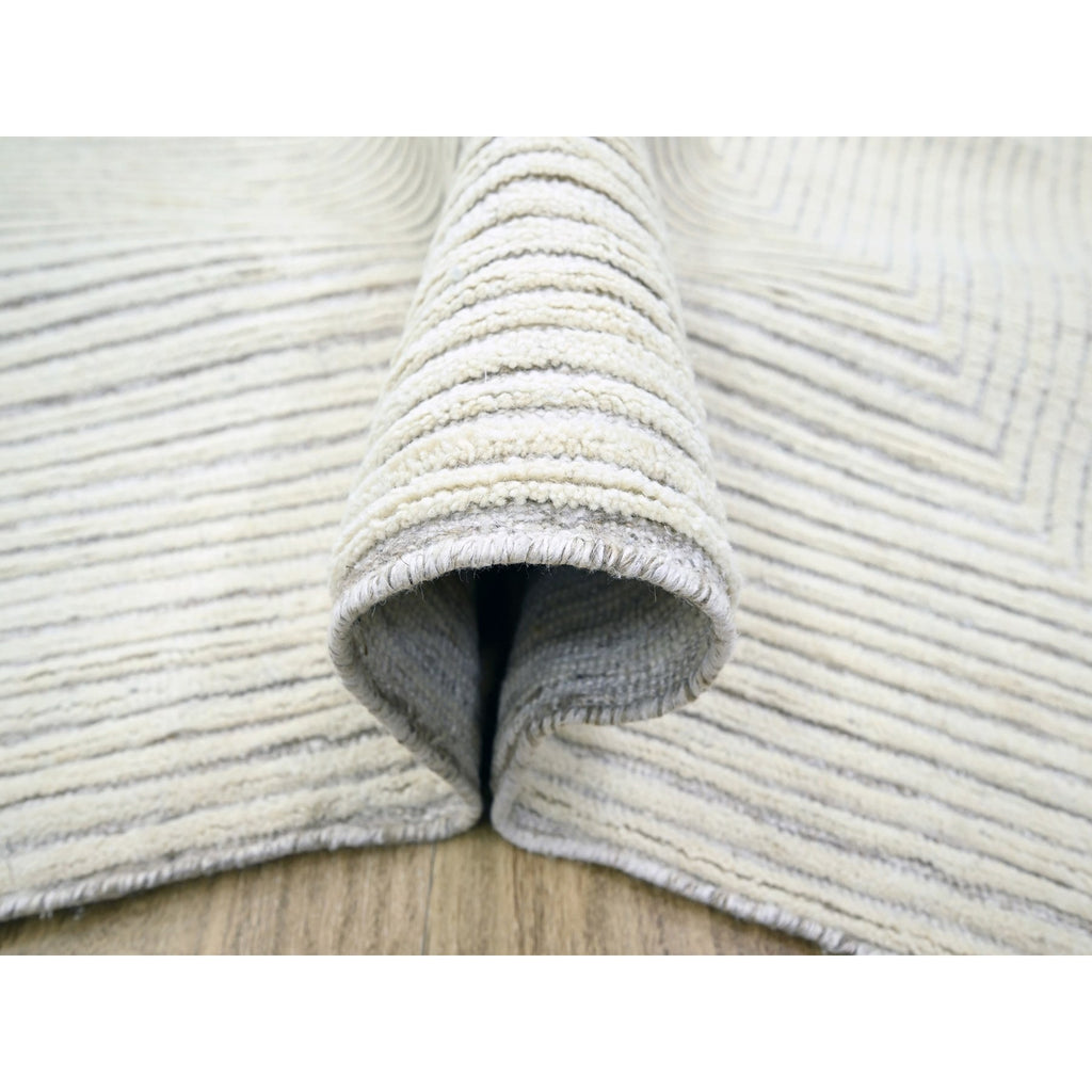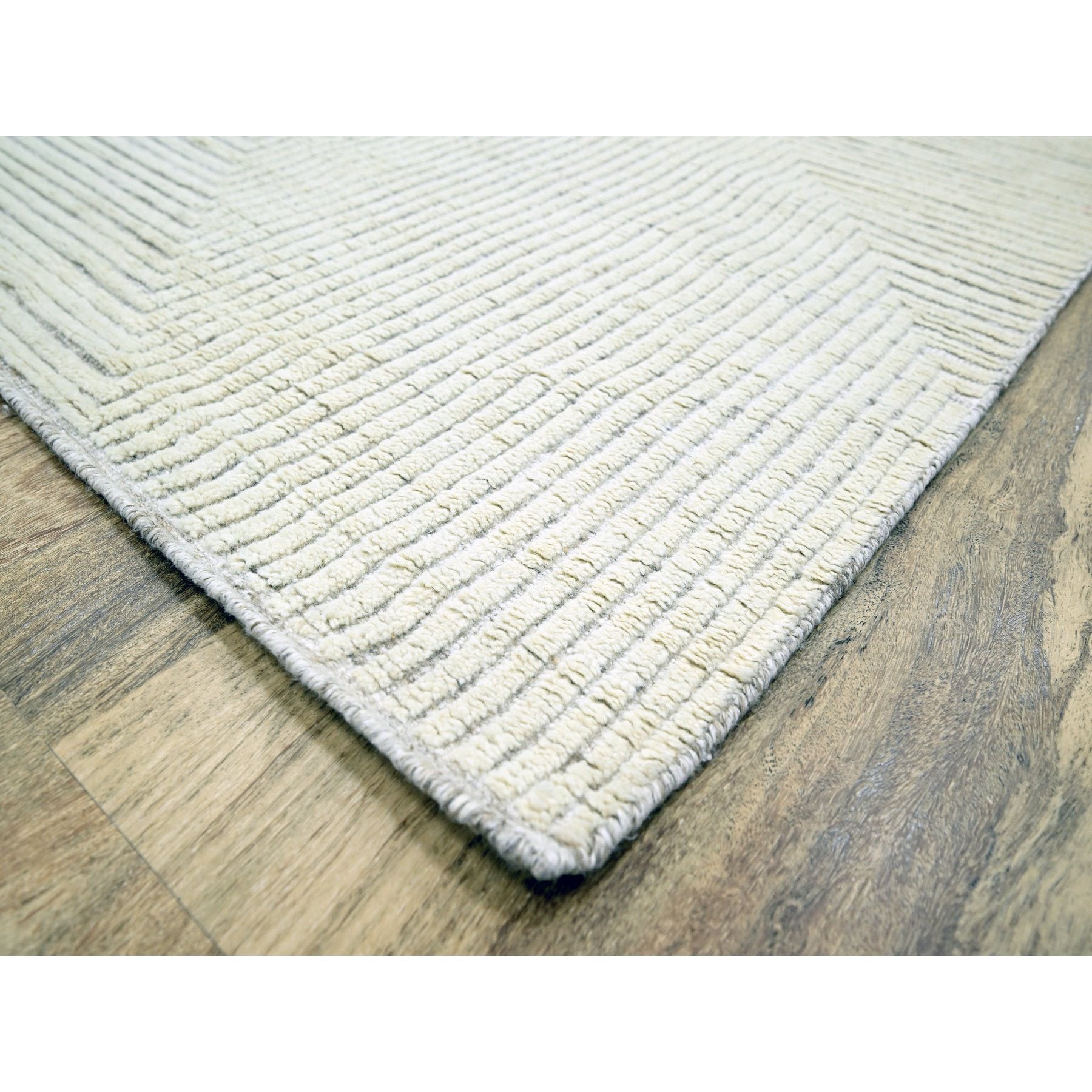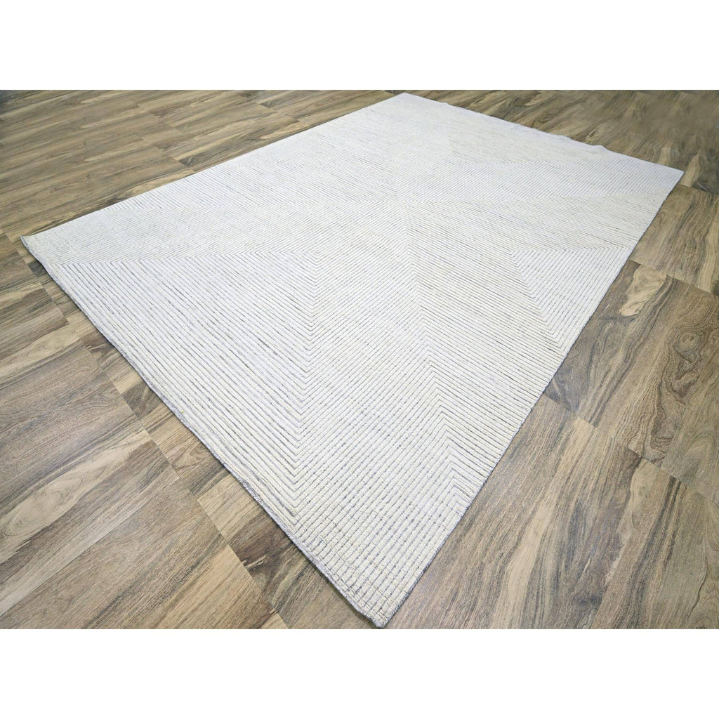 9'x12'1" Alabaster White, Geometric Variegated Line Design, 100% Wool, Hand Knotted, Oriental Rug FWR457278