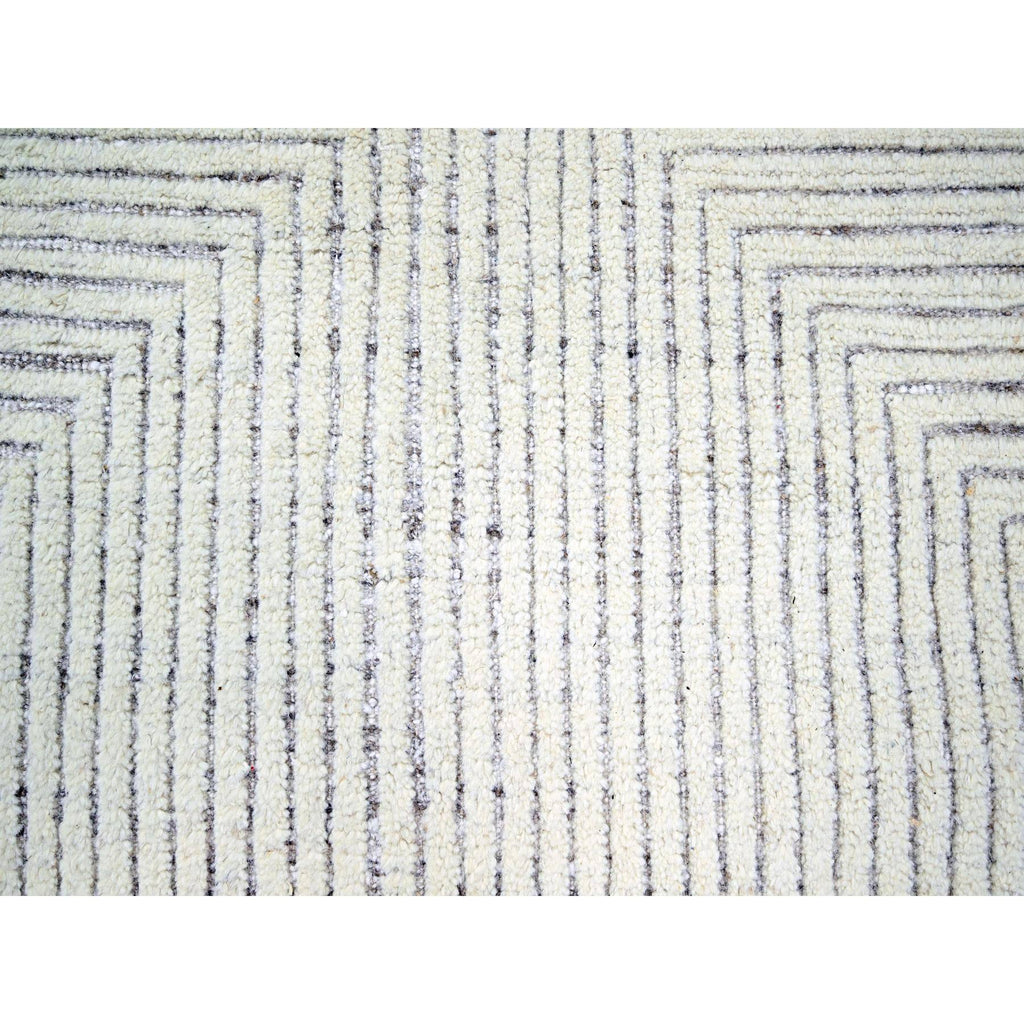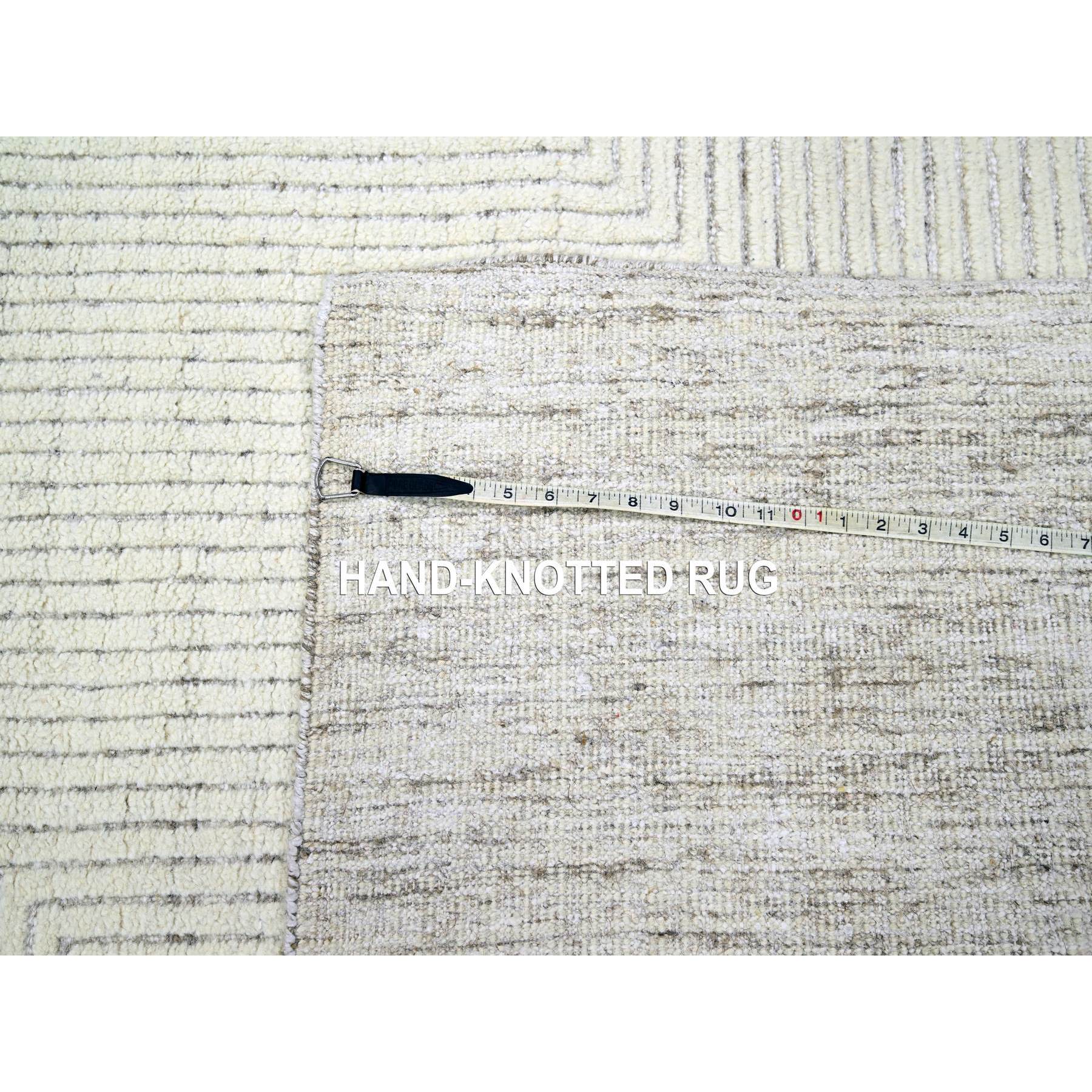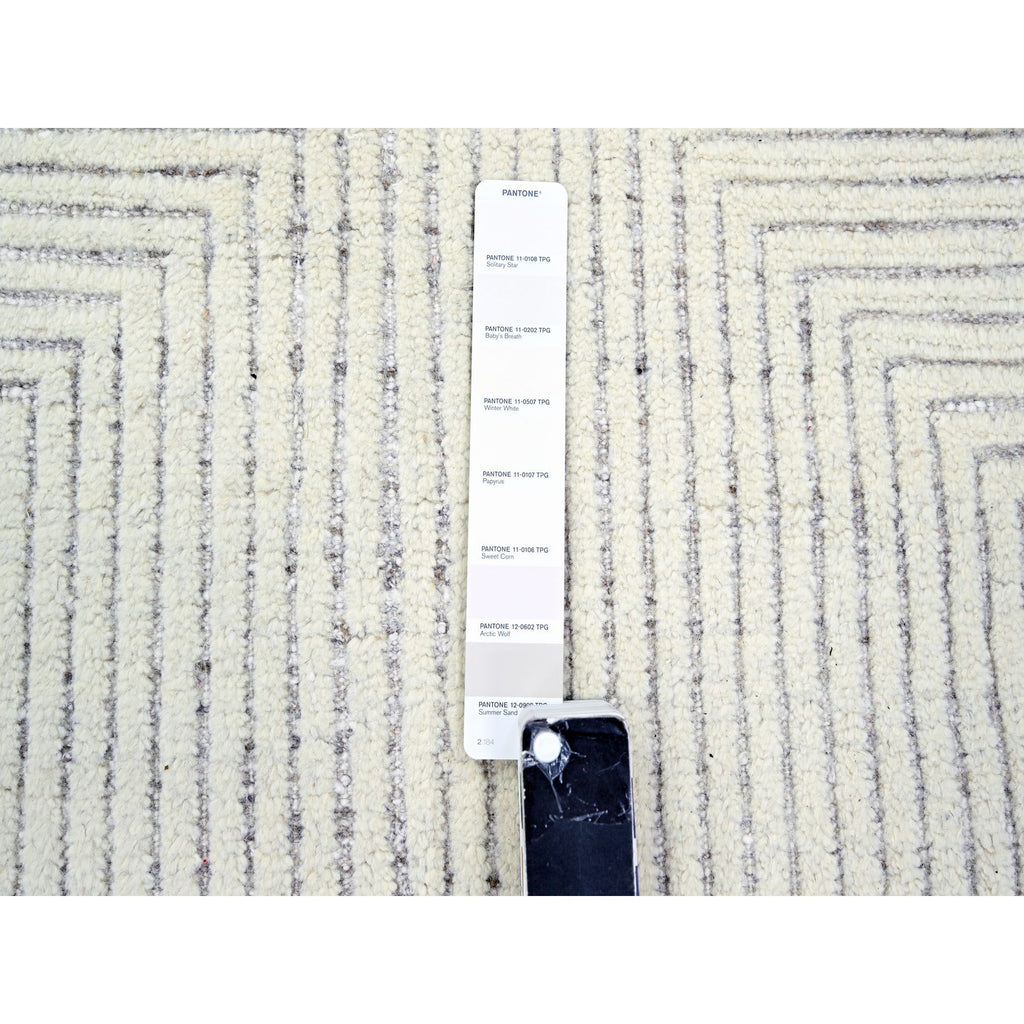 9'x12'1" Alabaster White, Geometric Variegated Line Design, 100% Wool, Hand Knotted, Oriental Rug FWR457278
