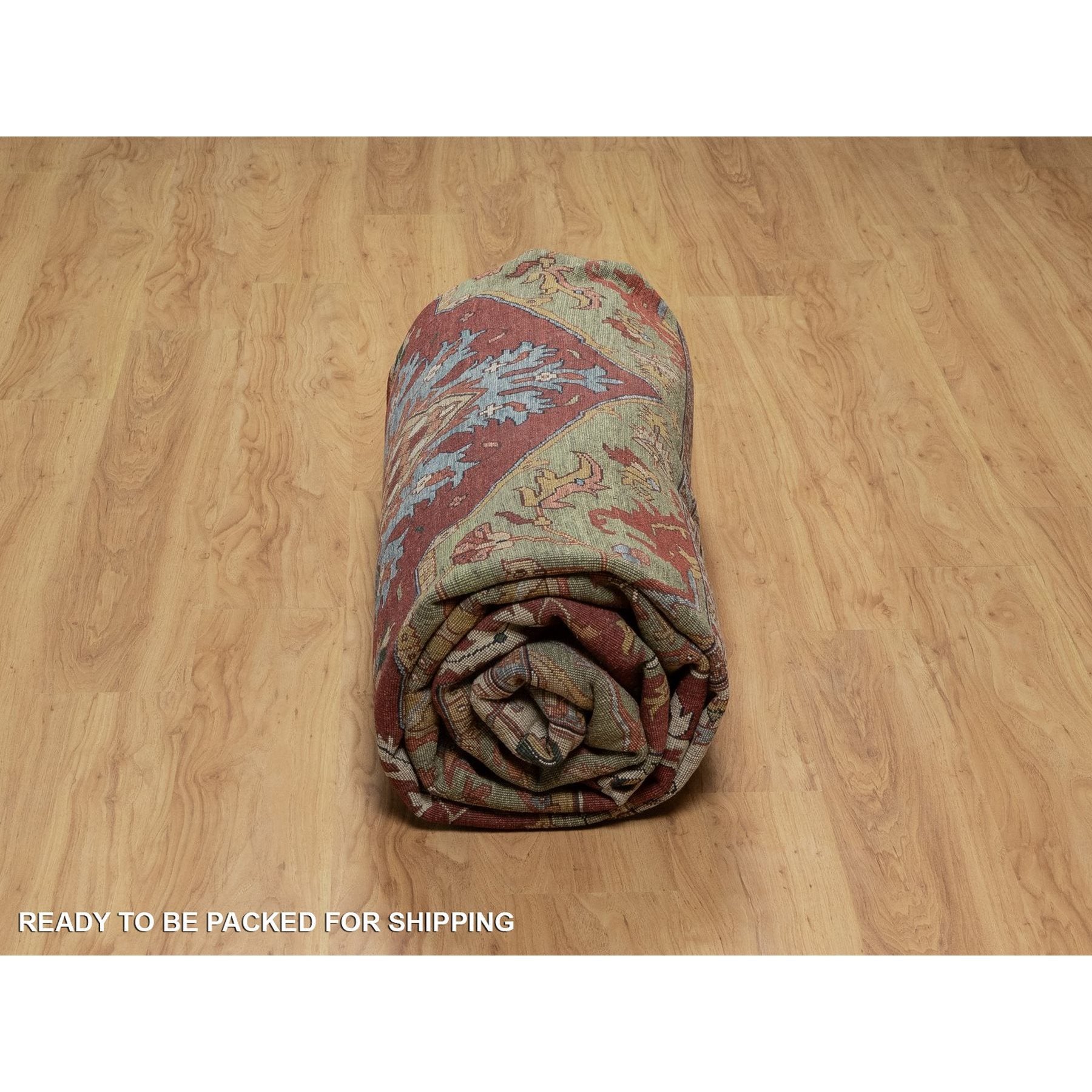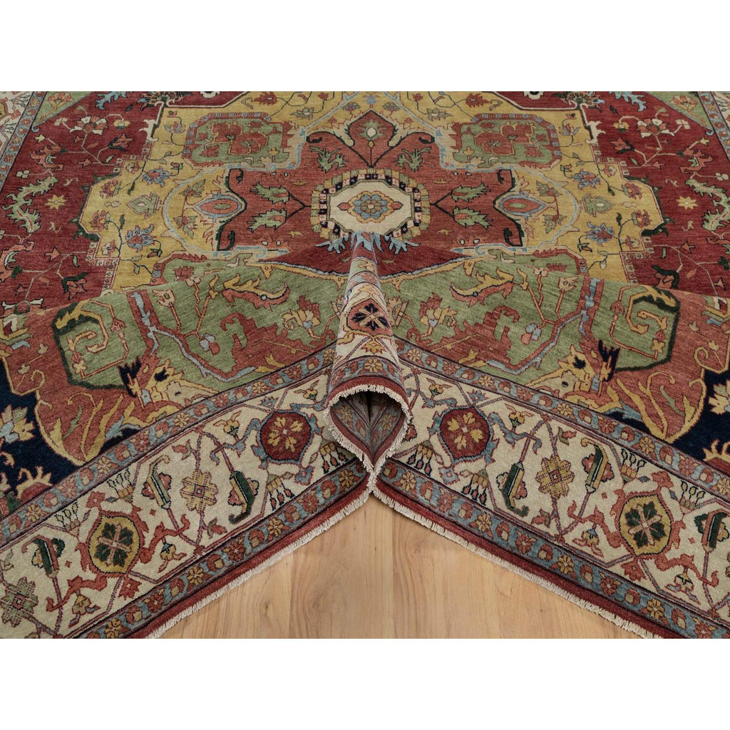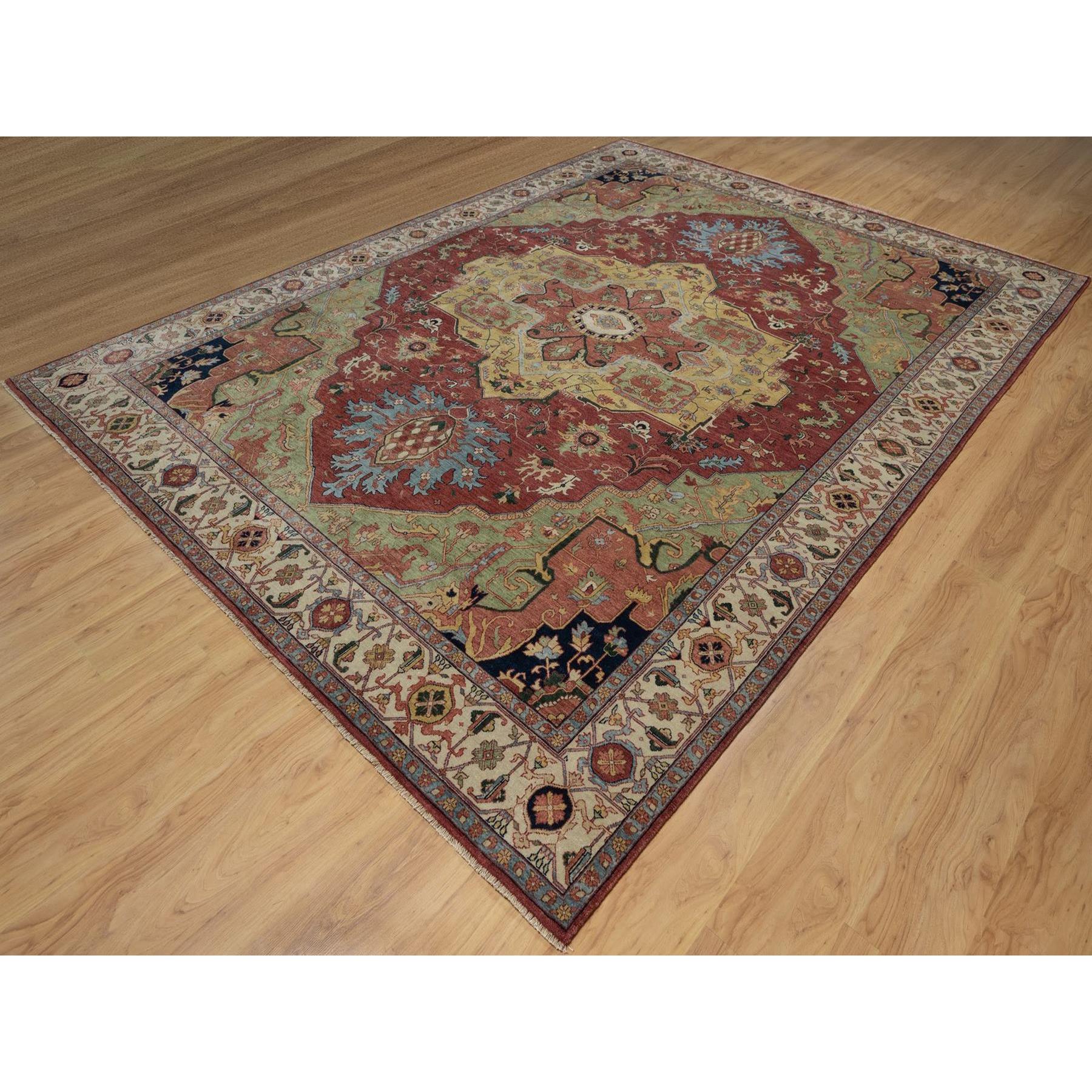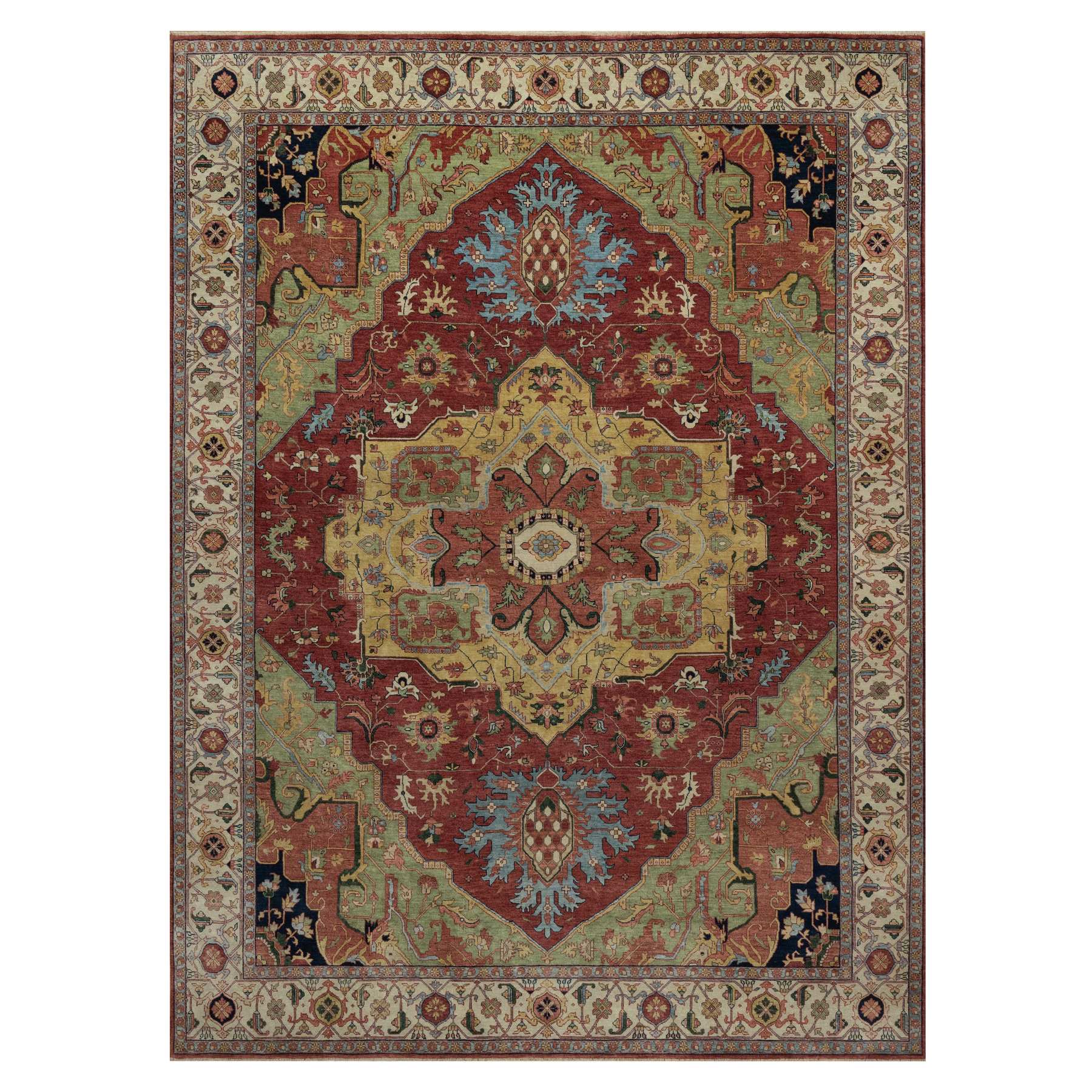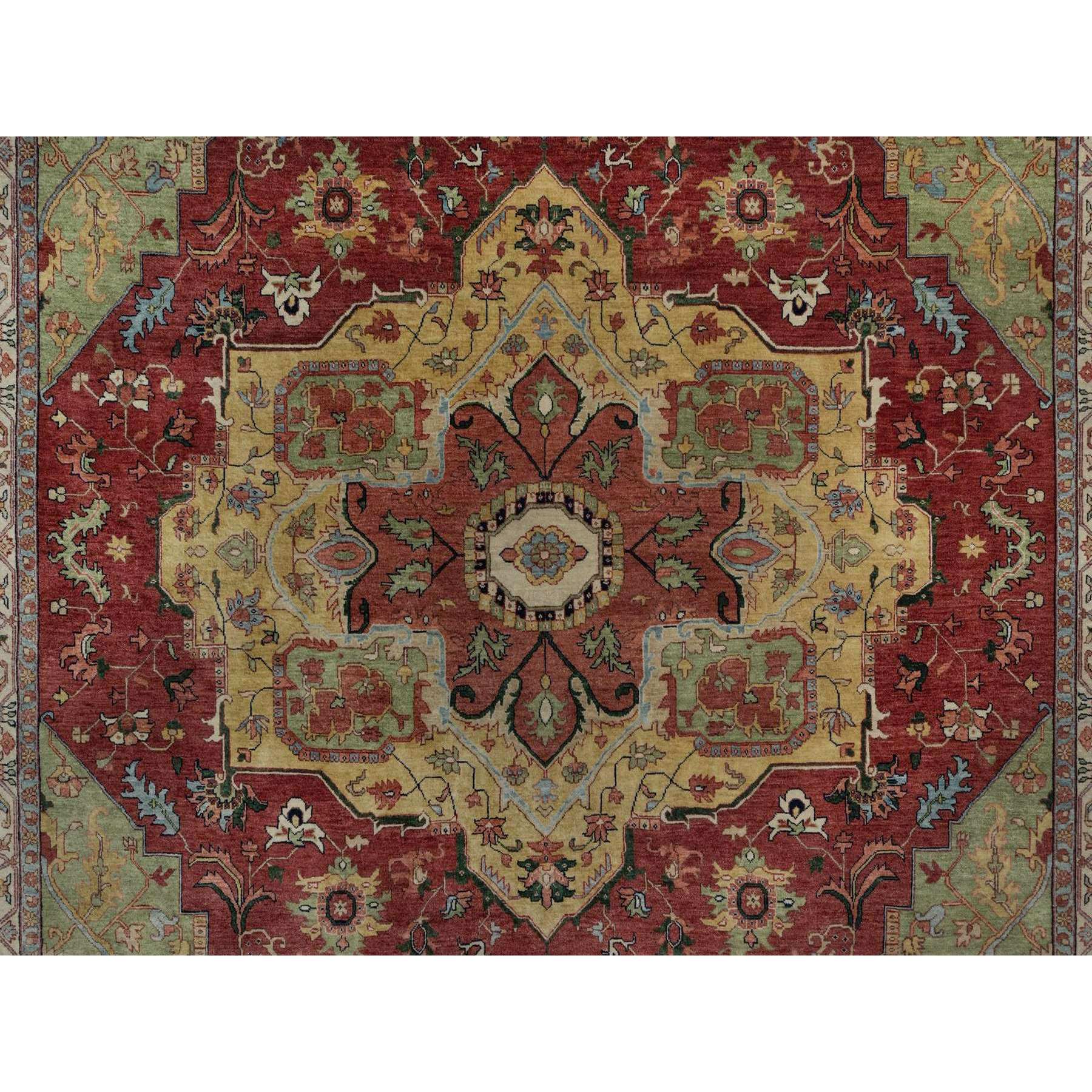 9'x12'1" Barn Red, Antiqued Fine Heriz Re-creation, Medallion Design, Hand Knotted, Soft Pile, Hand Spun New Zealand Wool, Vegetable Dyes, Oriental Rug FWR549096