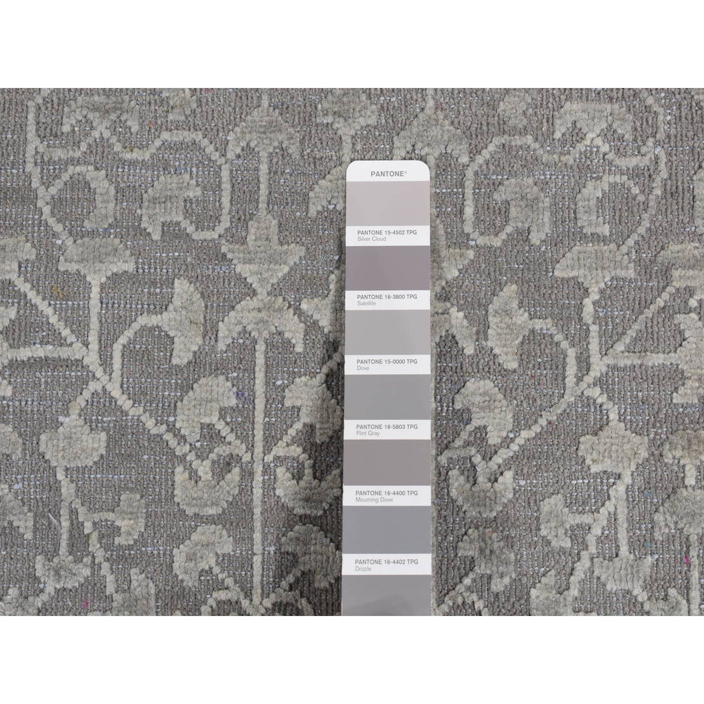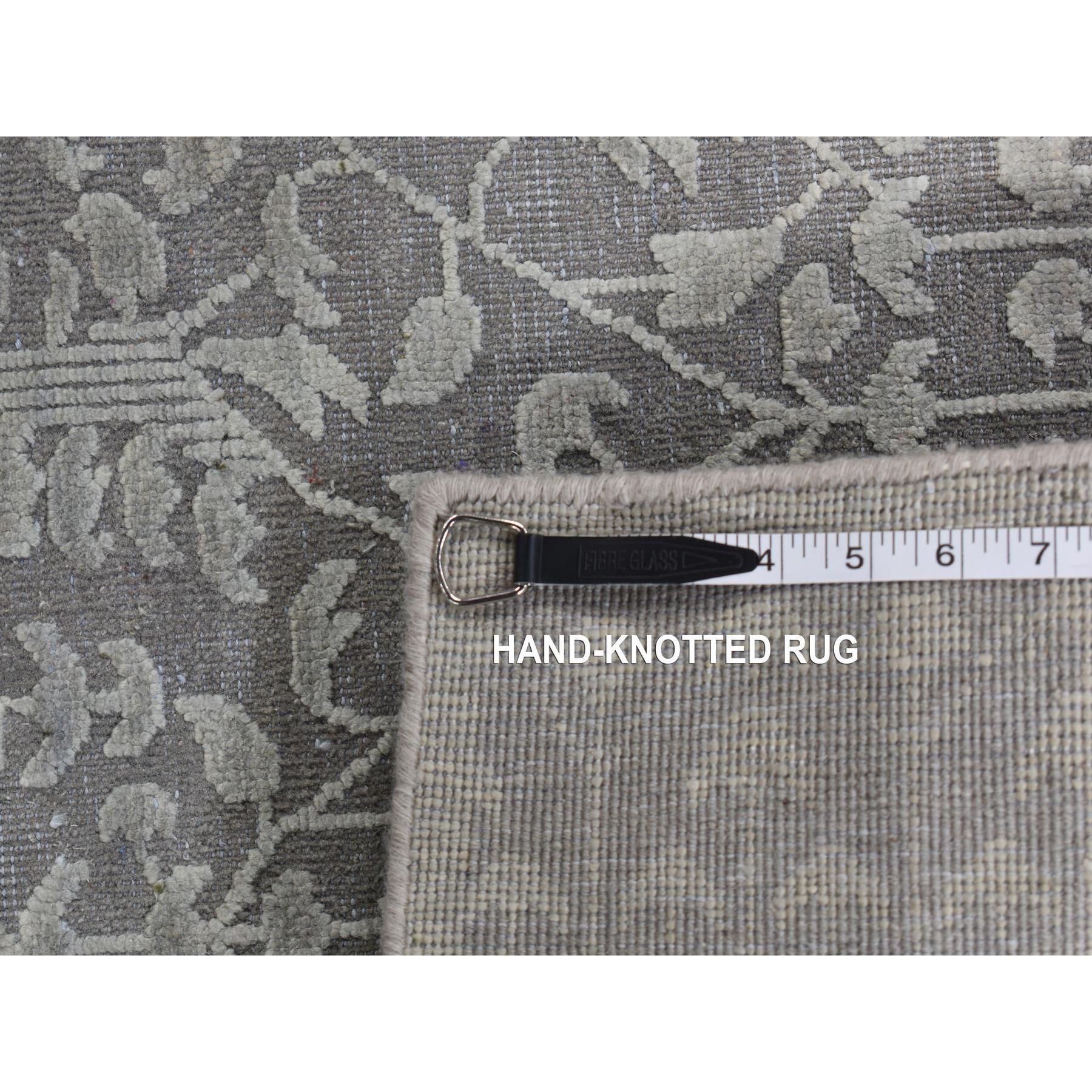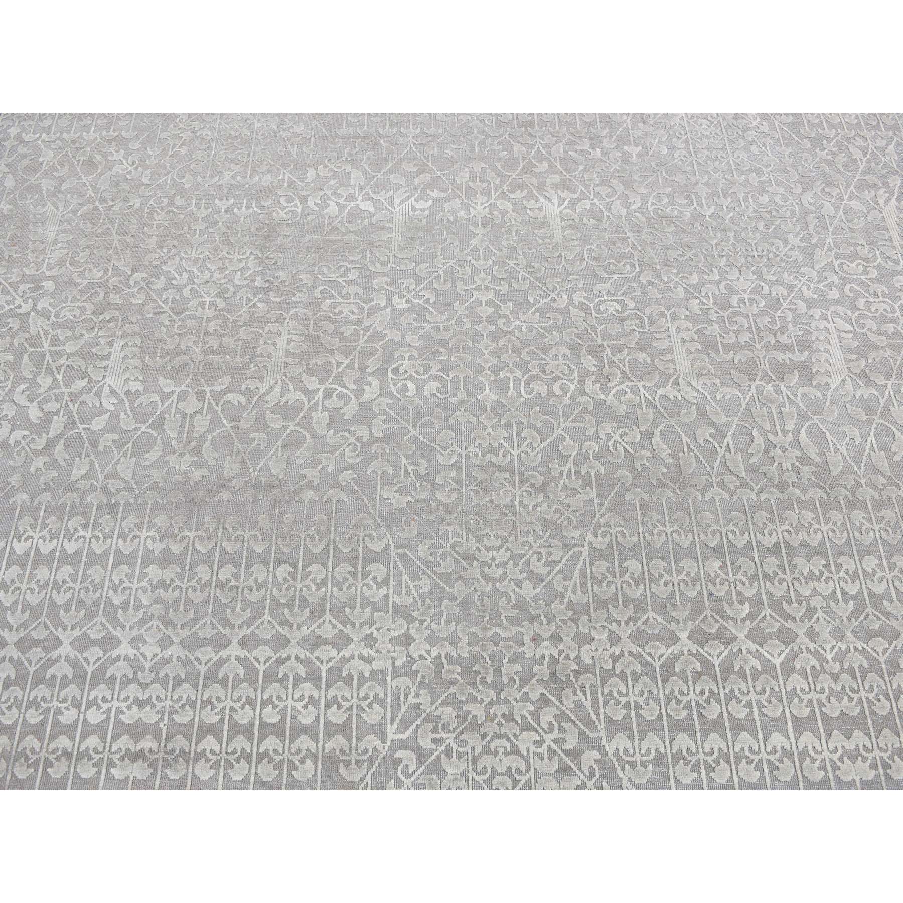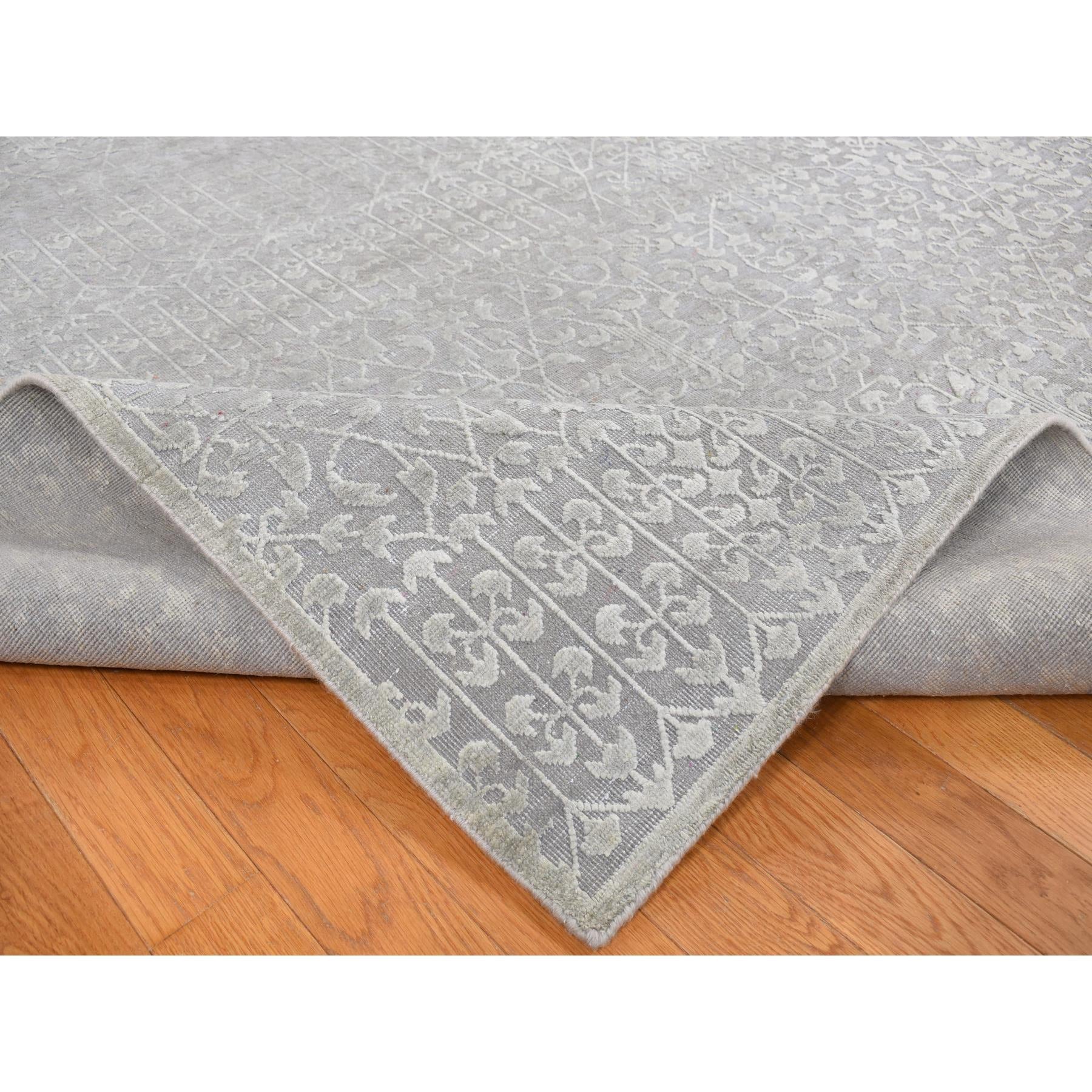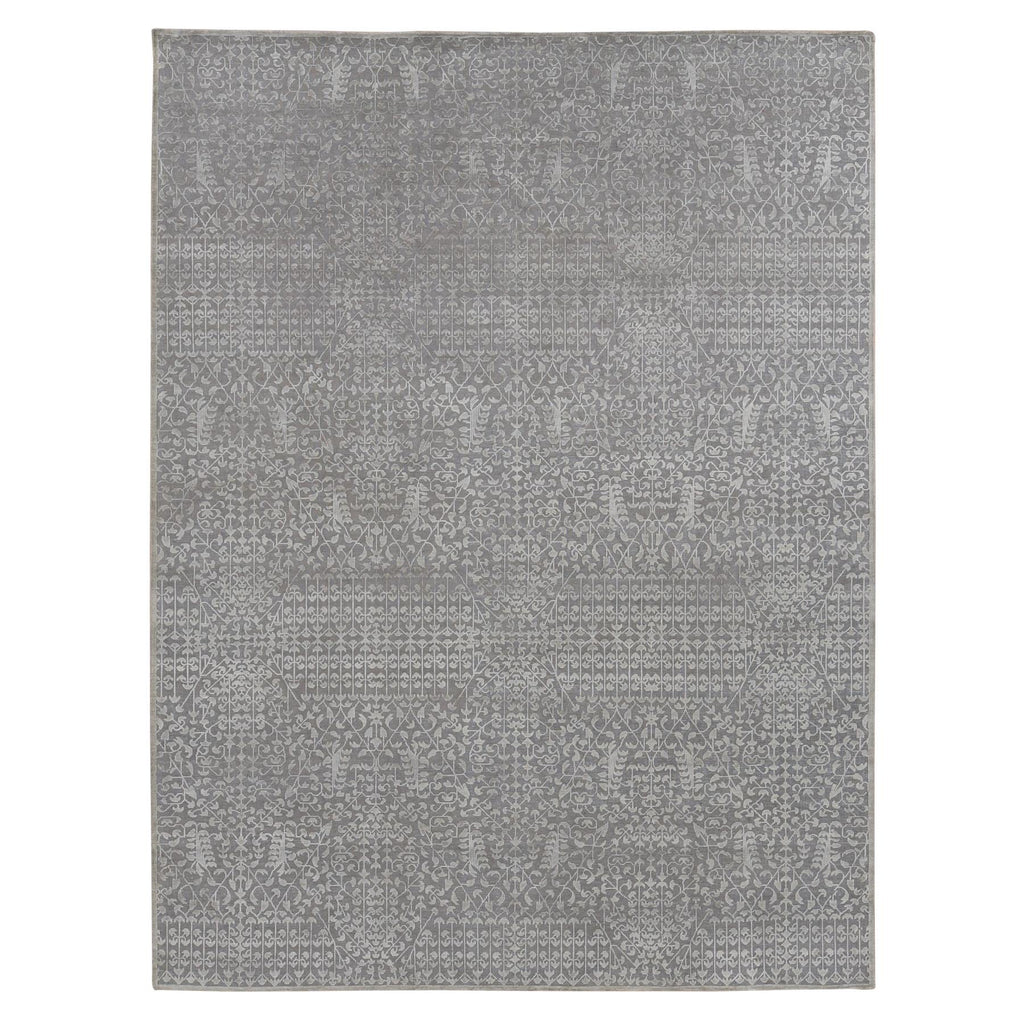9'x12'1" Battleship Gray, Silk With Textured Wool, Tone On Tone, Hand Knotted, Oriental Rug FWR522624