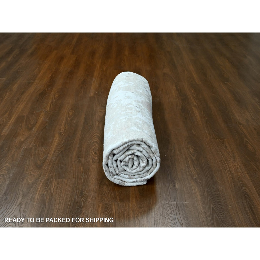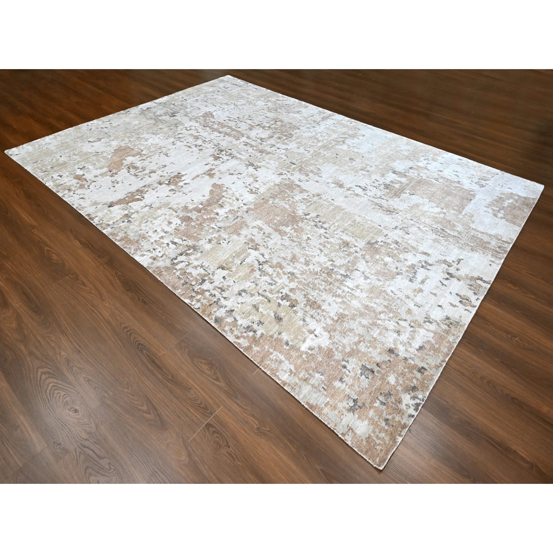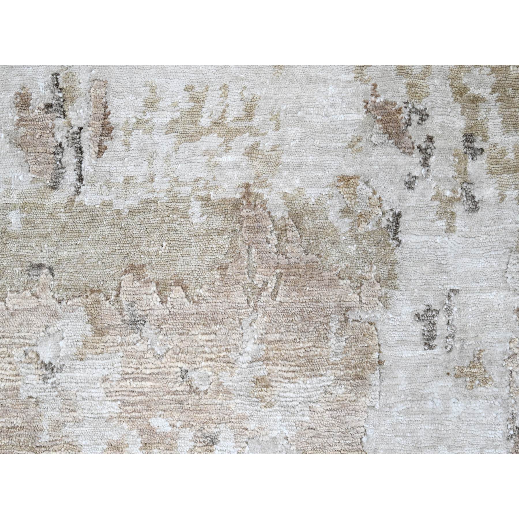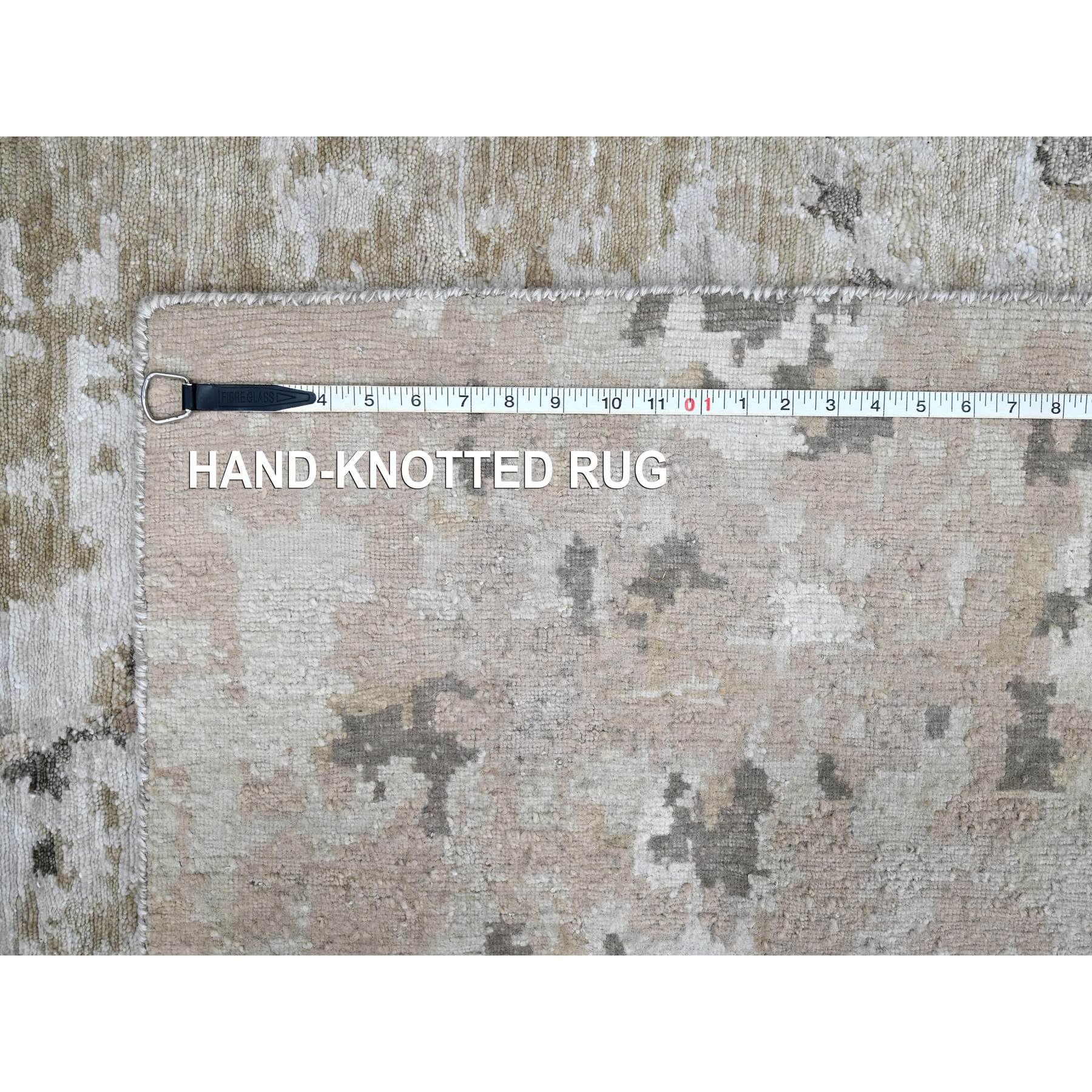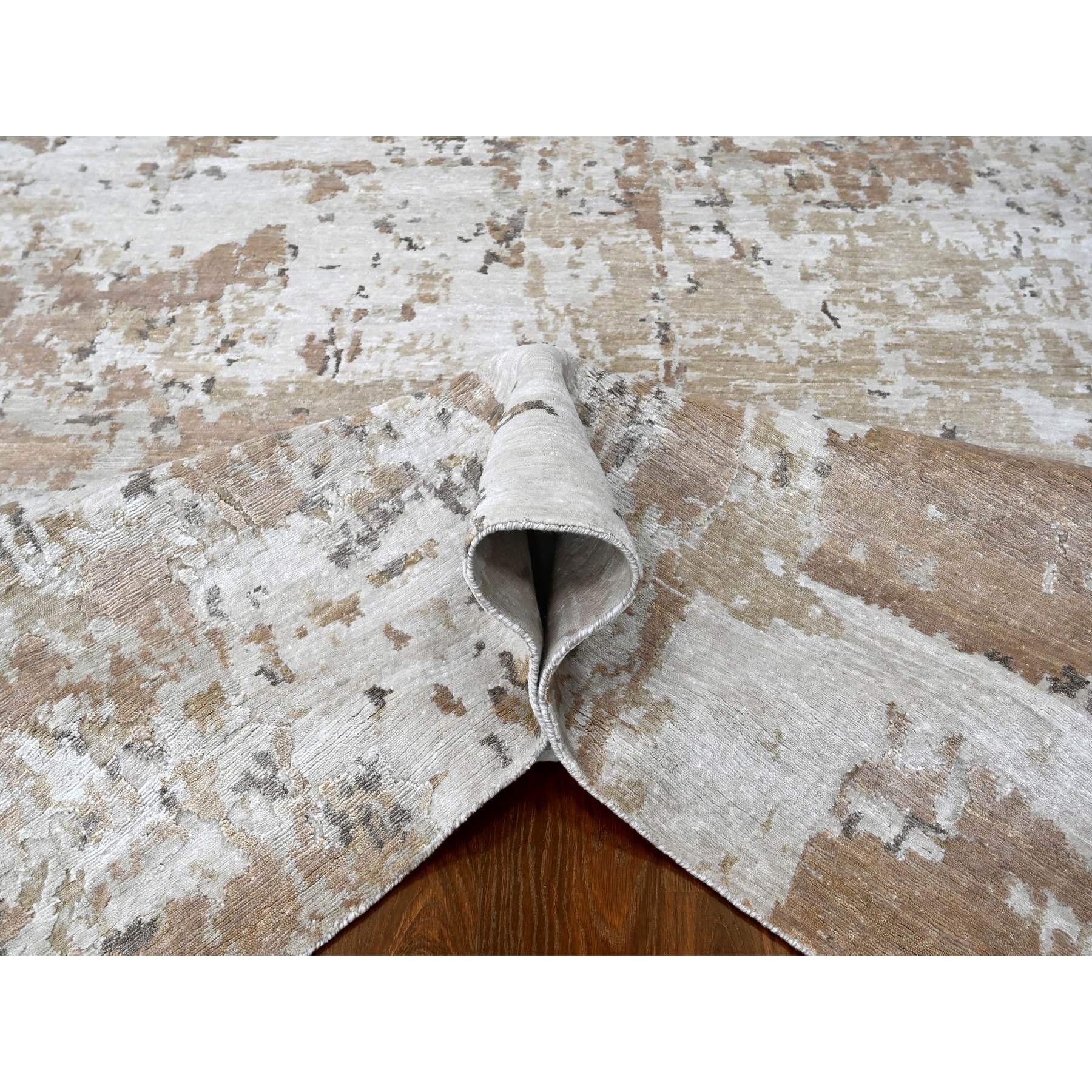 9'x12'1" Beaver Brown And Earth Tone Colors, Abstract Design With Nepali Weave, Shiny Plant Based Silk, Hand Knotted, Oriental Rug FWR61266