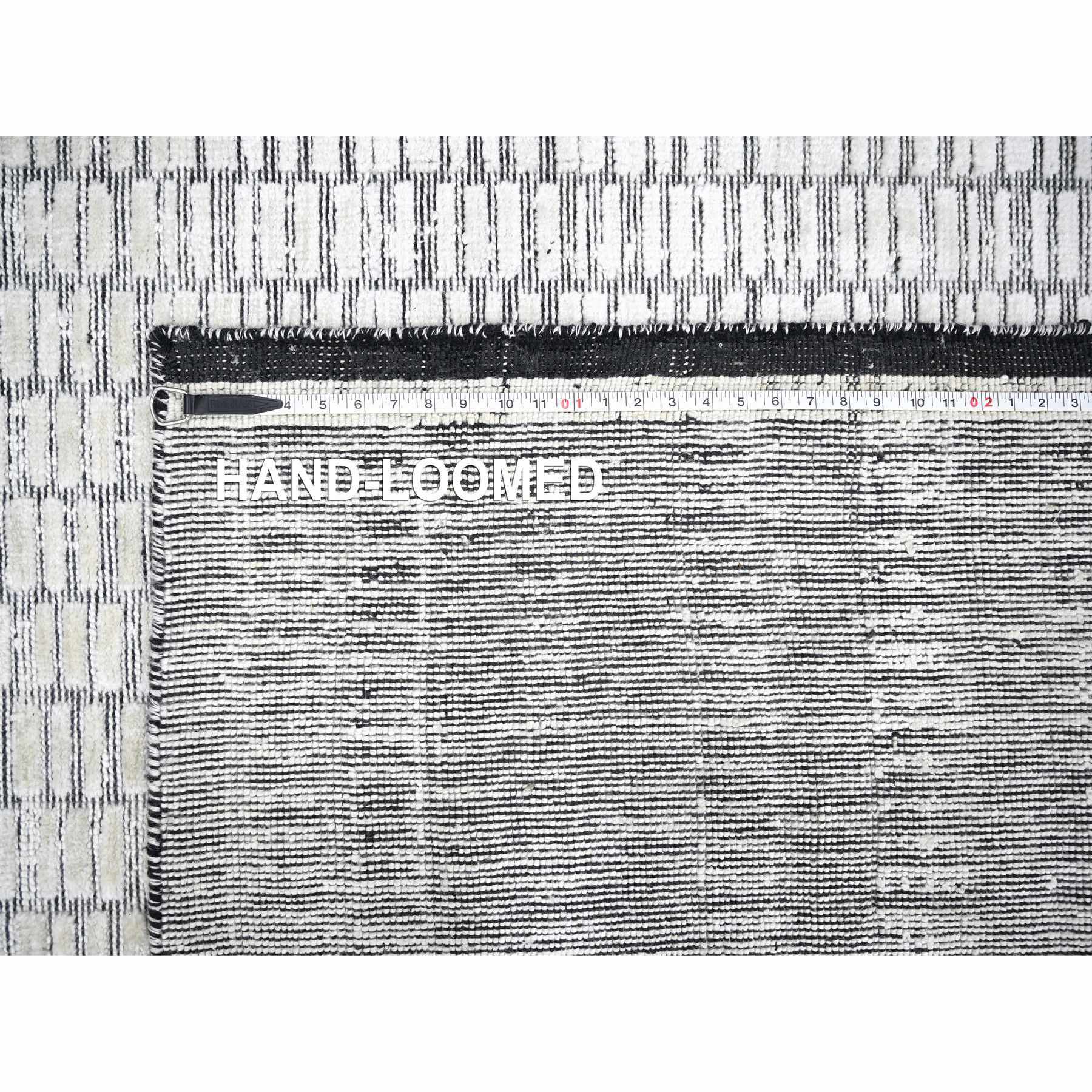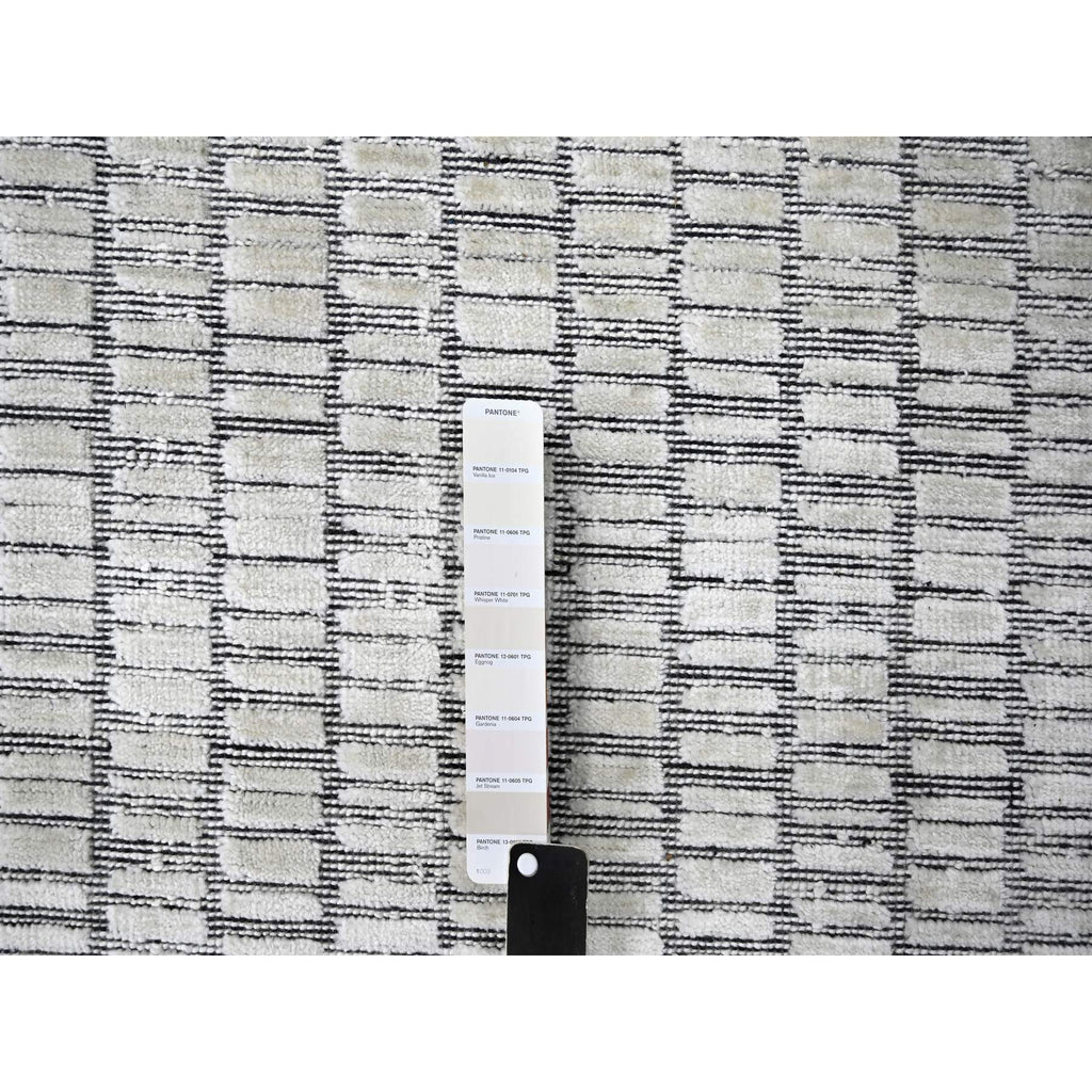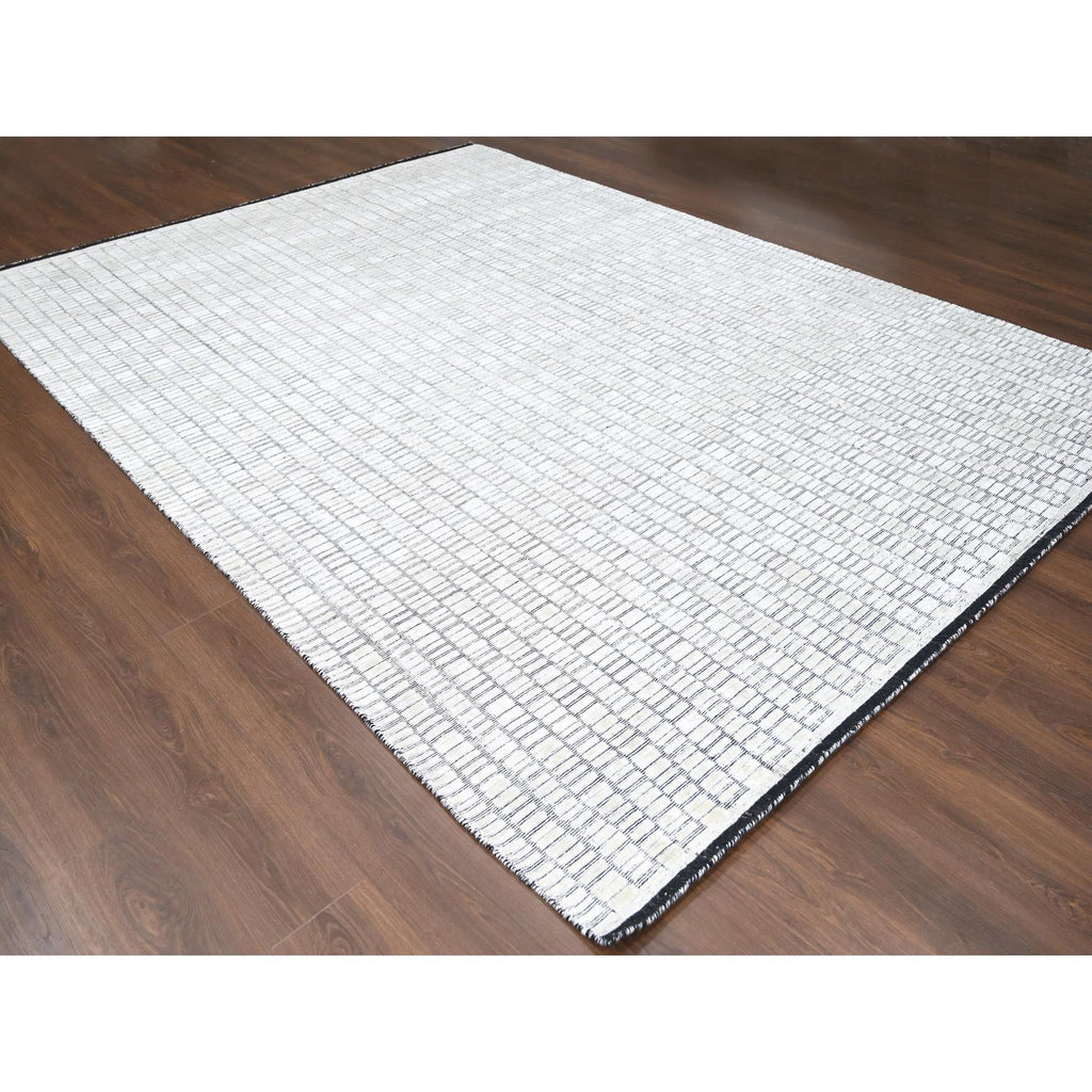 9'x12'1"black And Ivory, Modern Textured And Roman Floor Design, Hand Loomed, Wool And Plant Based Silk, Oriental Rug FWR506472