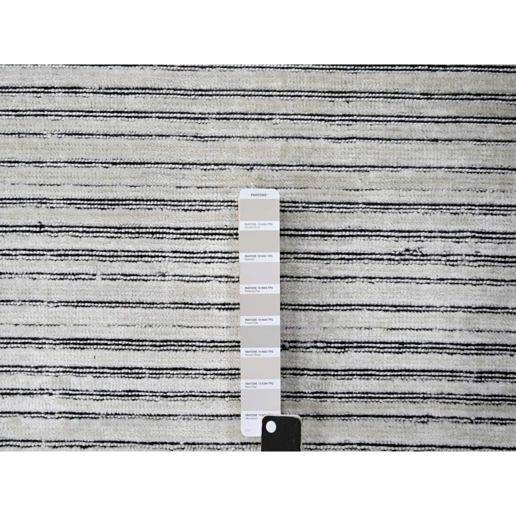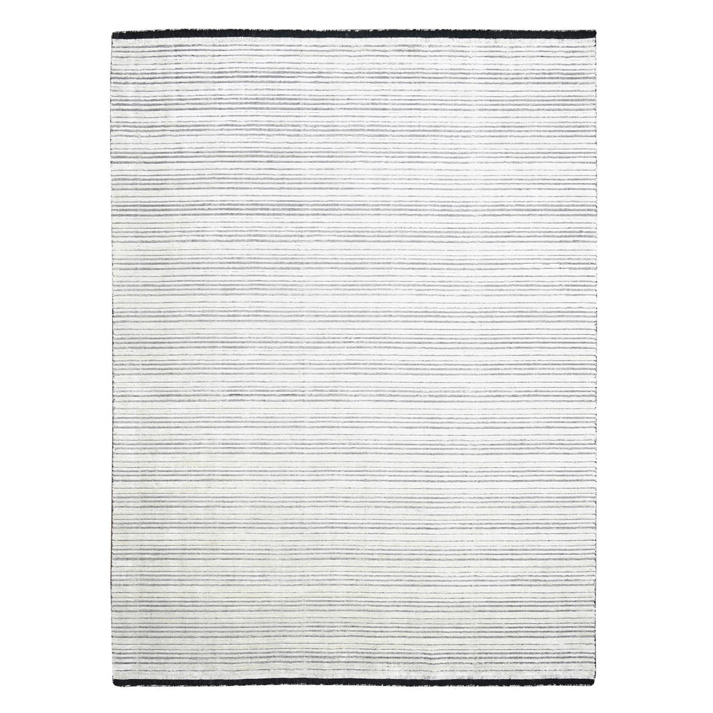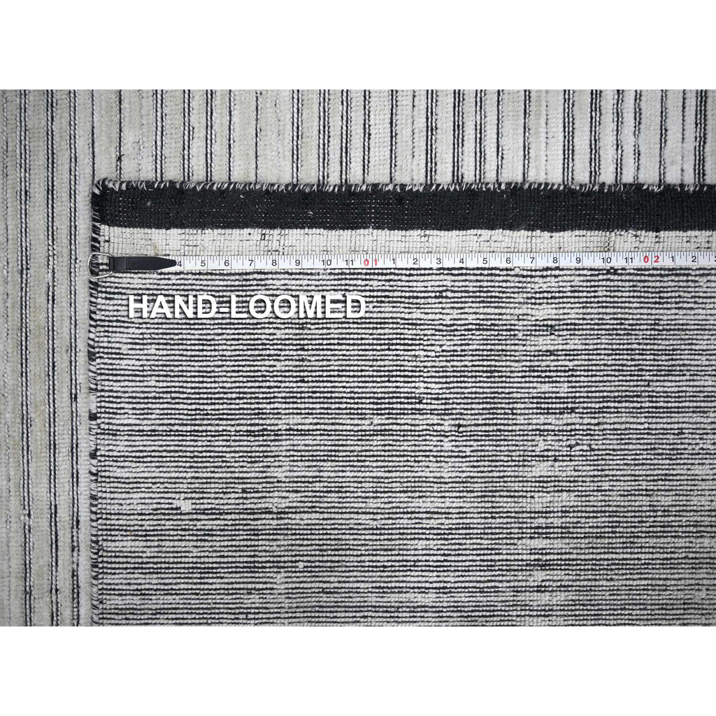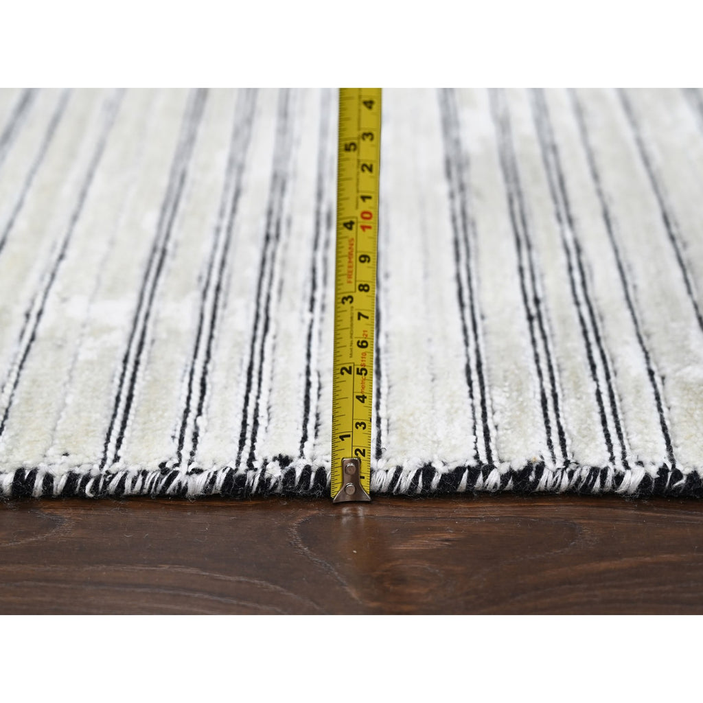 9'x12'1" Black And Ivory, Modern Textured And Variegated Line Design, Hand Loomed, Wool And Plant Based Silk, Oriental Rug FWR505674