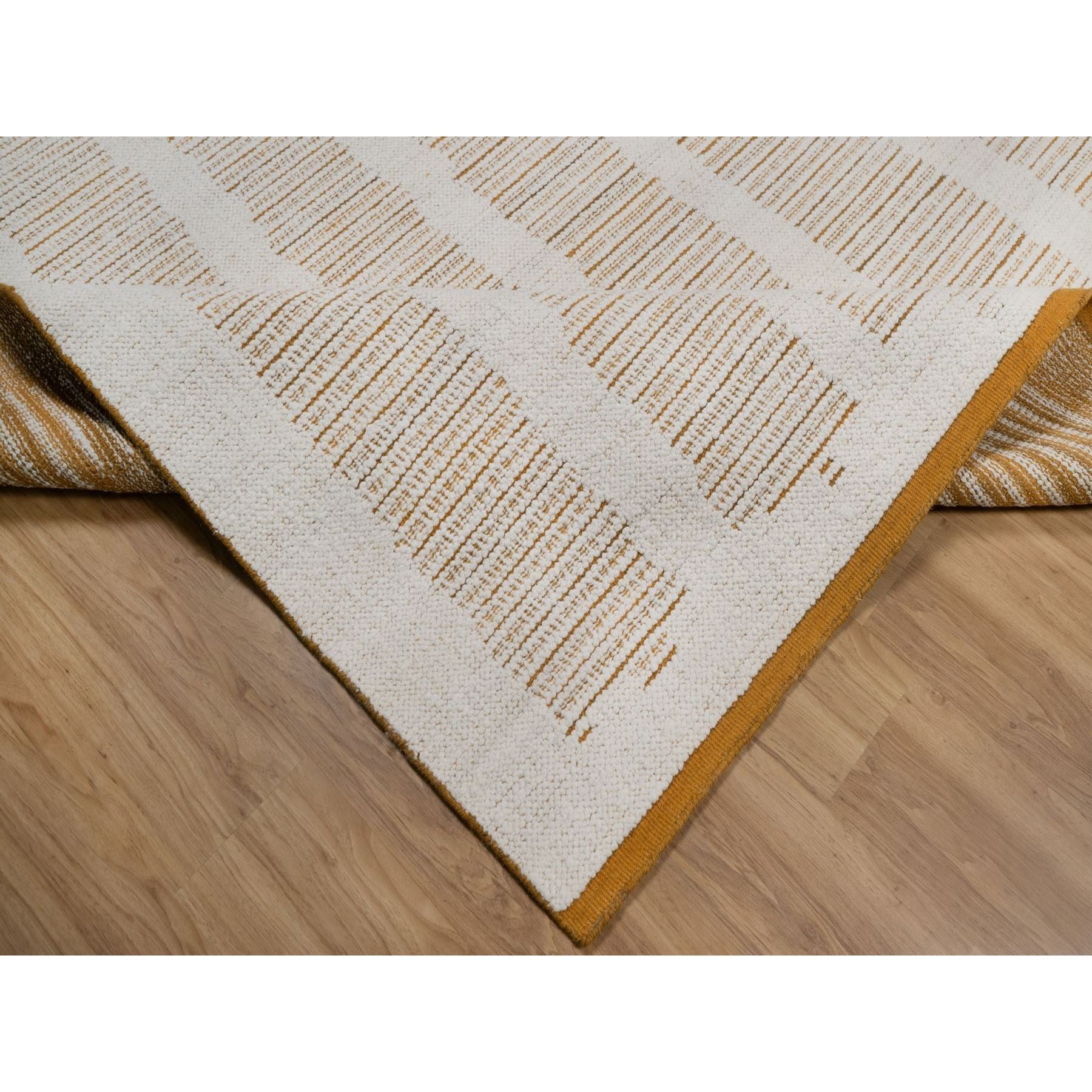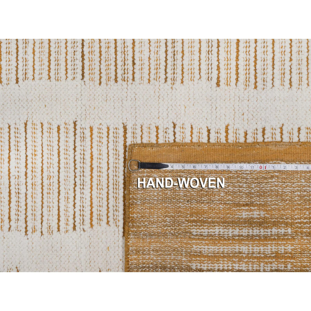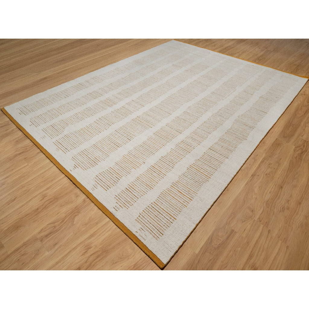 9'x12'1" Chiffon White, Flat Weave With Textured Pile, Undyed Natural Wool, Hand Woven, Oriental Rug FWR550494
