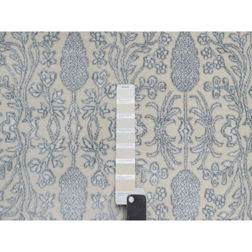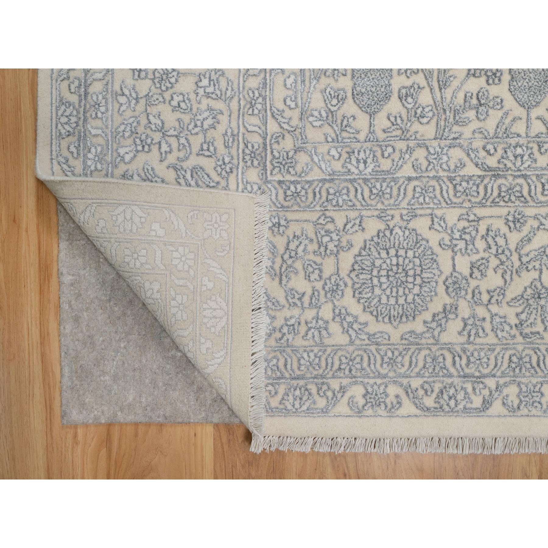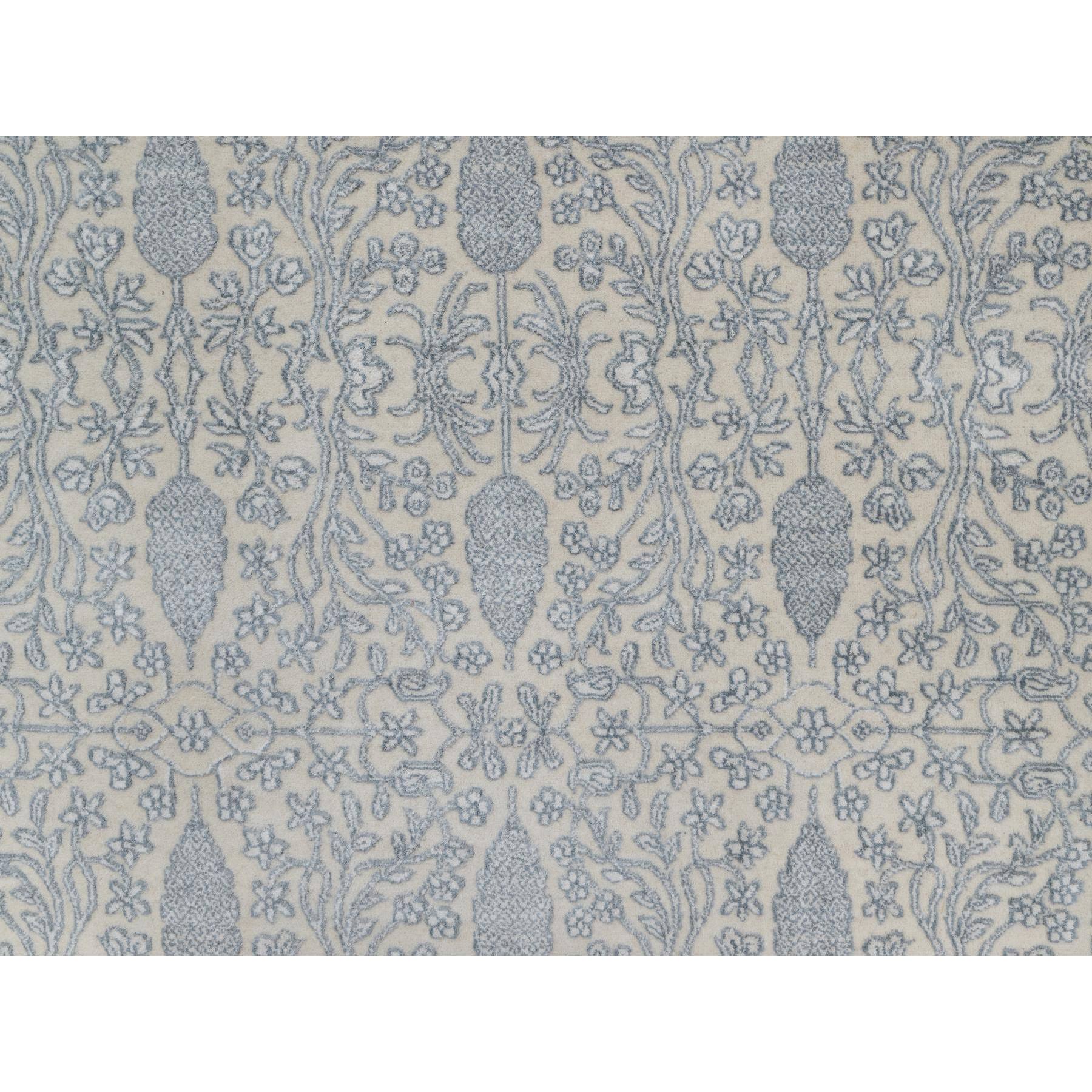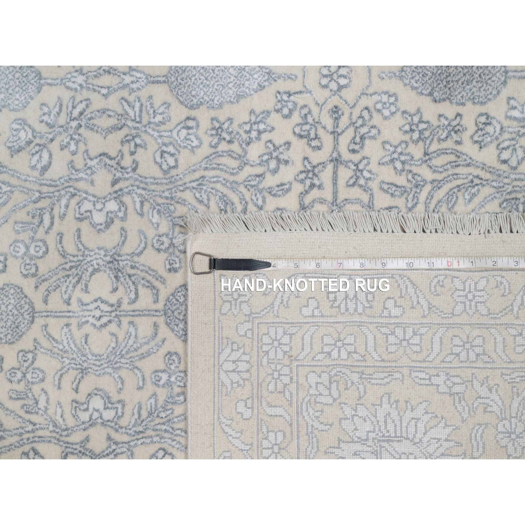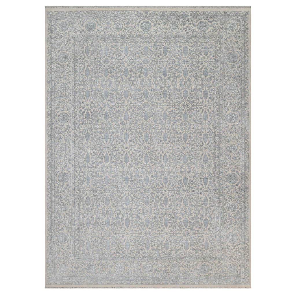 9'x12'1" Chiffon White, Light Tone On Tone With Persian Design With Repetitive Floral Motifs, Wool And Plant Based Silk, Thick And Plush, 200 Kpsi, Hand Knotted, Oriental Rug FWR548118