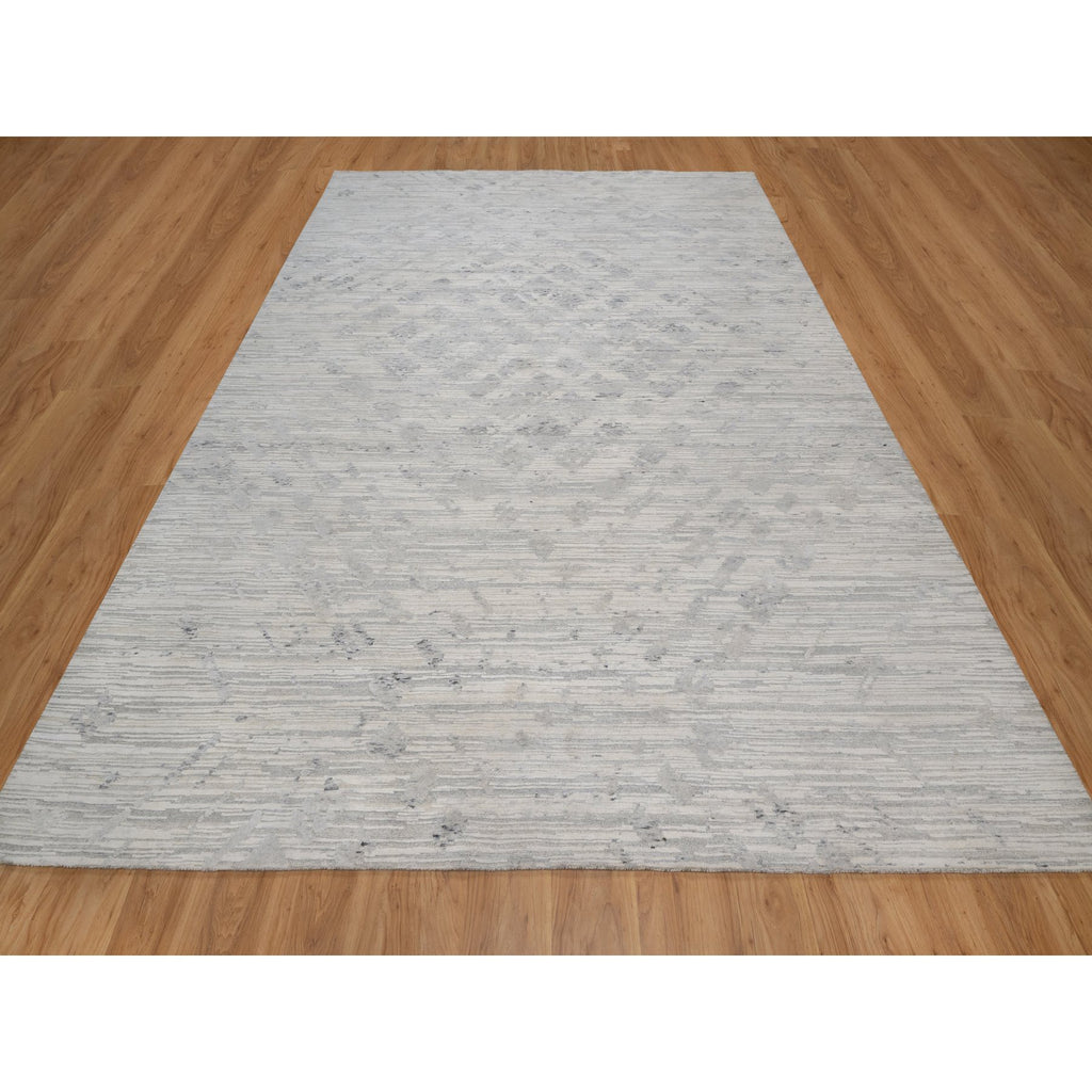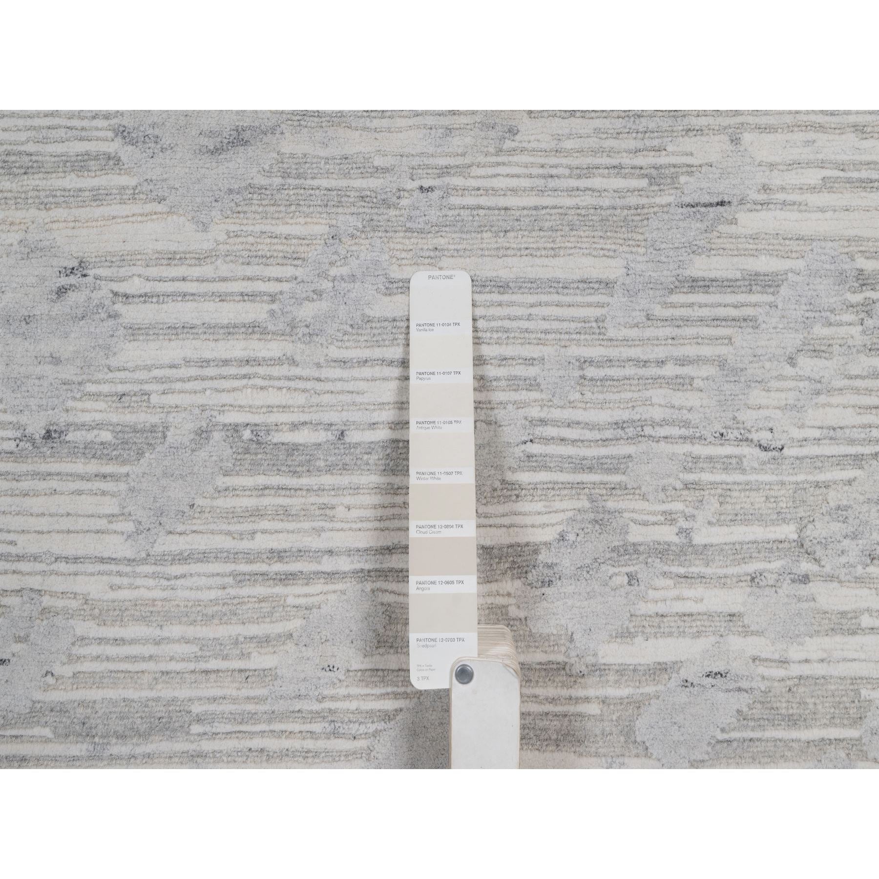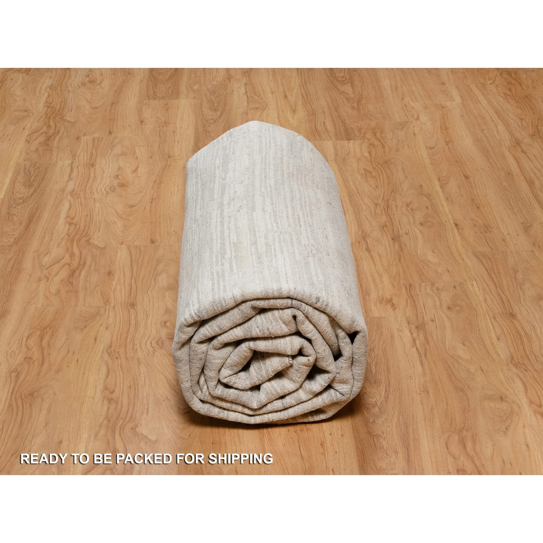 9'x12'1" Cream White, Modern Design, Hand Knotted, Hand Spun Undyed Natural Wool, Oriental Rug FWR551154