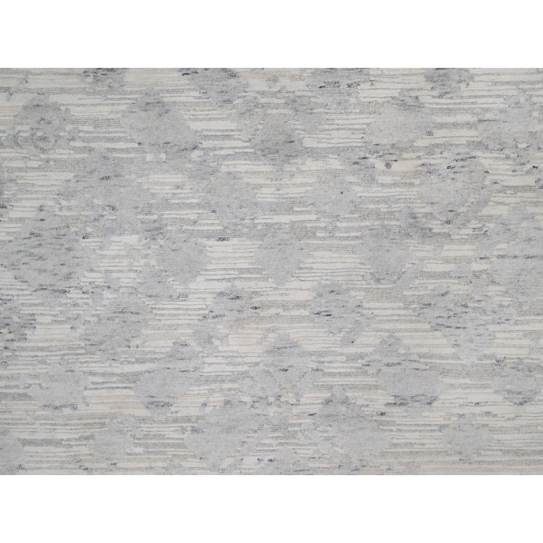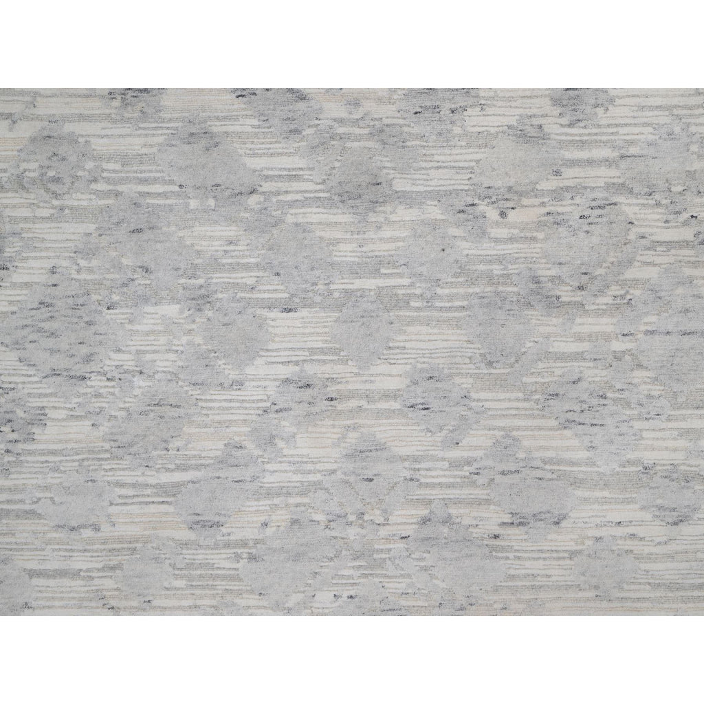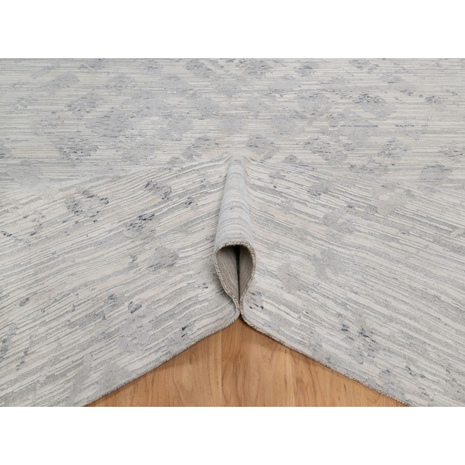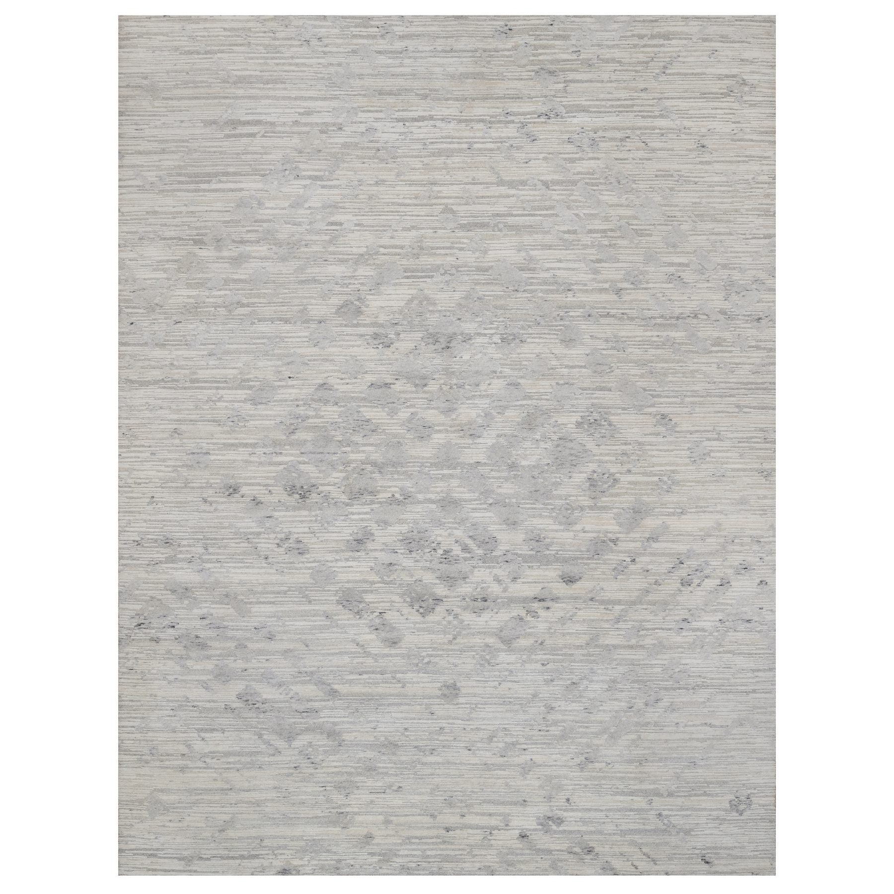 9'x12'1" Cream White, Modern Design, Hand Knotted, Hand Spun Undyed Natural Wool, Oriental Rug FWR551154