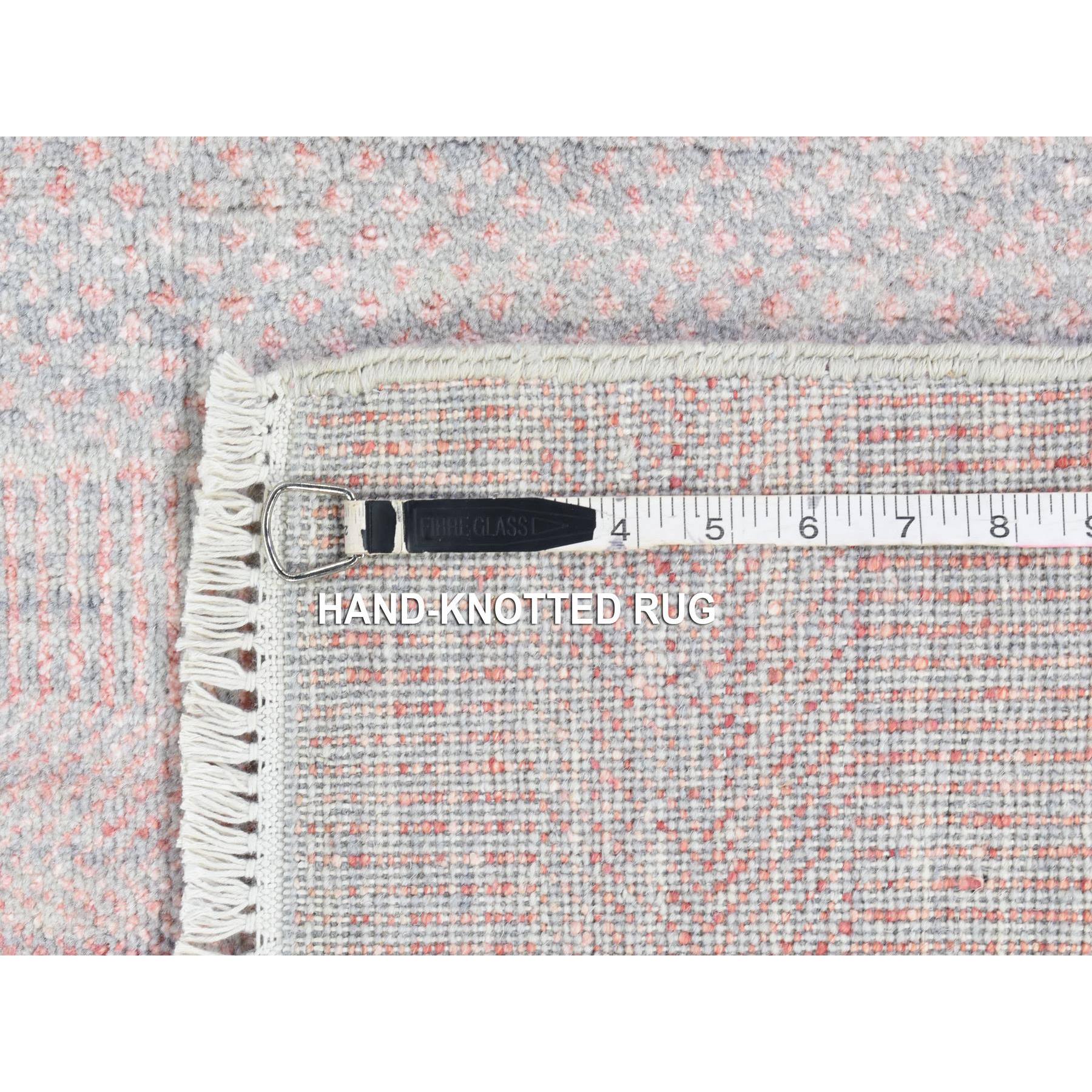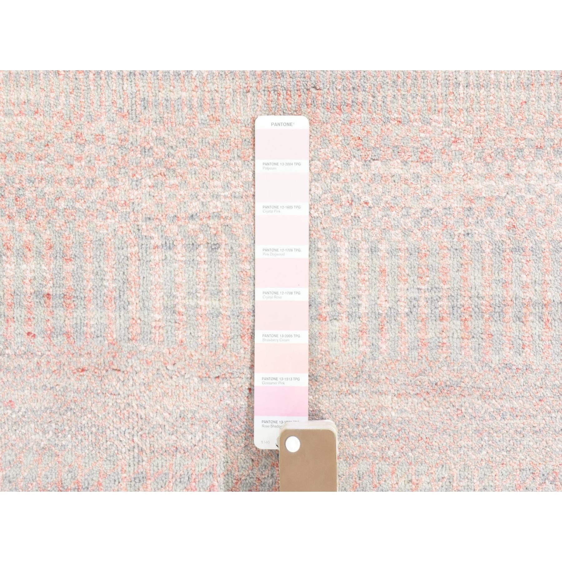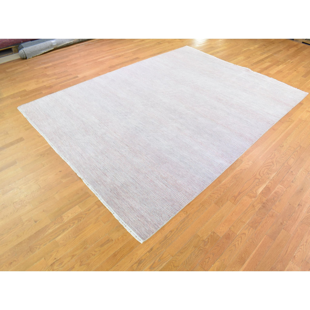 9'x12'1" Faded Pink Grass Design Gabbeh Hand Knotted Wool And Silk Densely Woven Modern Oriental Rug FWR401376