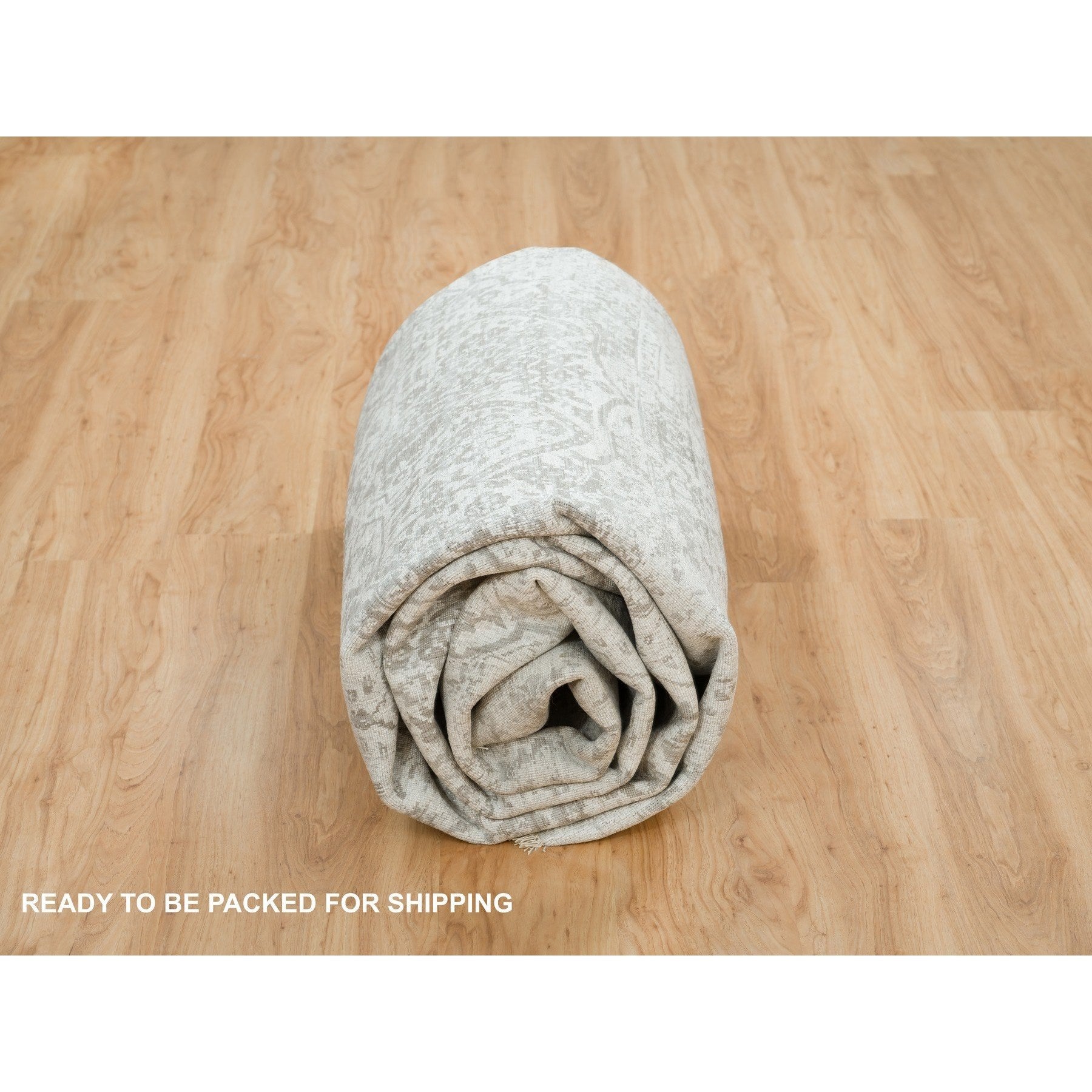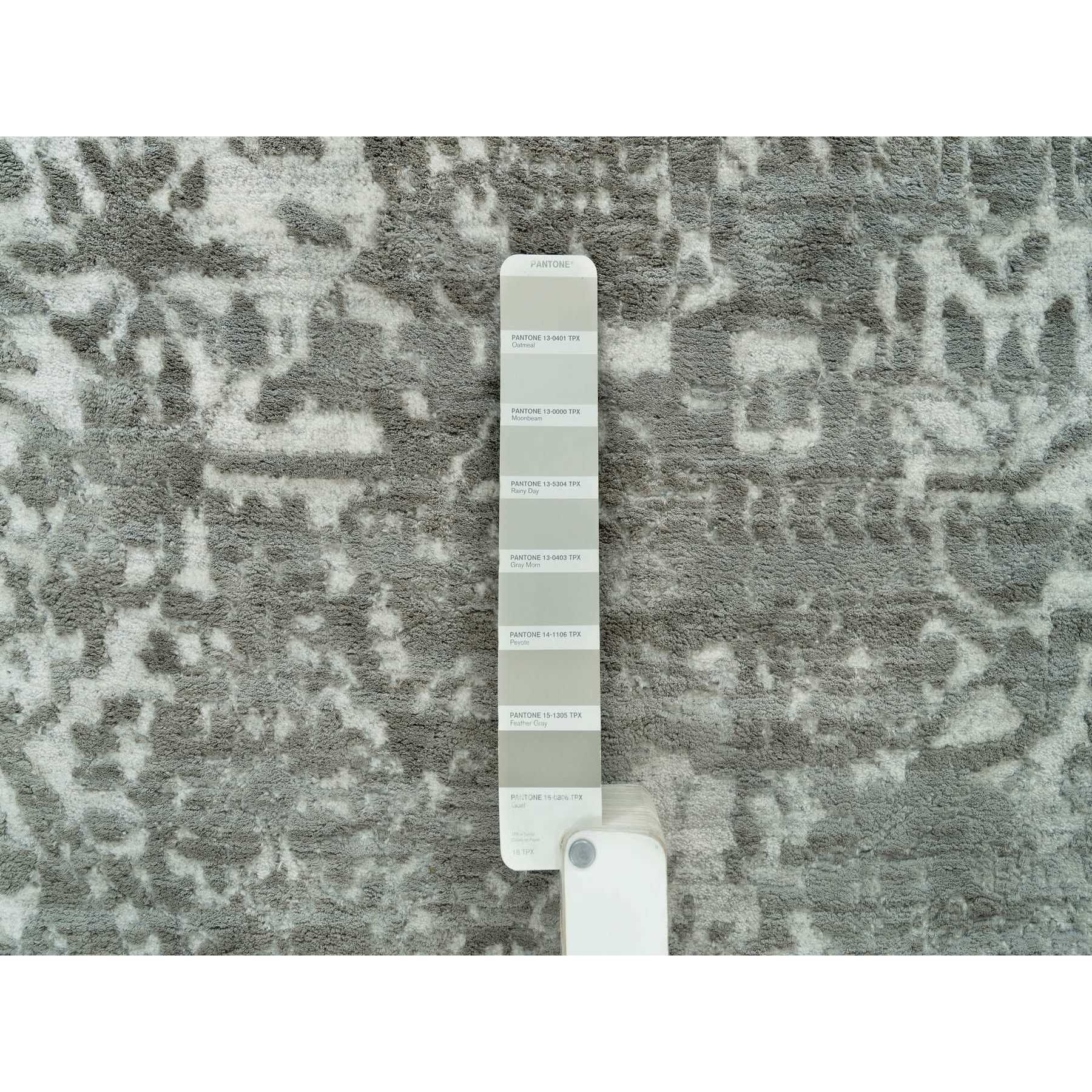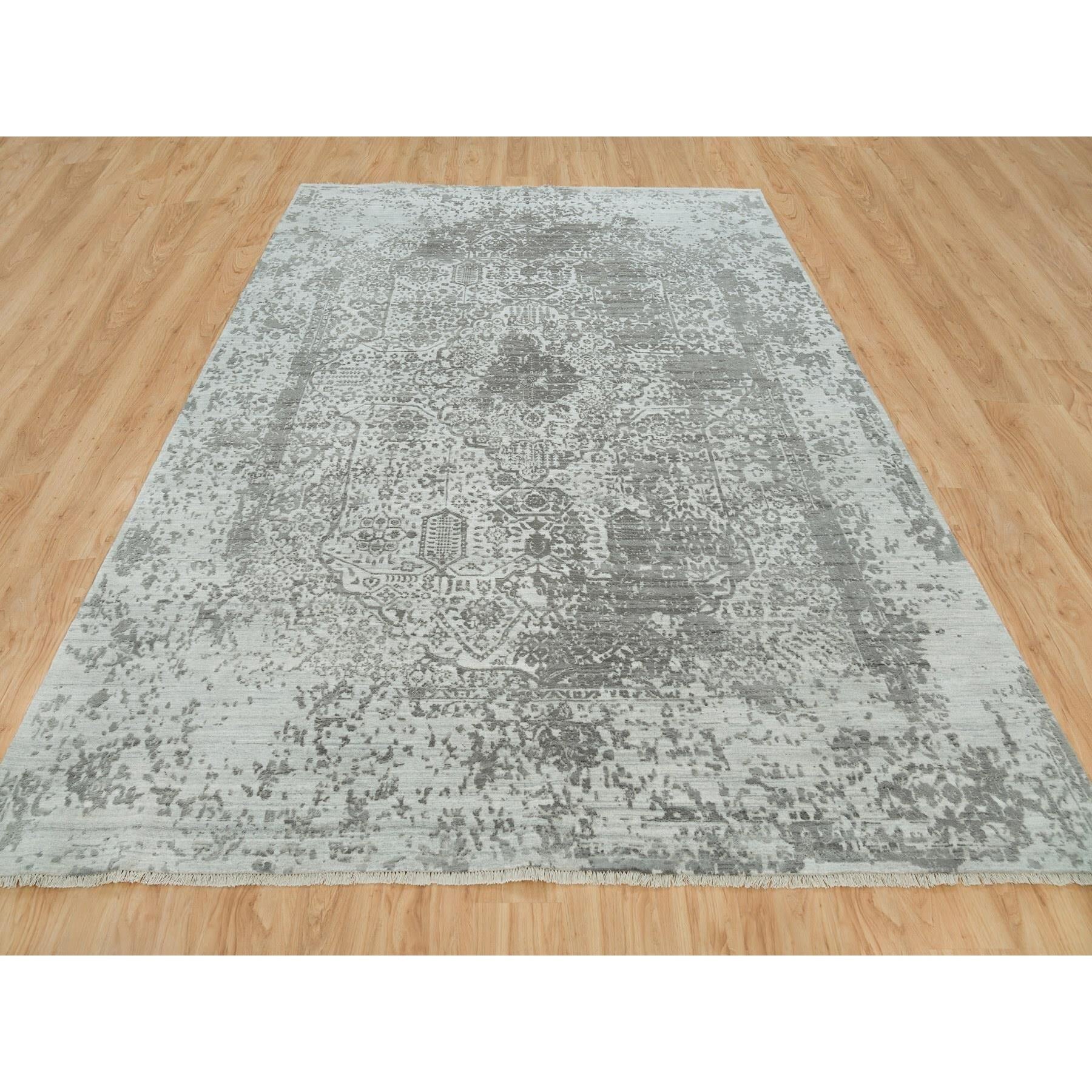 9'x12'1" Goose Gray, Broken Persian Design, Hand Knotted, Wool And Silk, Oriental Rug FWR395262