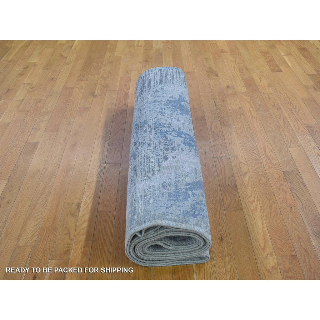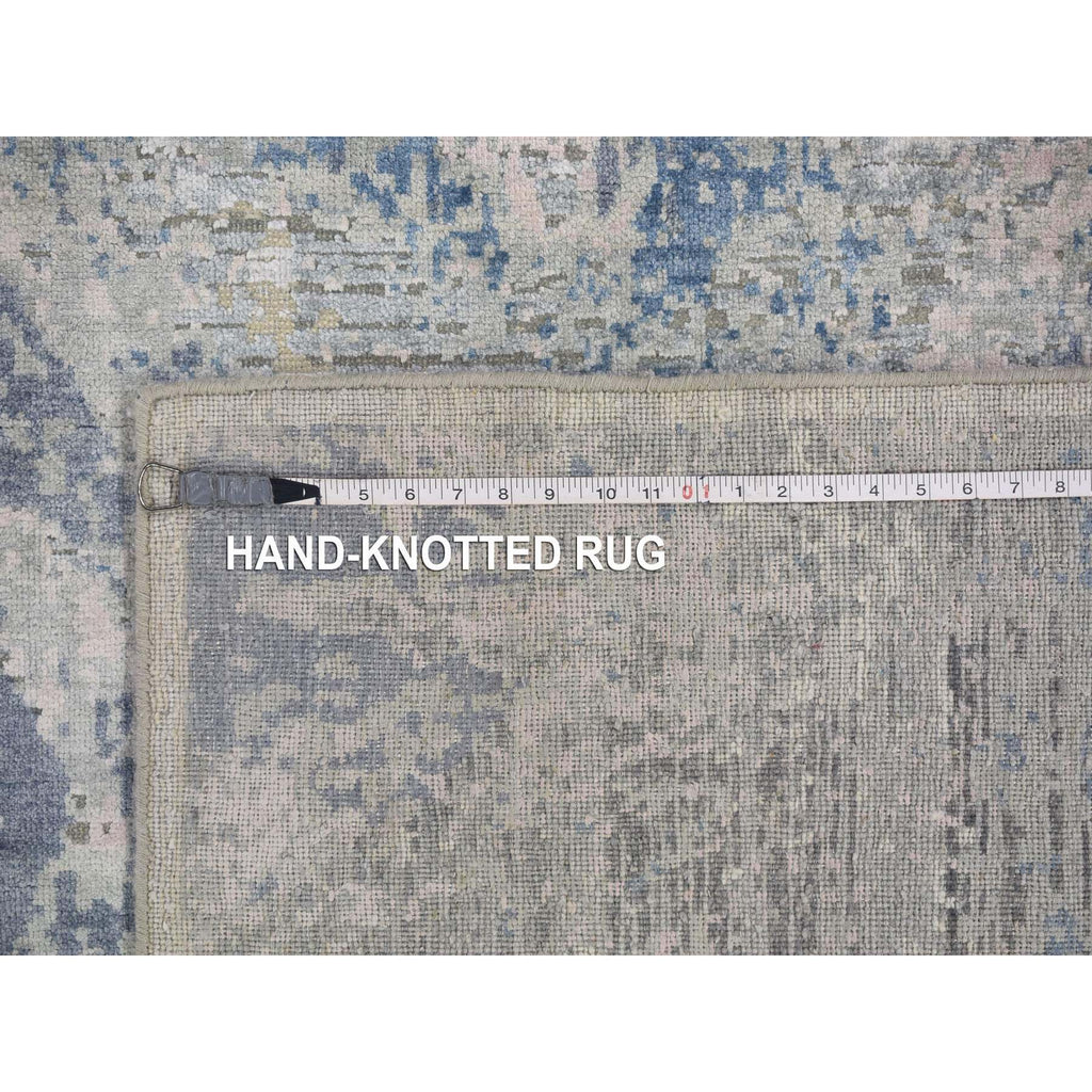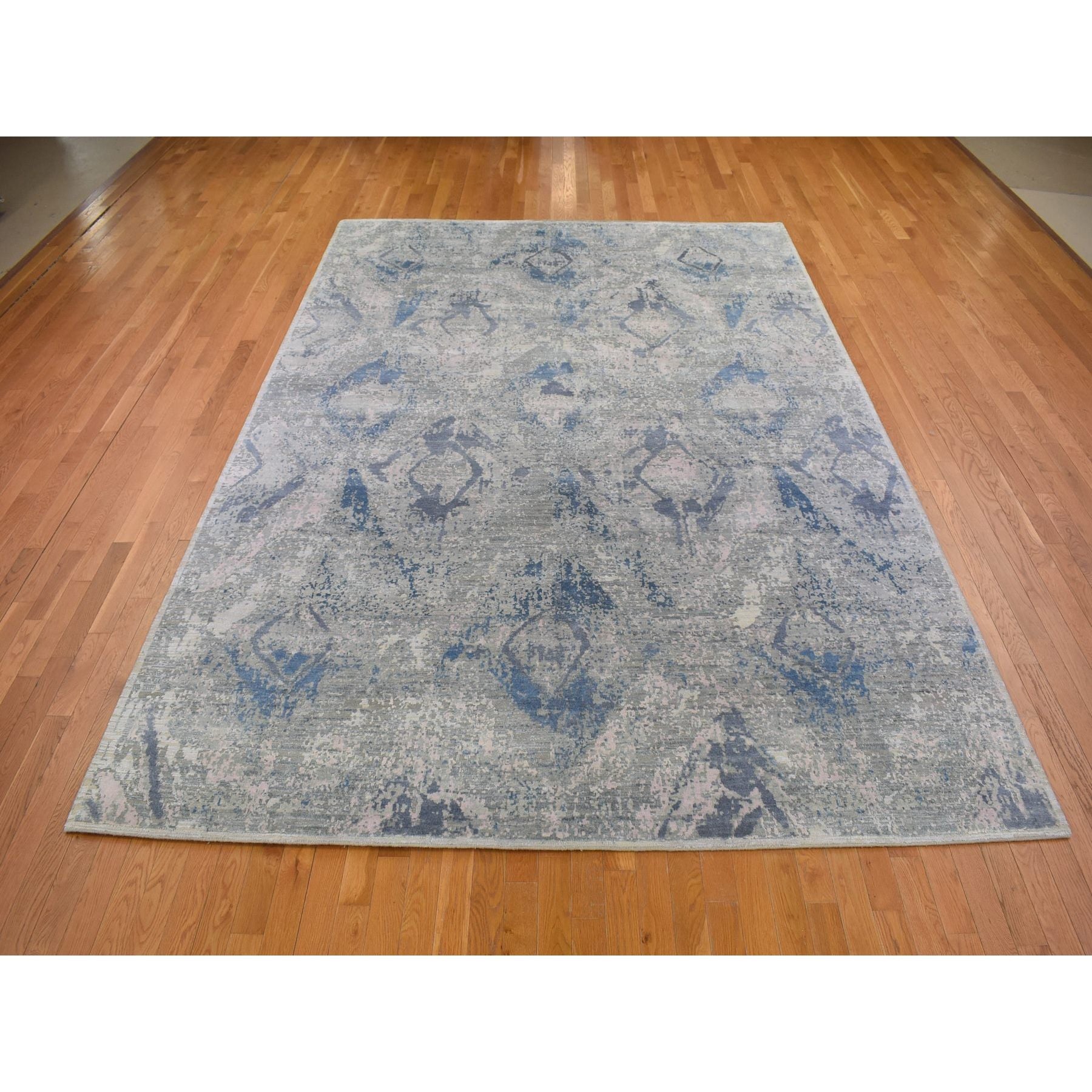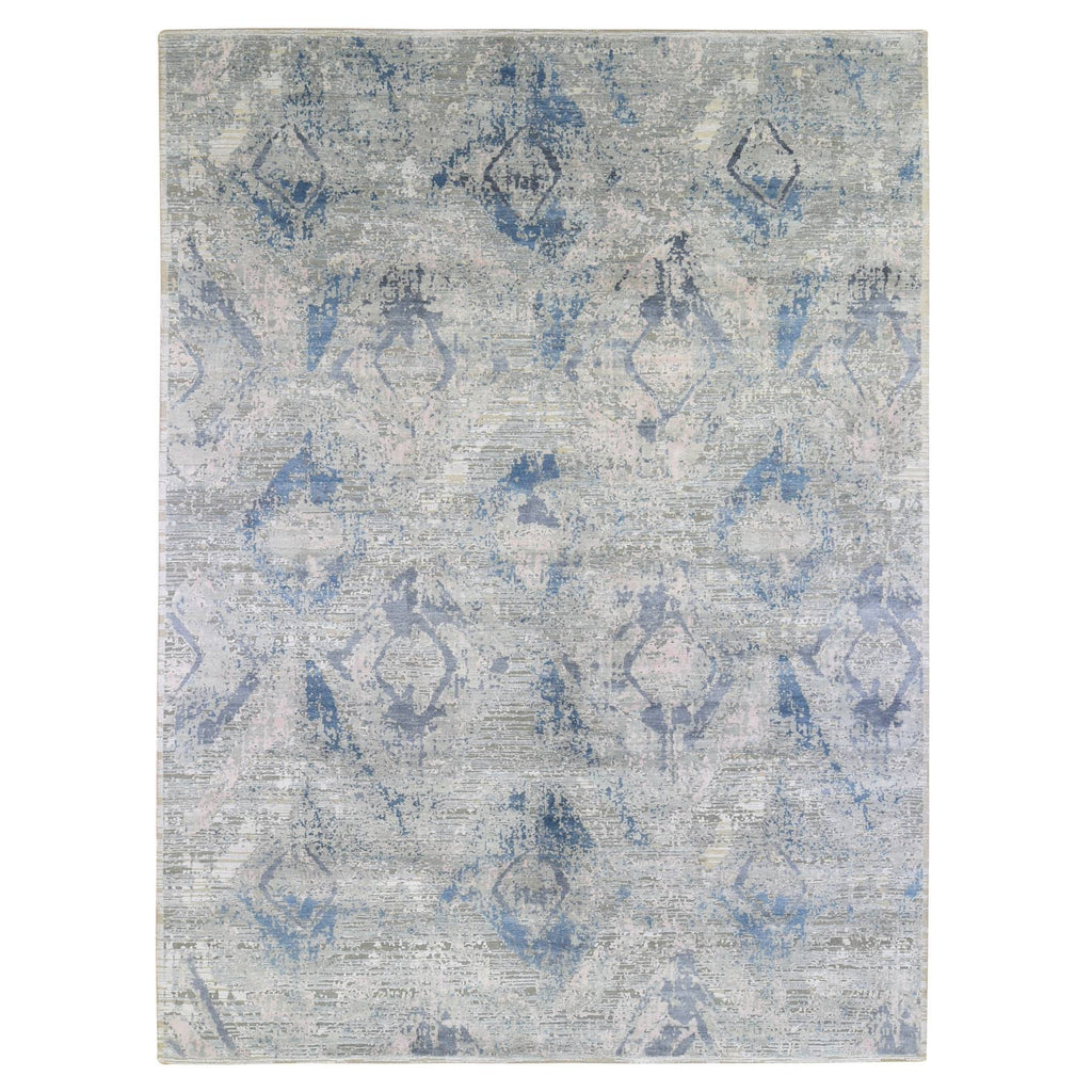 9'x12'1" Modern Hand Knotted Ivory Large Elements With Pastels Silk With Textured Wool Oriental Rug FWR401256