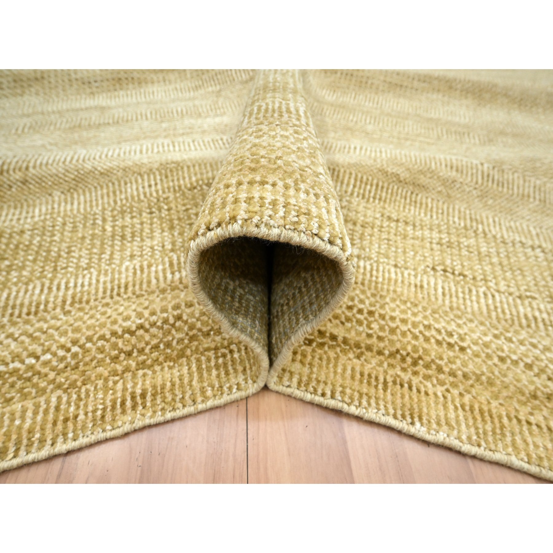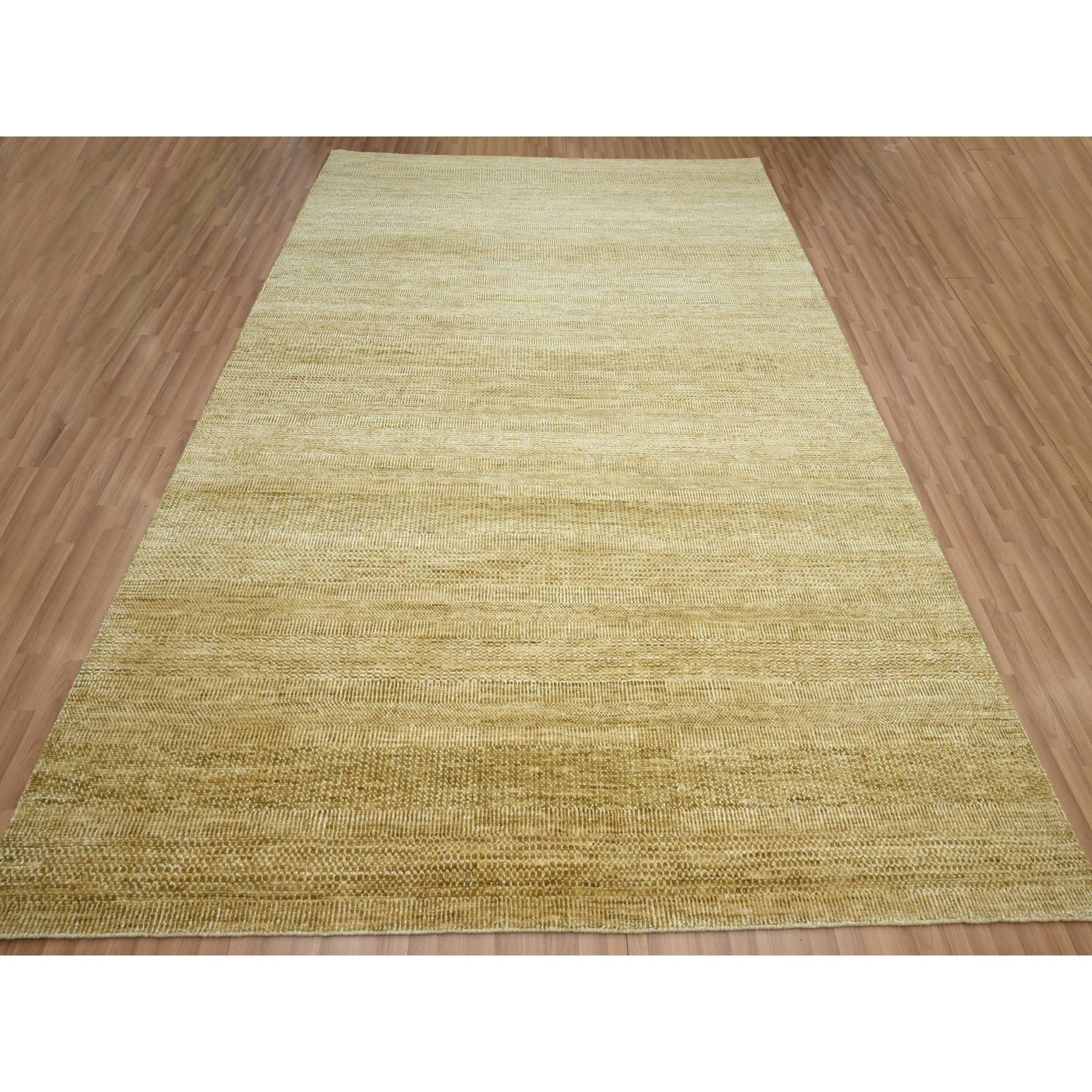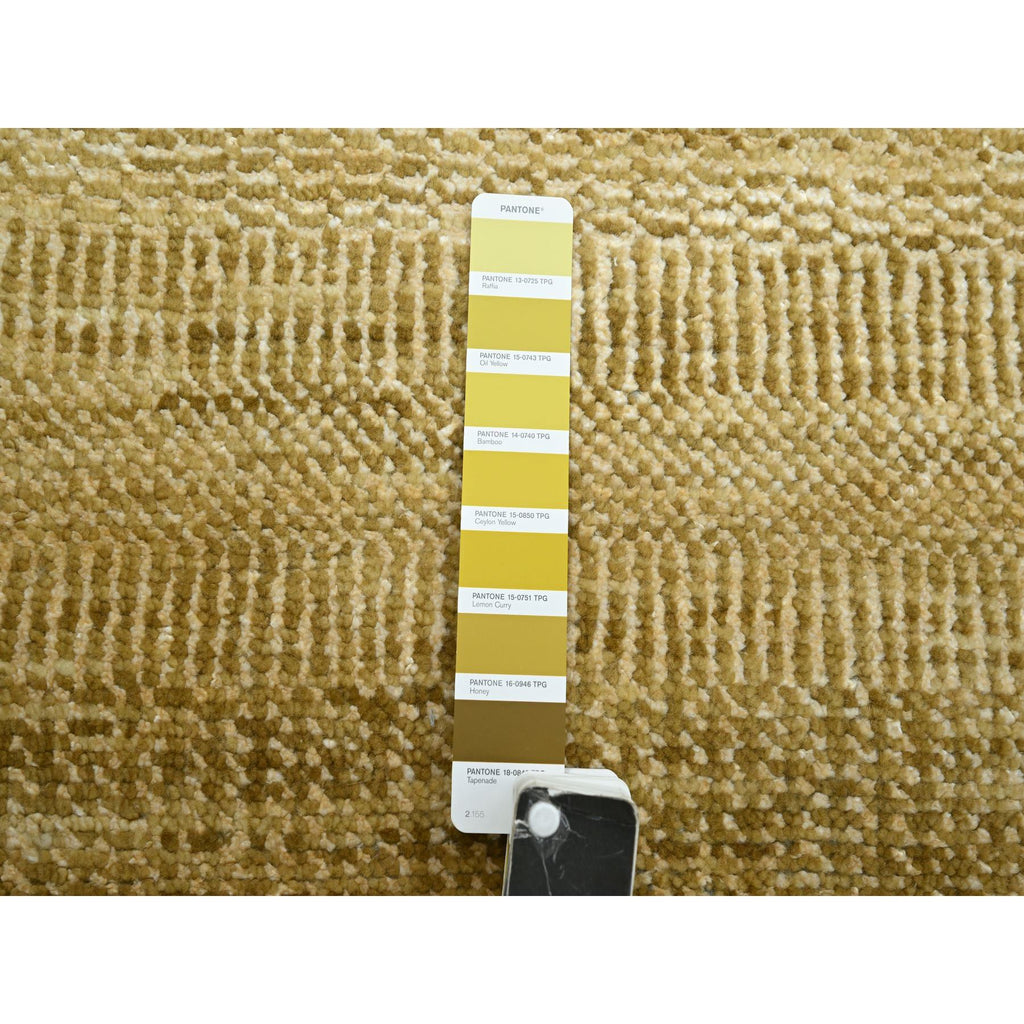 9'x12'1" Shades Of Brown, Wool And Silk, Hand Knotted, Modern Grass Design, Tone On Tone, Lush And Plush, Oriental Rug FWR499440