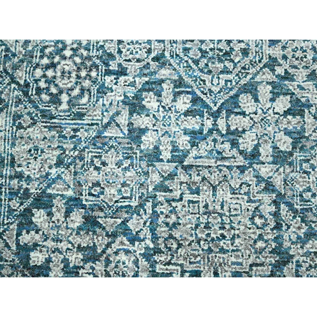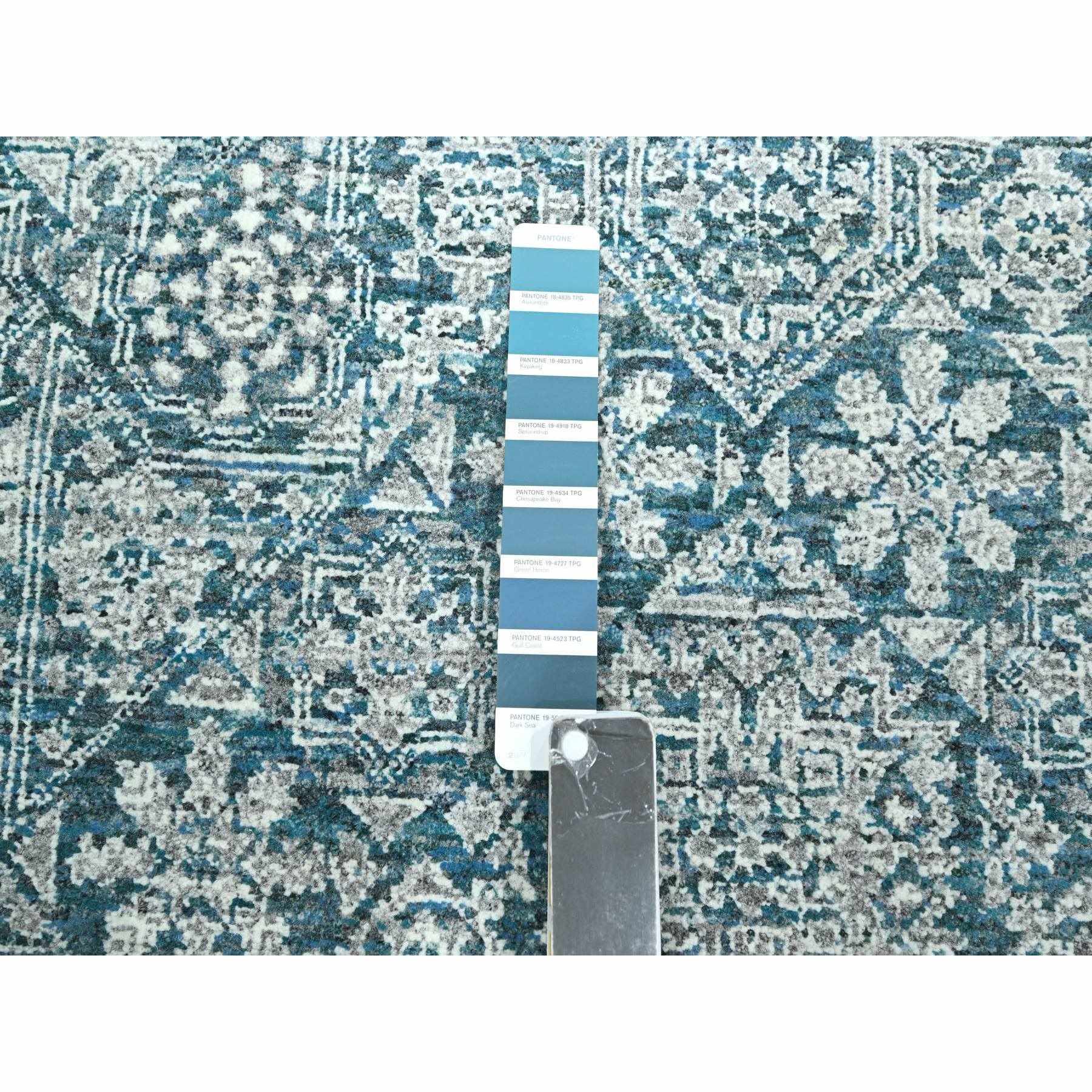 9'x12'1" Teal, Pre Historic 14th Century Influence Mamluk Design, Natural Dyes, Hand Knotted, Pure Wool, Oriental Rug FWR458520