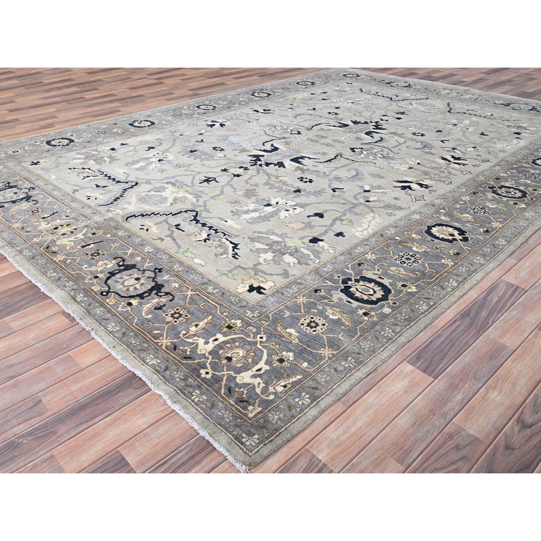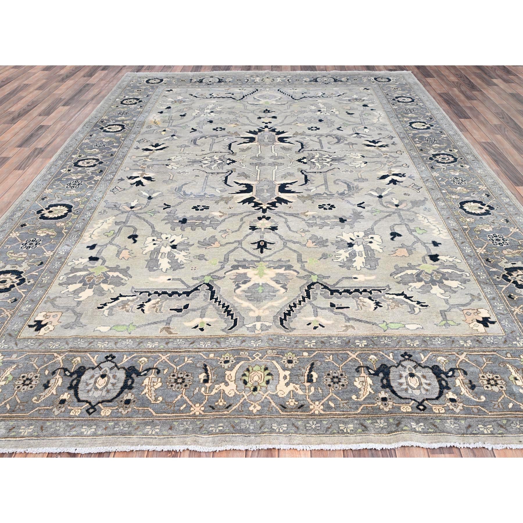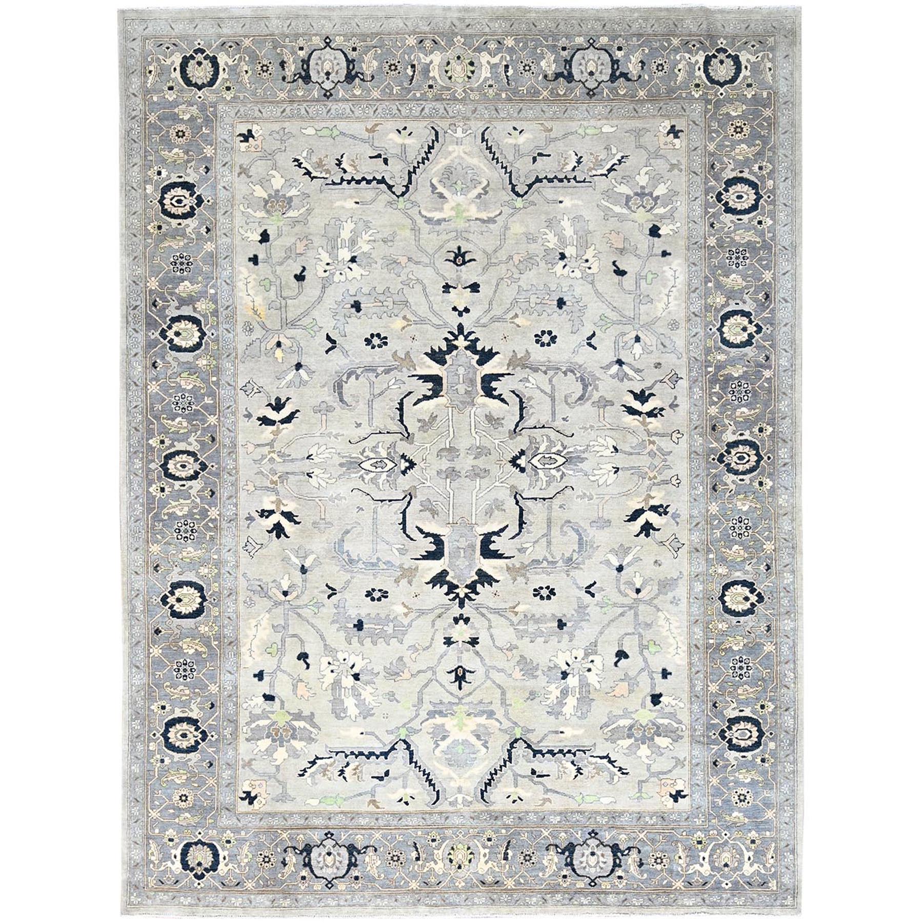 9'x12'2" Gainsboro Gray, Afghan Peshawar With Serapi Heriz Design, Vegetable Dyes, 100% Wool, Hand Knotted, Oriental Rug FWR513618