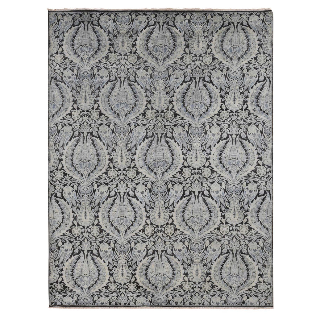 9'x12'2" Goose Gray, Pure Silk With Textured Wool, Tulip Flower Design, Hand Knotted, Oriental Rug FWR522432