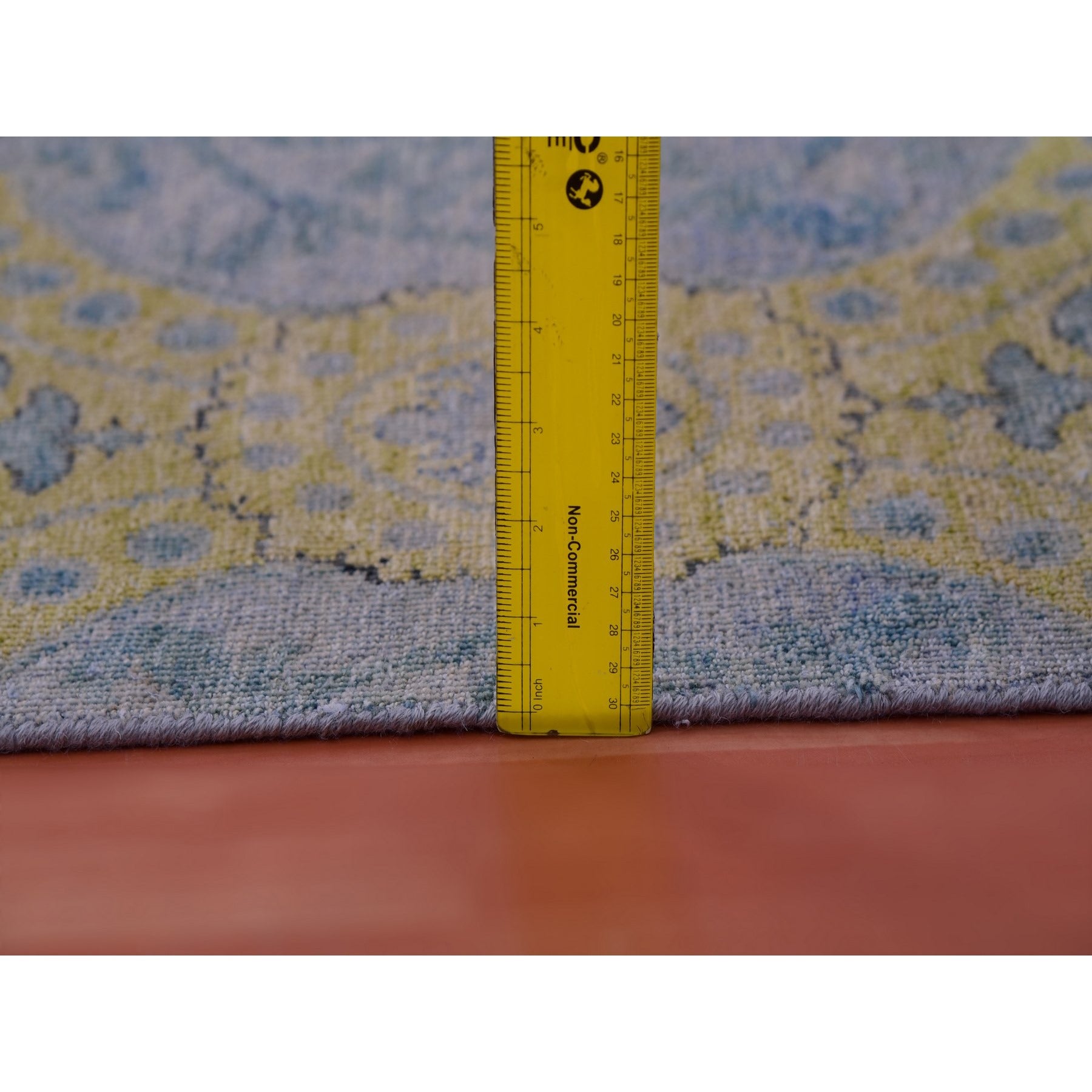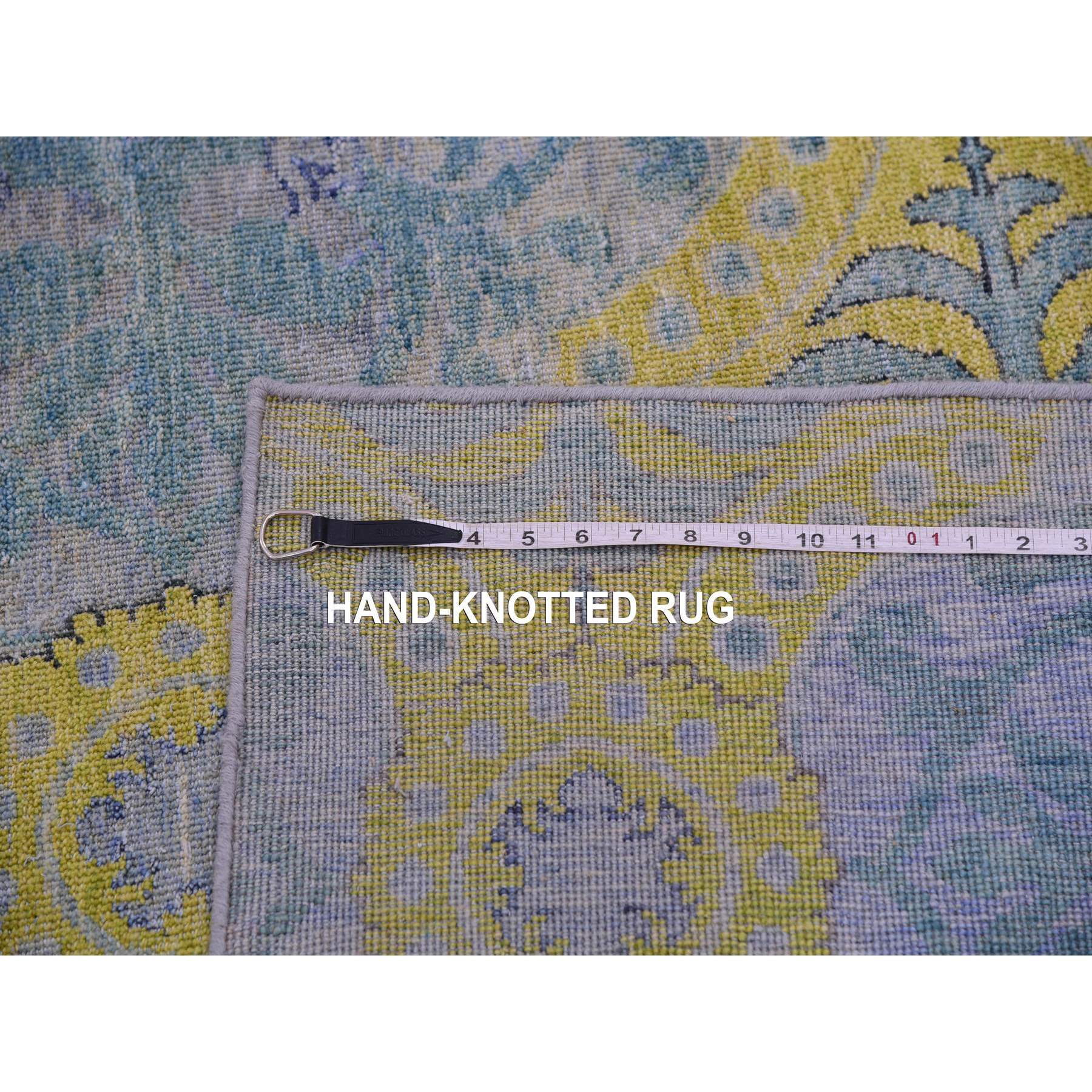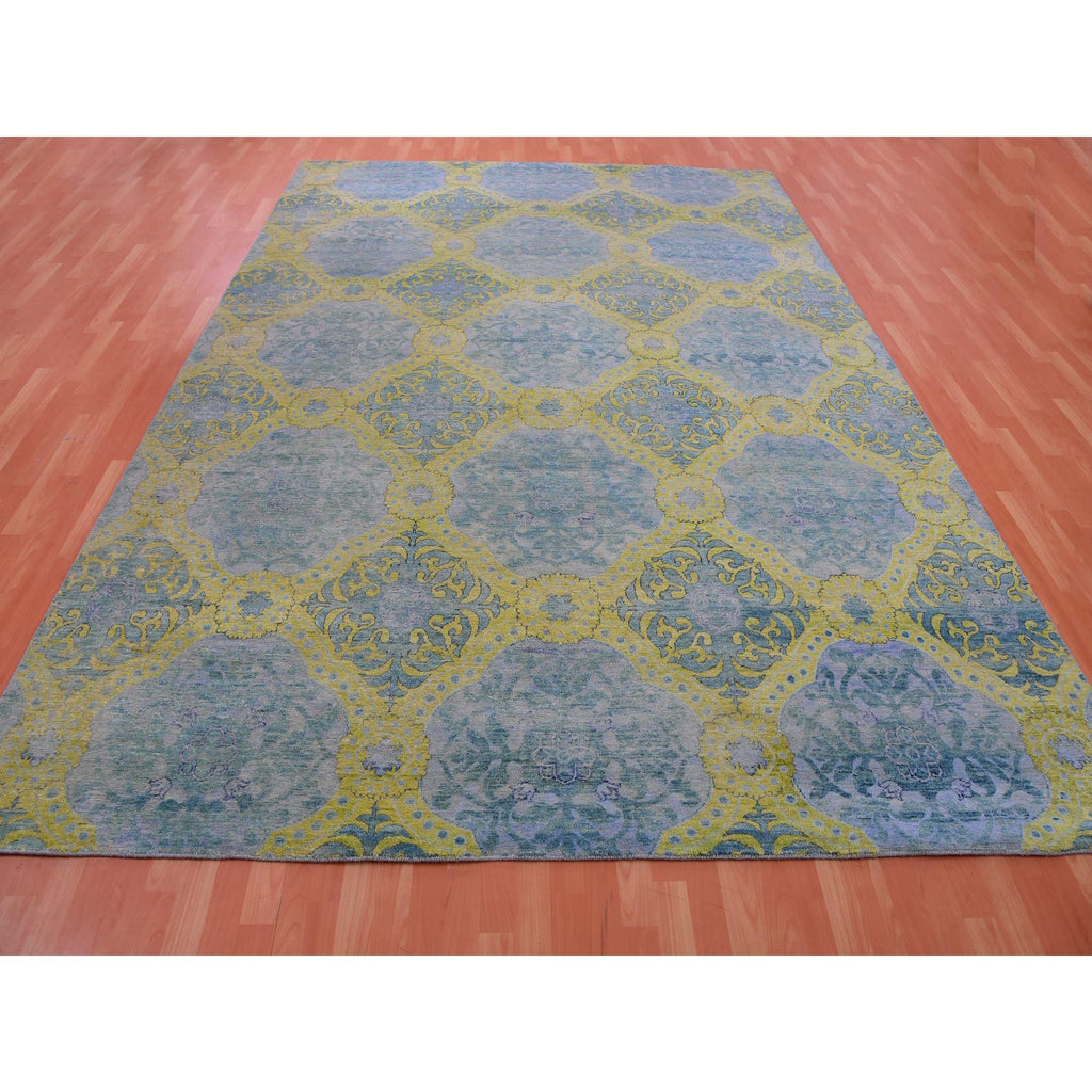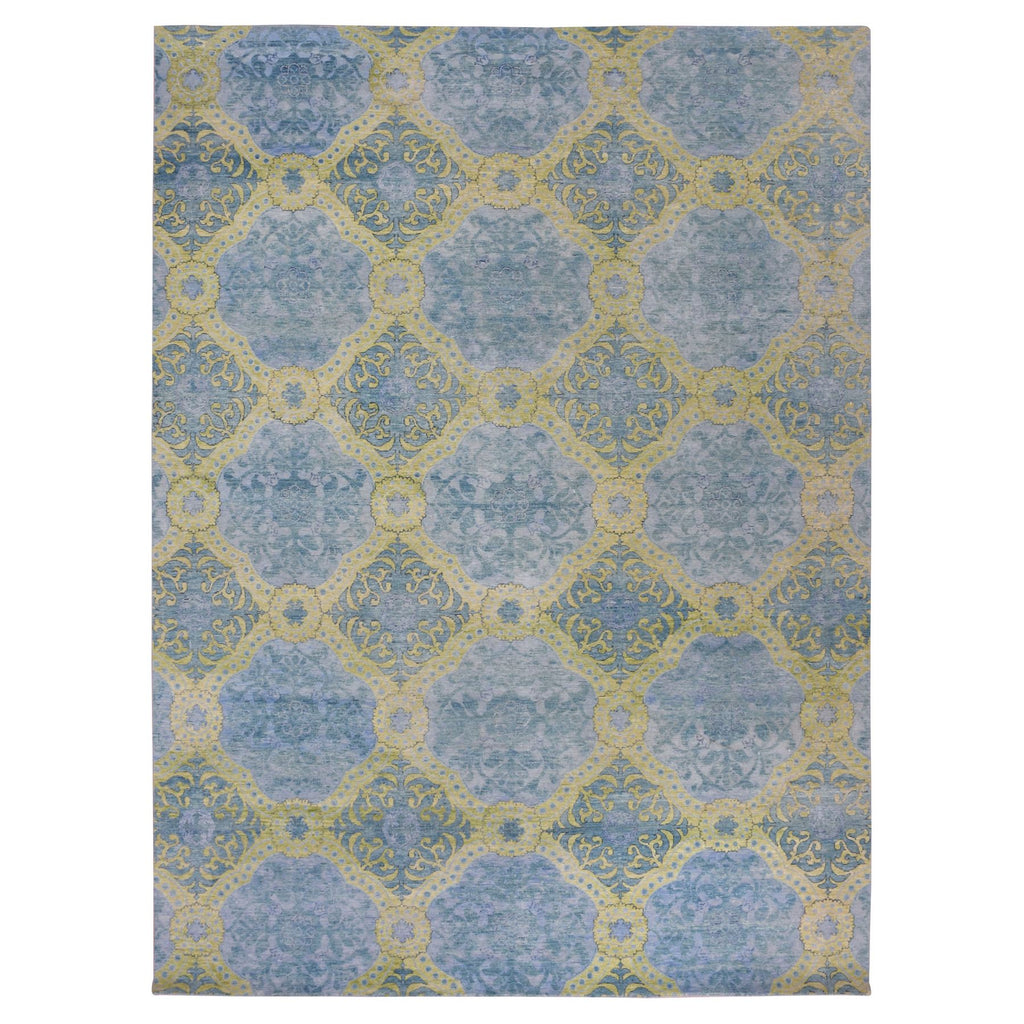 9'x12'2" Grotto Blue With Avocado Green, Trellis Neo Classic European Design With Flower Bouquet And Rosettes,100% Wool, Hand Knotted Oriental Rug FWR452460