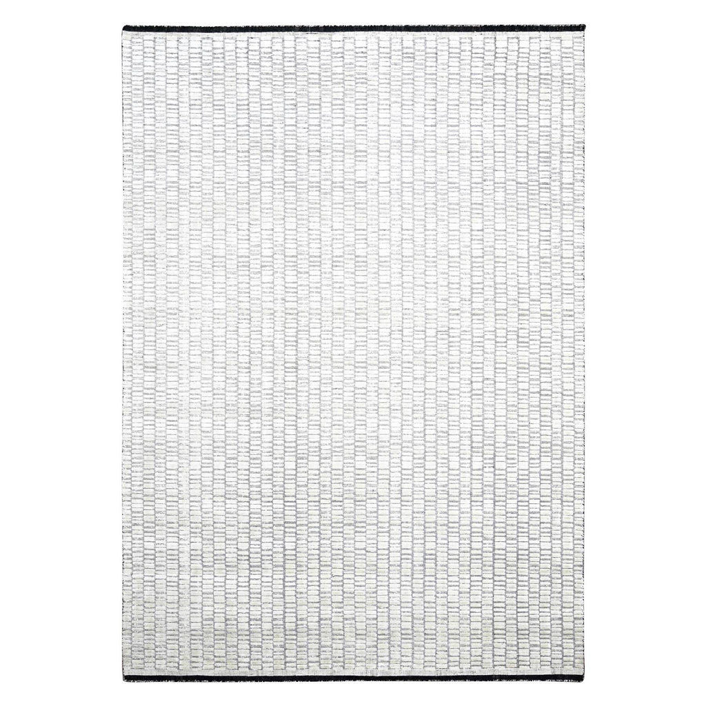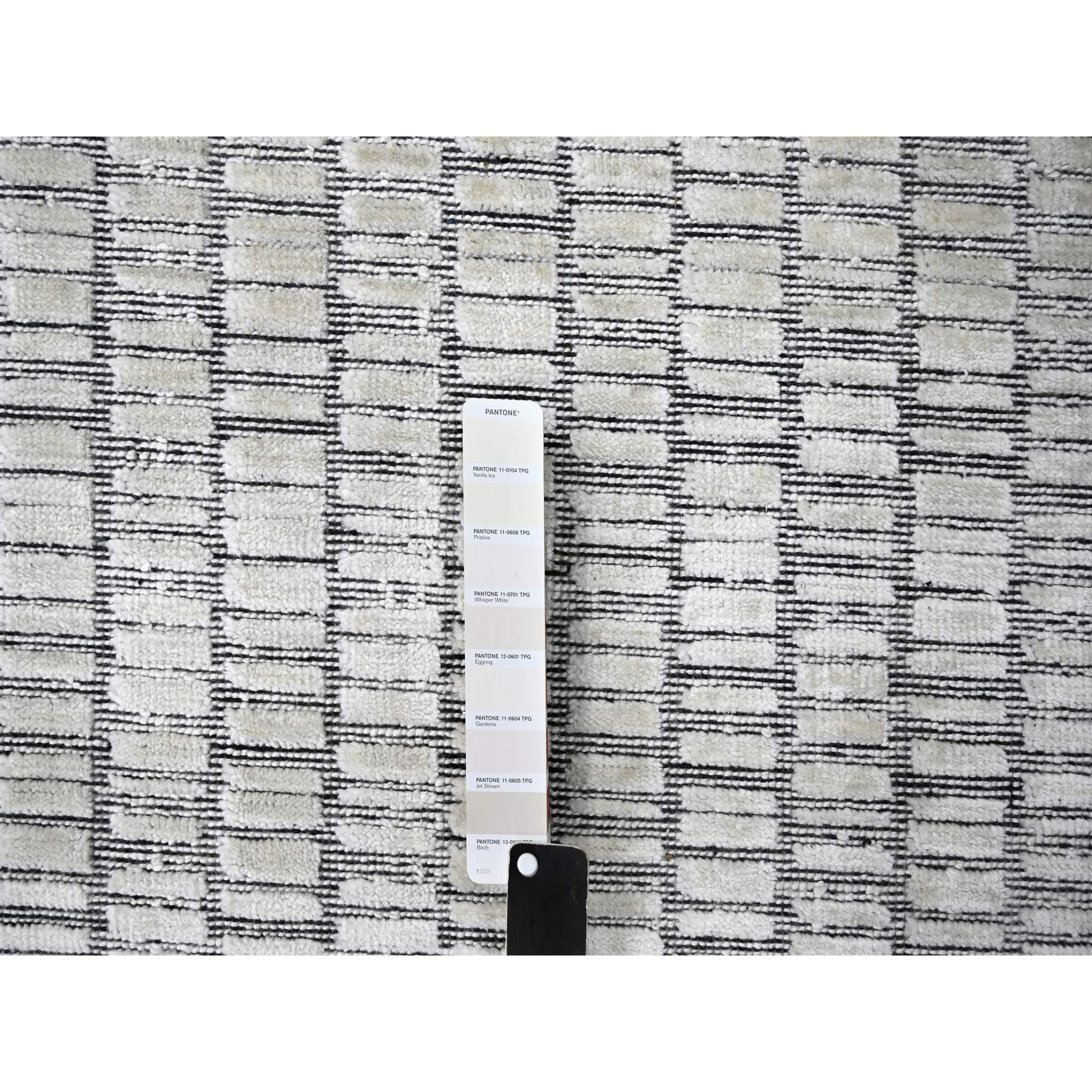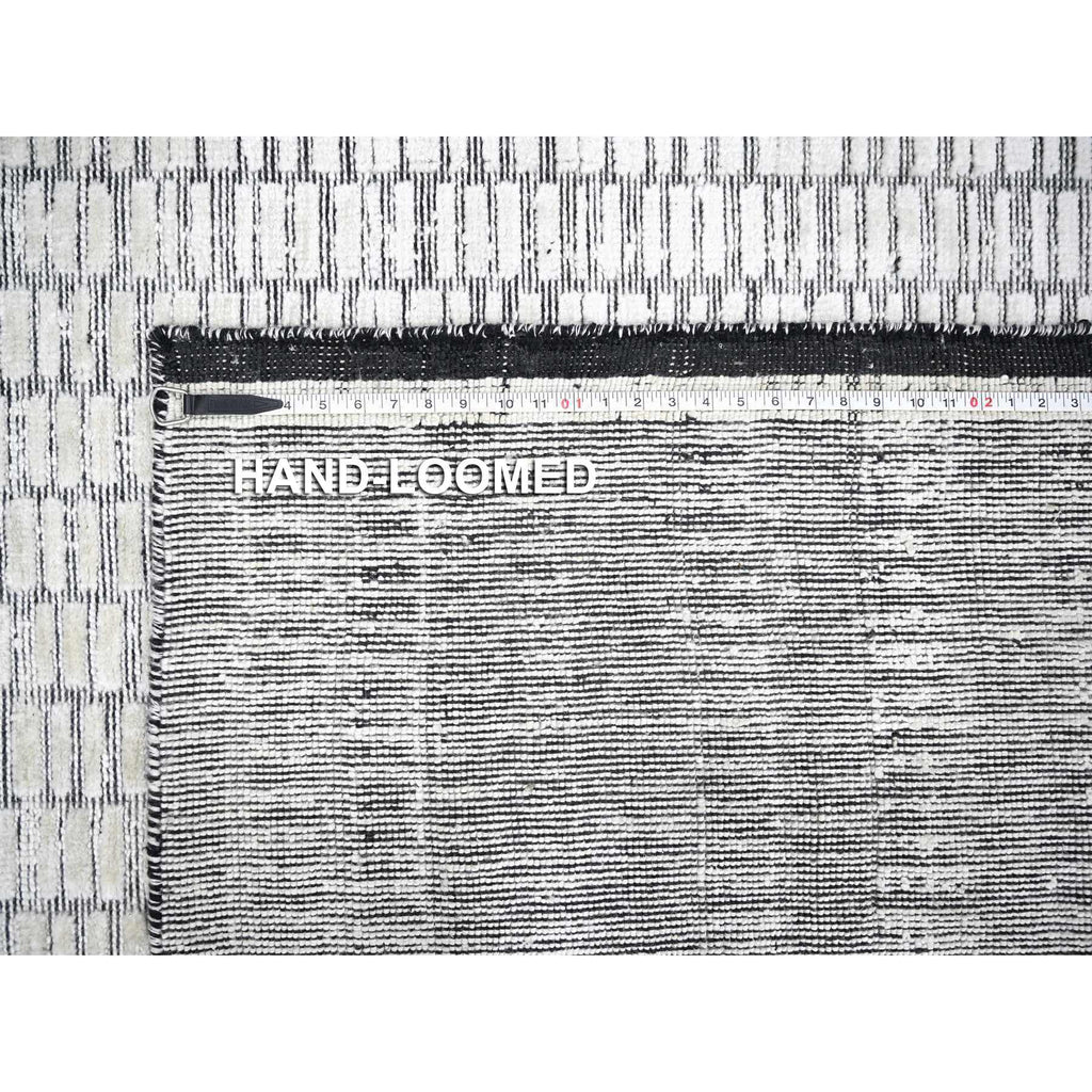 9'x12'2" Ivory And Black, Modern Textured And Roman Floor Design, Wool And Plant Based Silk, Hand Loomed, Oriental Rug FWR505350