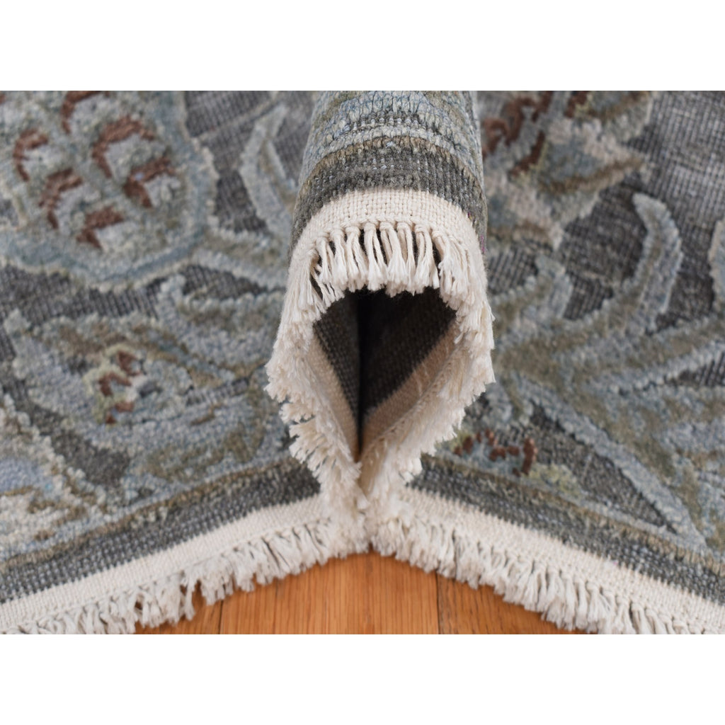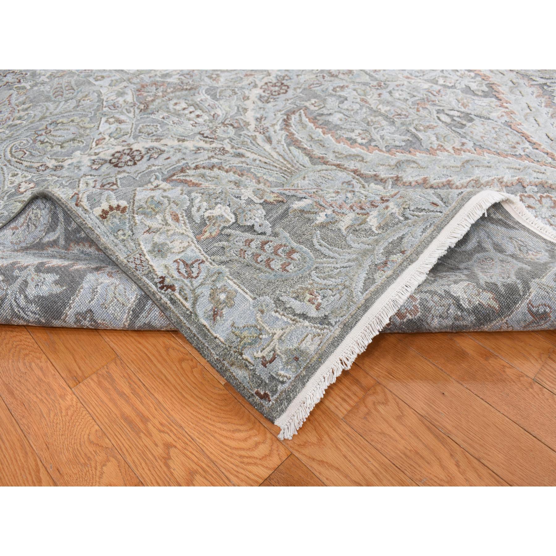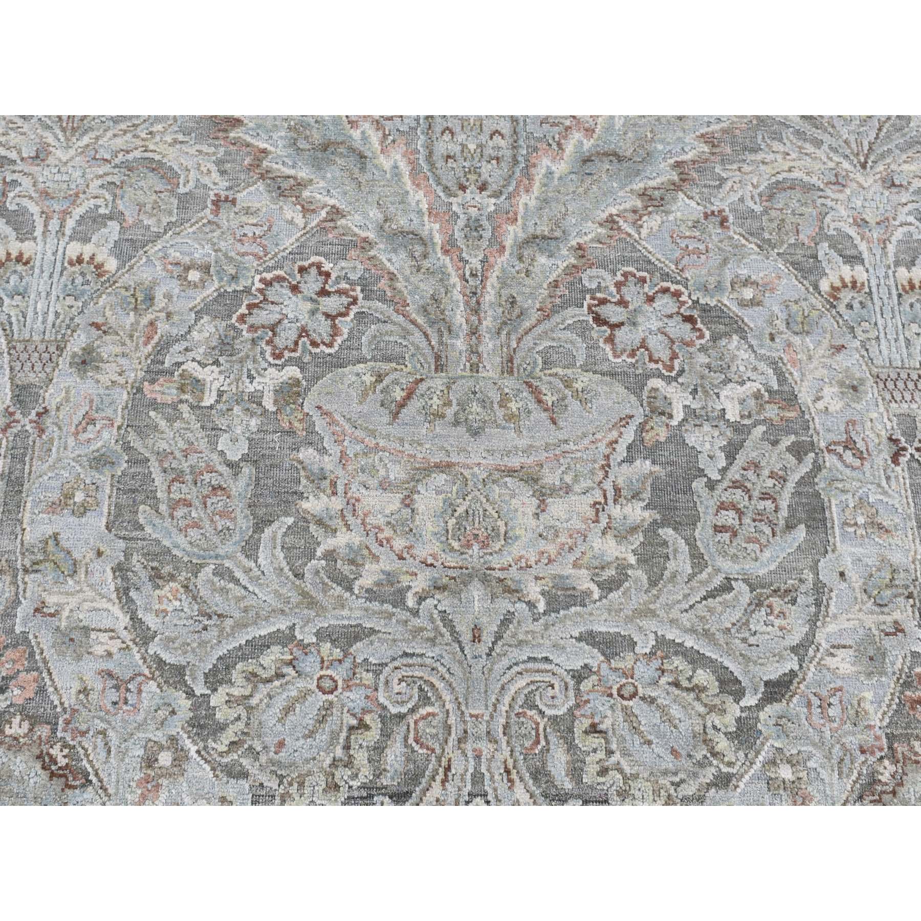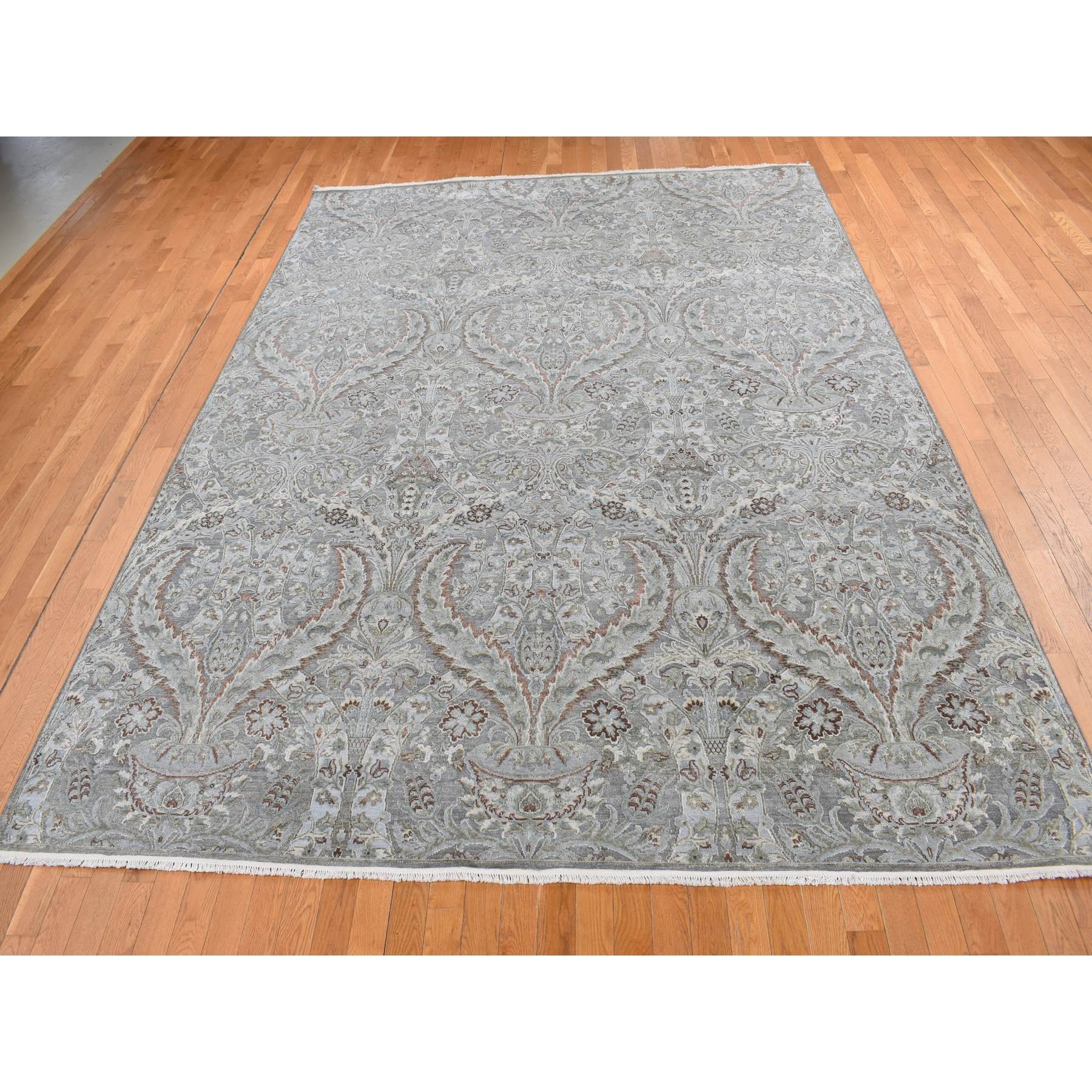 9'x12'2" Ultimate Gray, Pure Silk With Textured Wool, Wreath And Urns Design, Hand Knotted, Oriental Rug FWR522438