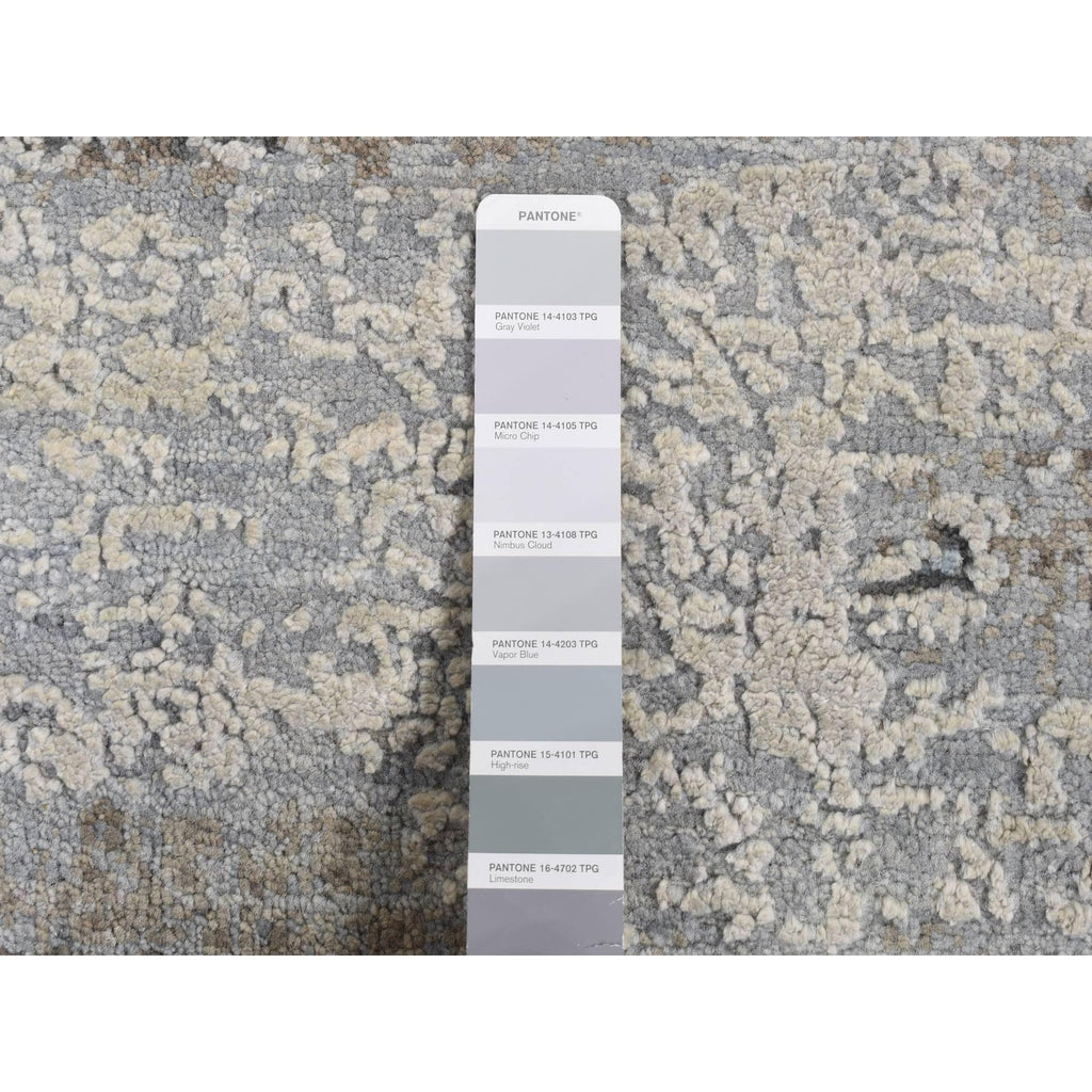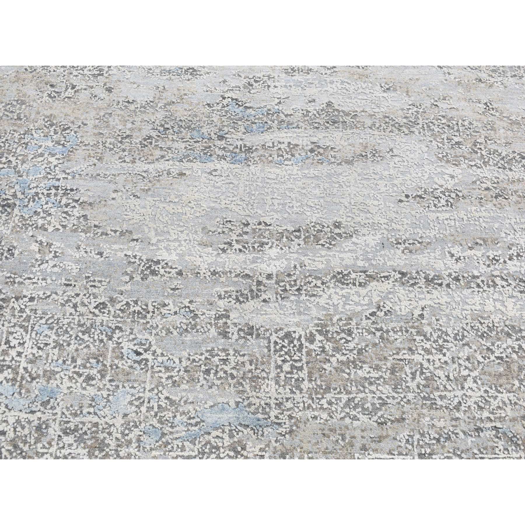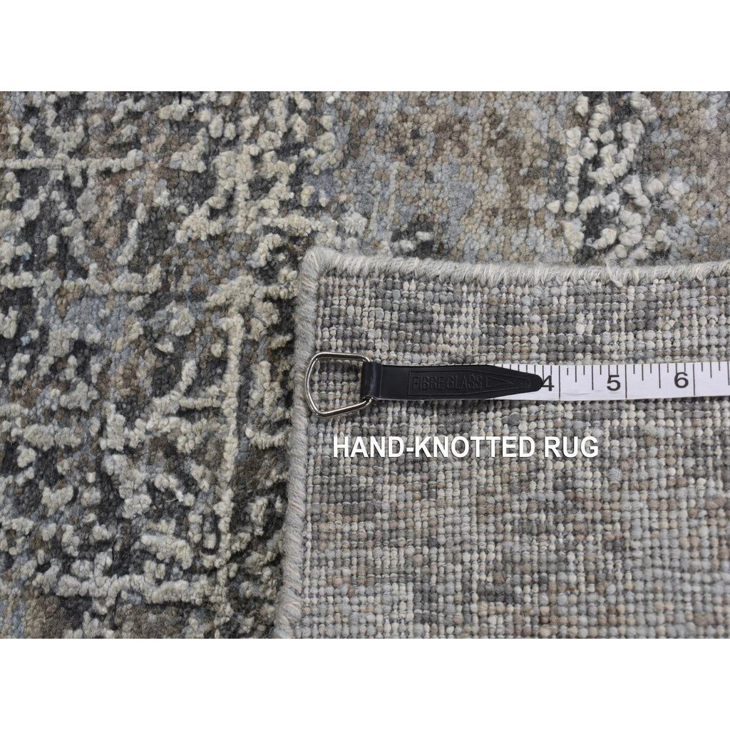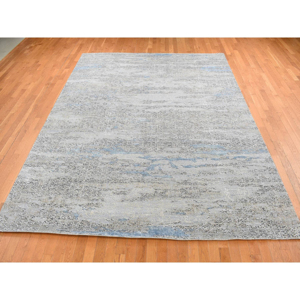9'x12'3" Cadet Gray, Wool With Real Silk, Broken And Erased Intricate Contemporary Design, Hand Knotted, Oriental Rug FWR526218