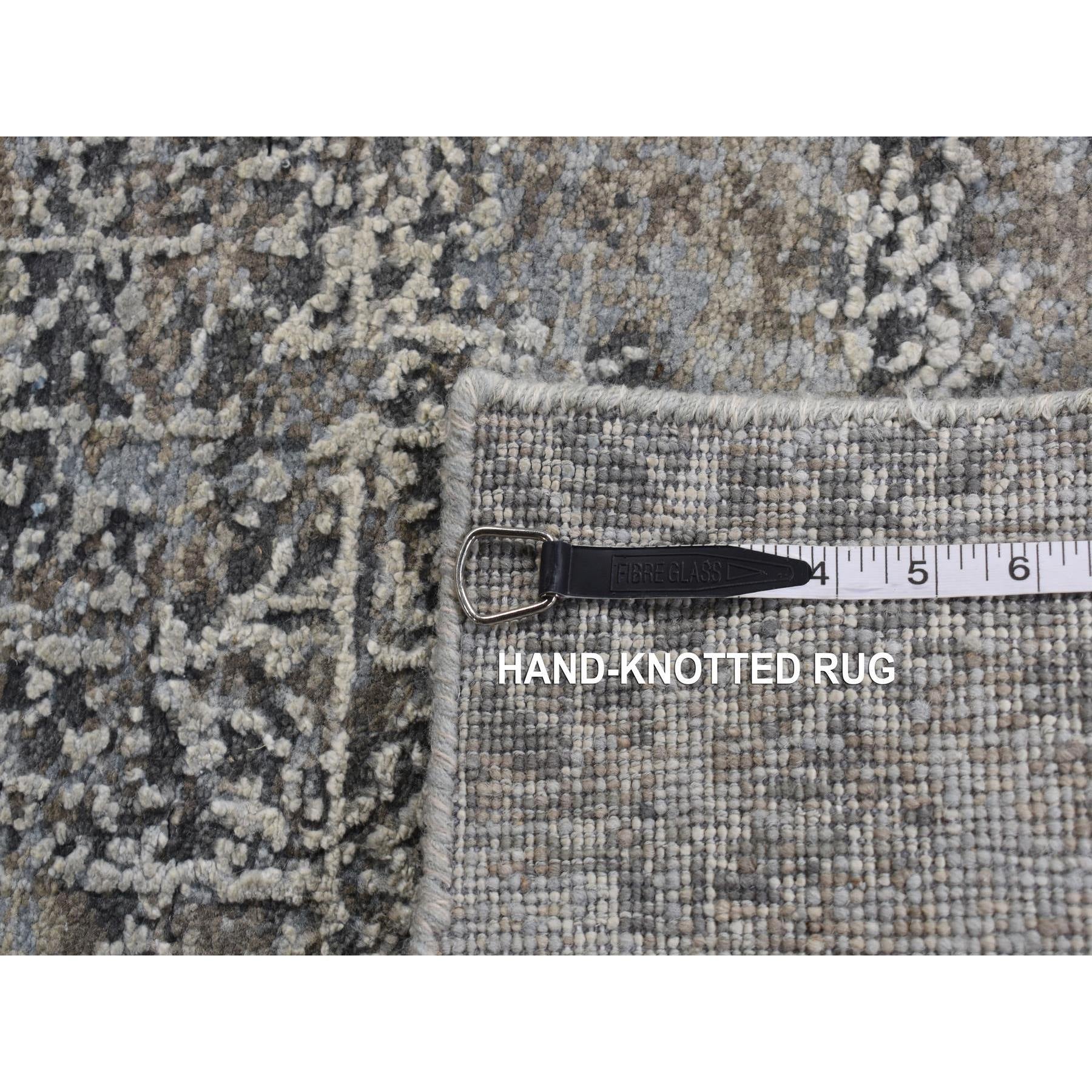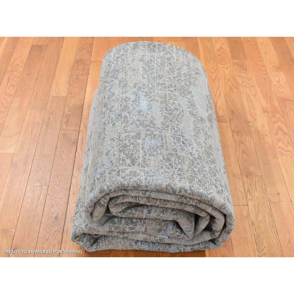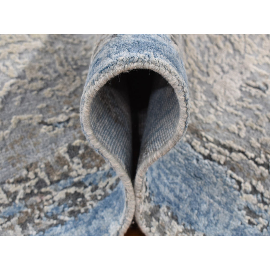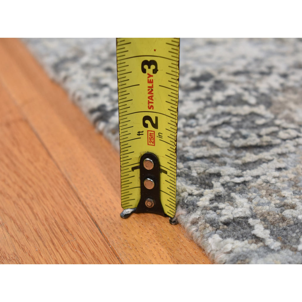 9'x12'3" Cadet Gray, Wool With Real Silk, Broken And Erased Intricate Contemporary Design, Hand Knotted, Oriental Rug FWR526218