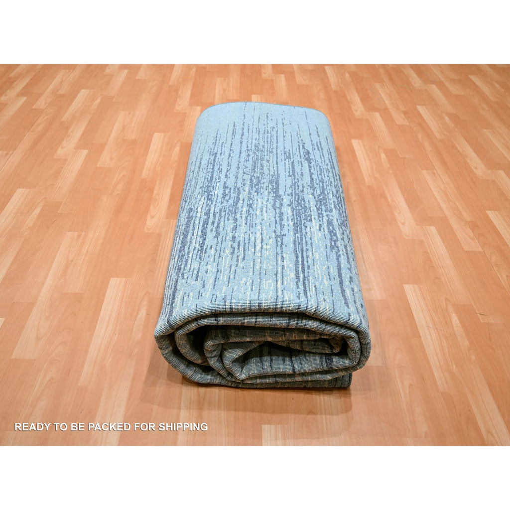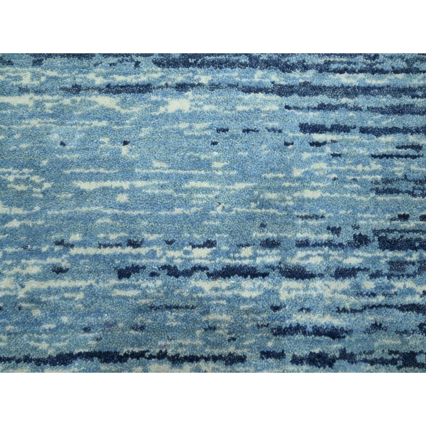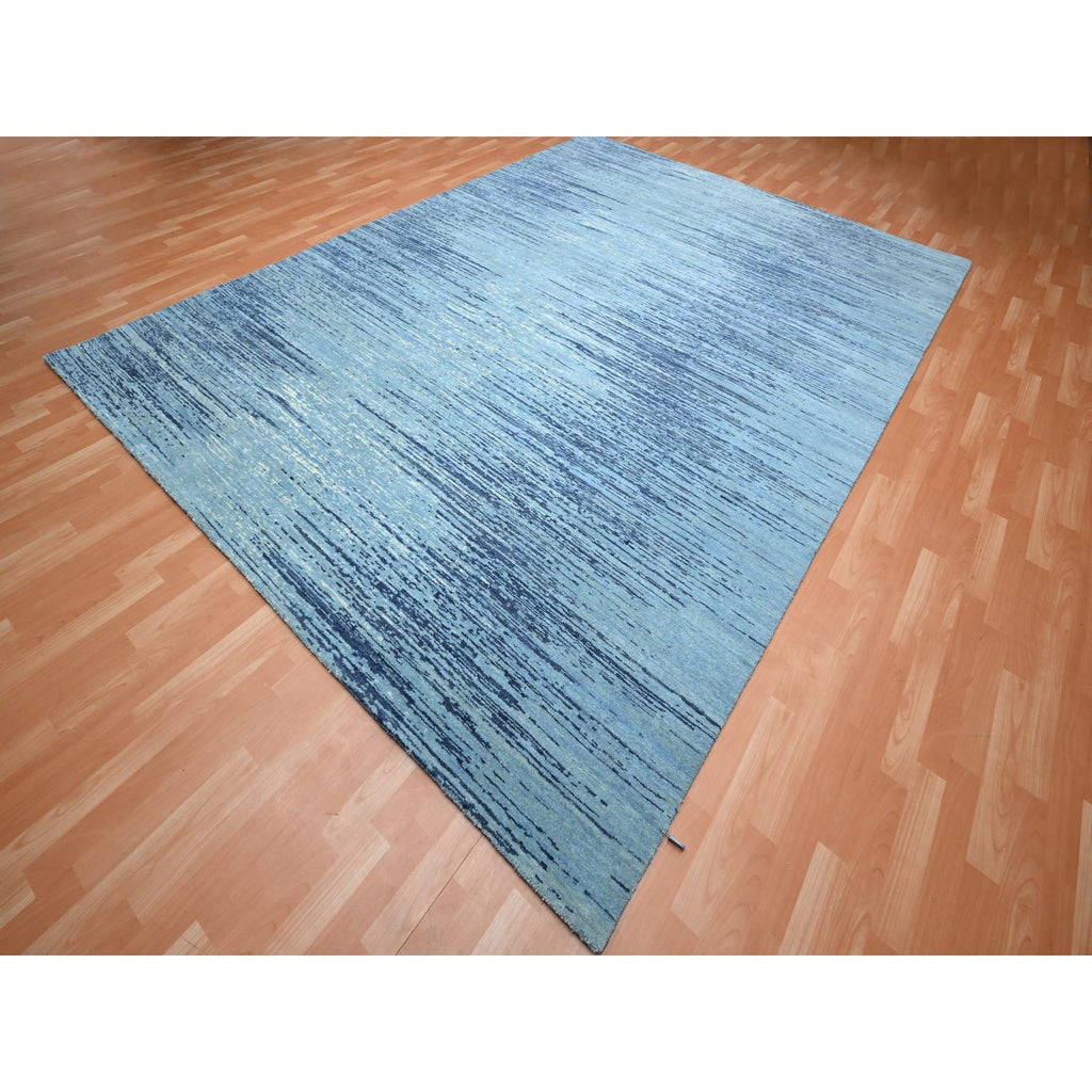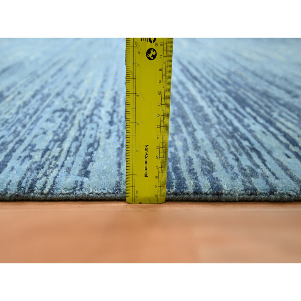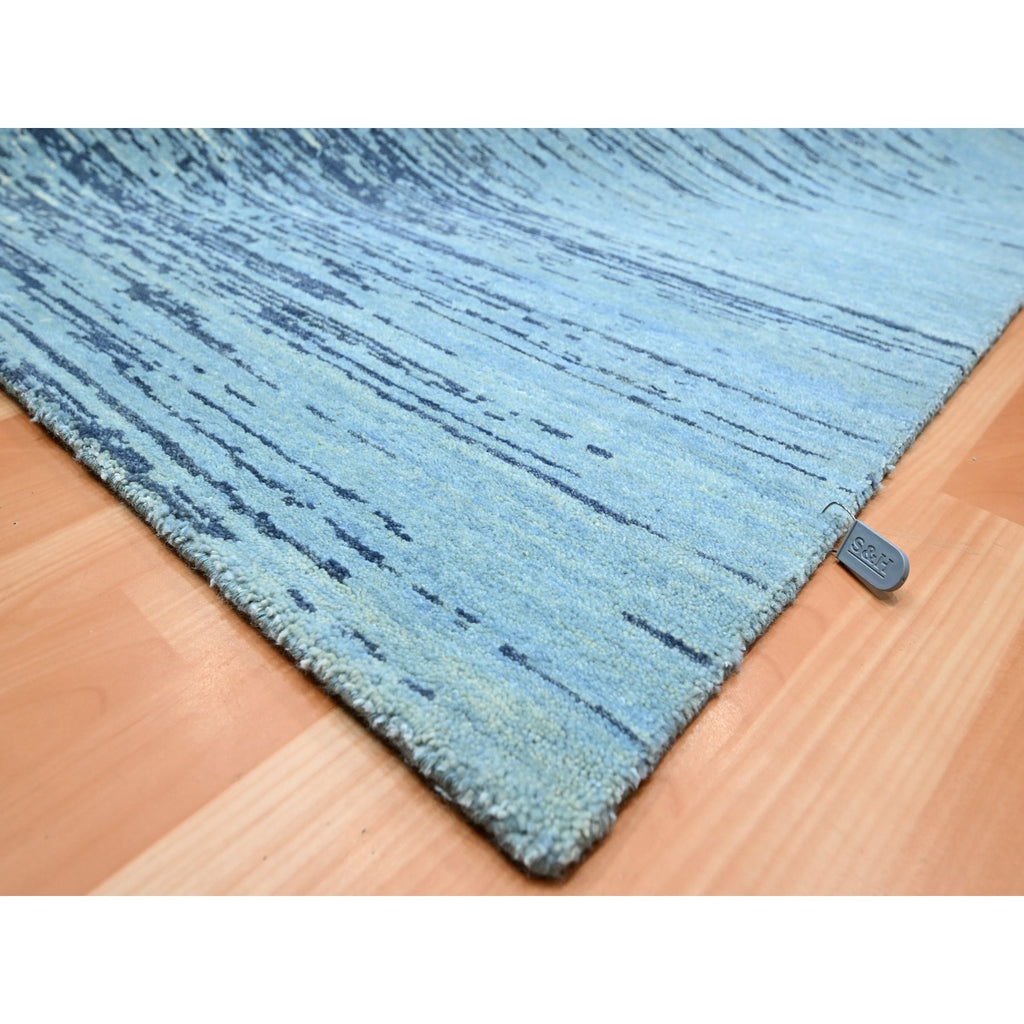9'x12'3" Cerulean Blue, Pure Wool, Horizontal Ombre Design, Densely Woven, Hand Knotted, Oriental Rug FWR453108