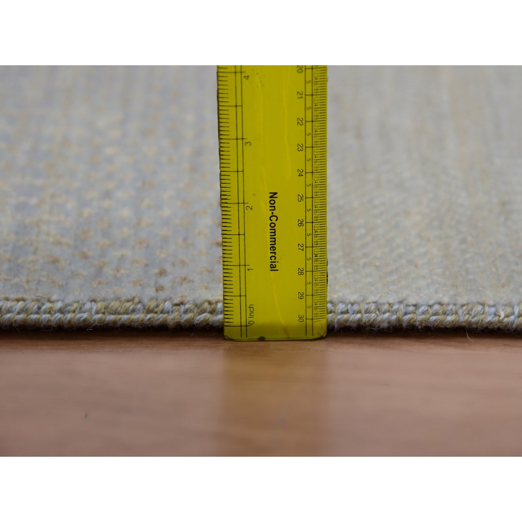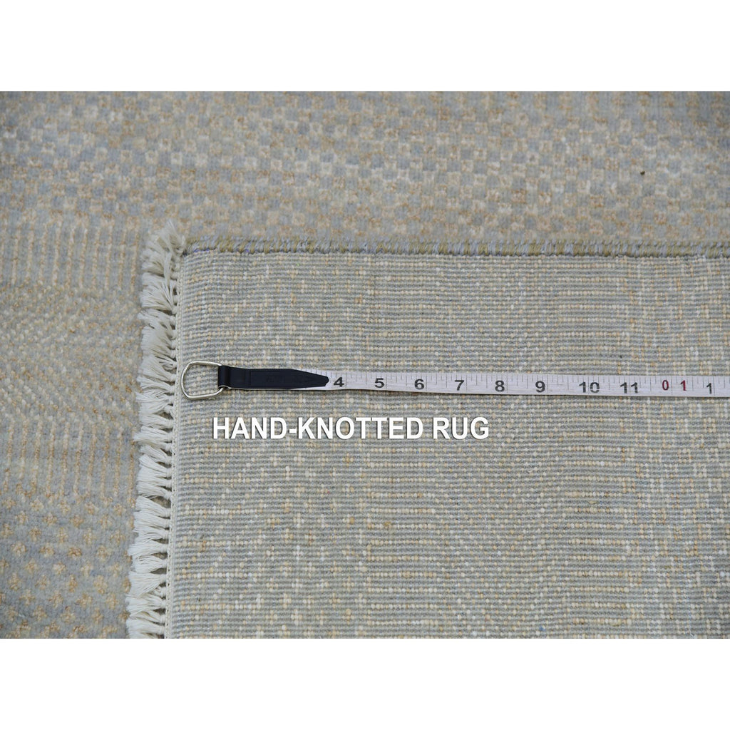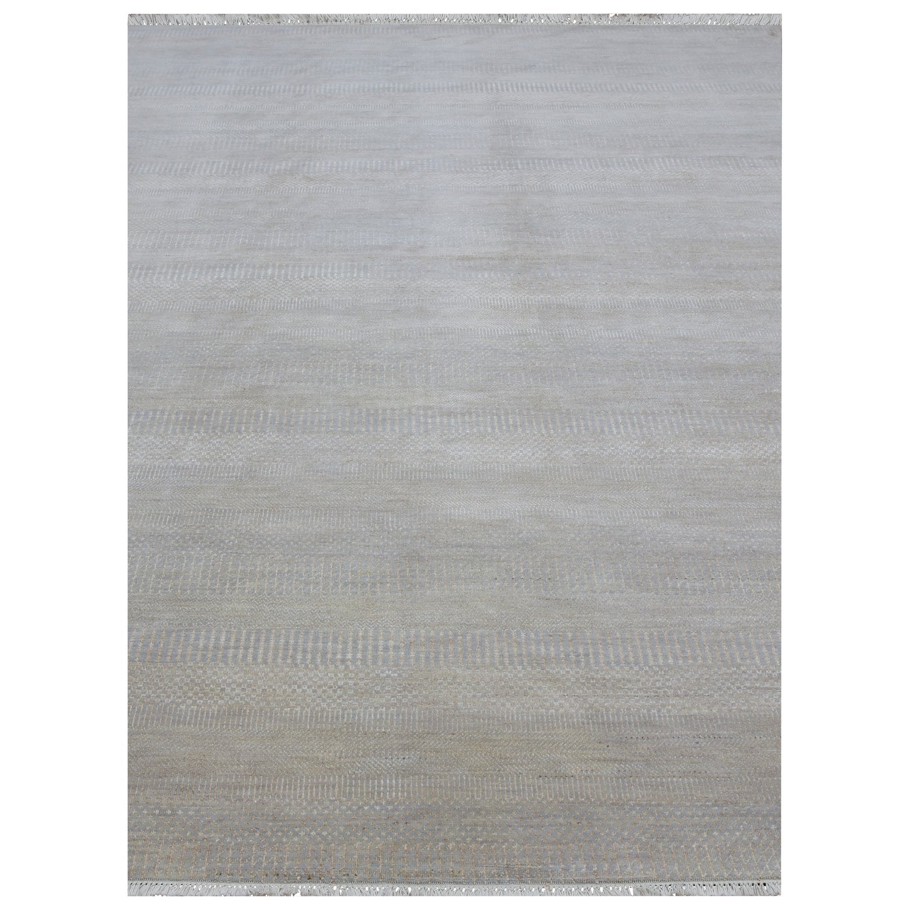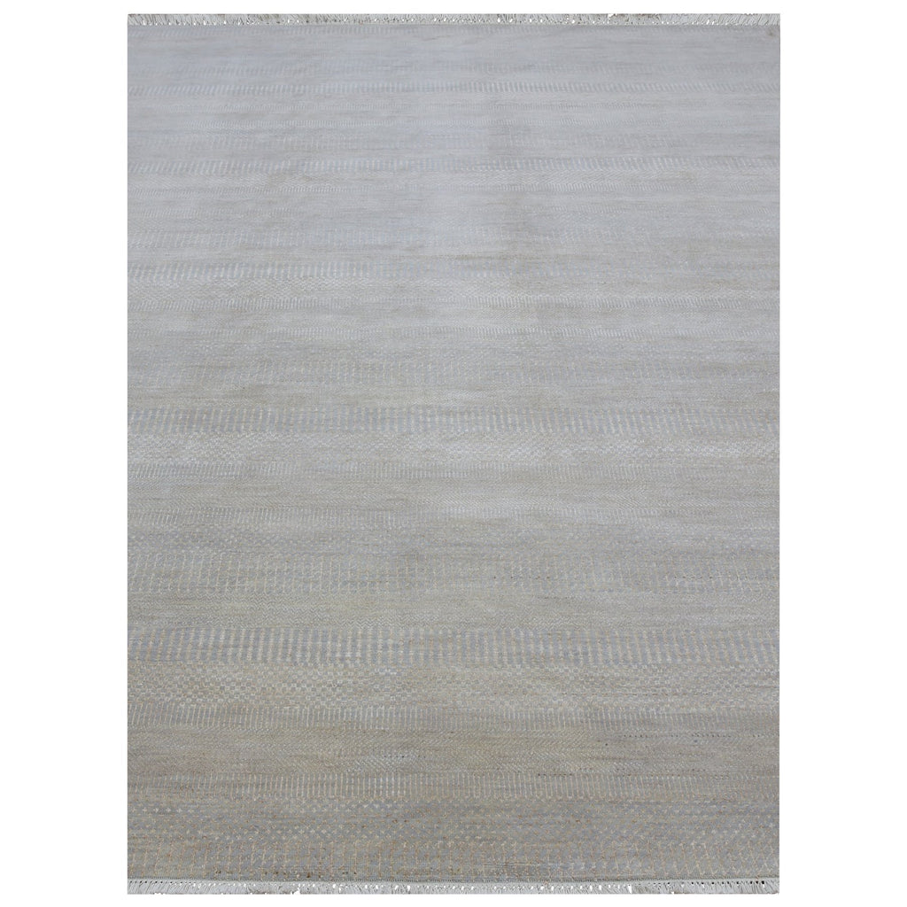 9'x12'3" Cloudy Gray, Hand Knotted Grass Design, Tone On Tone Pure Wool, Densely Woven Oriental Rug FWR498618