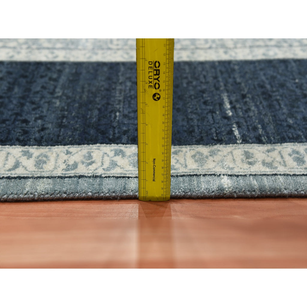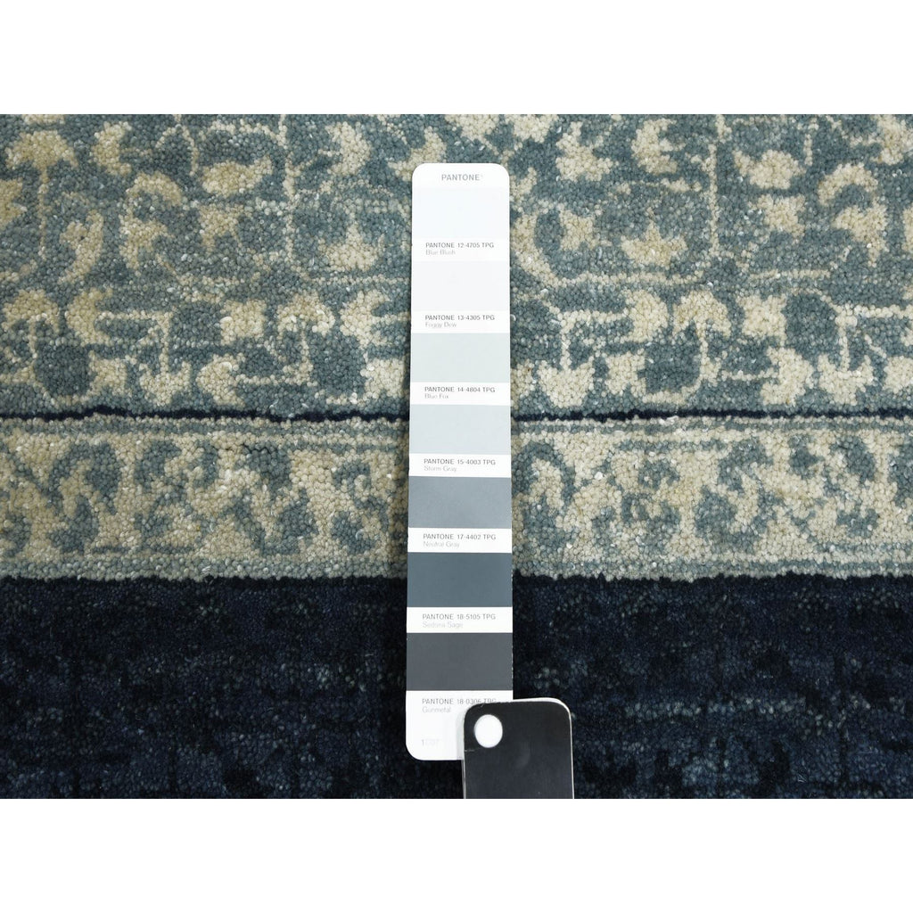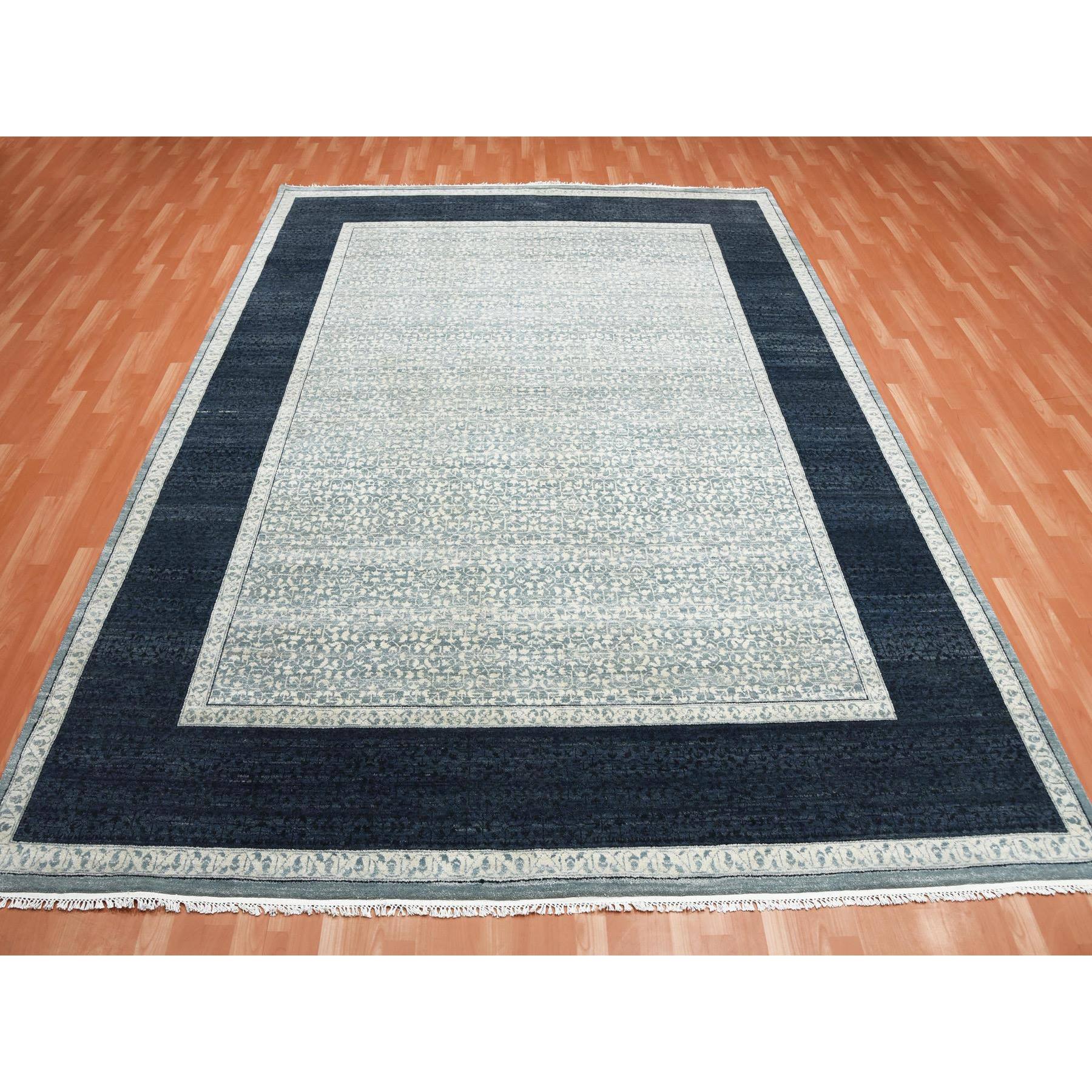 9'x12'3" Shades Of Blue, Leaf All Over Pattern With A Distinct Contrasting Border Colors, Tone On Tone, Pure Wool Hand Knotted, Oriental Rug FWR451518