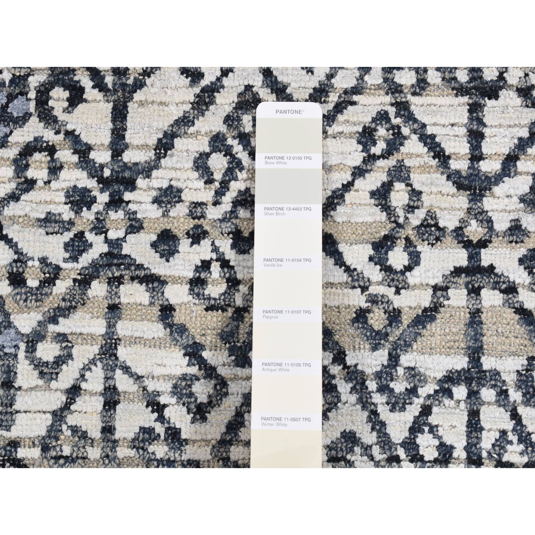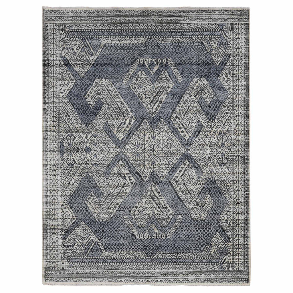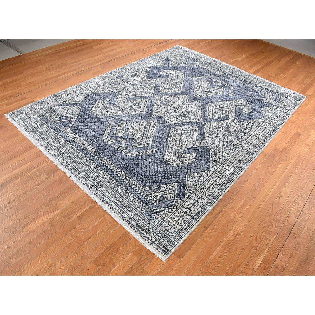 9'x12'3" Vista White, Hand Knotted, Tone On Tone, Pure Silk And Textured Pile, Small Repetitive Design Within A Larger Scale Geometric Motif, Oriental Rug FWR522474