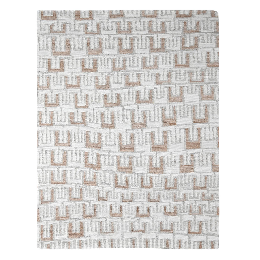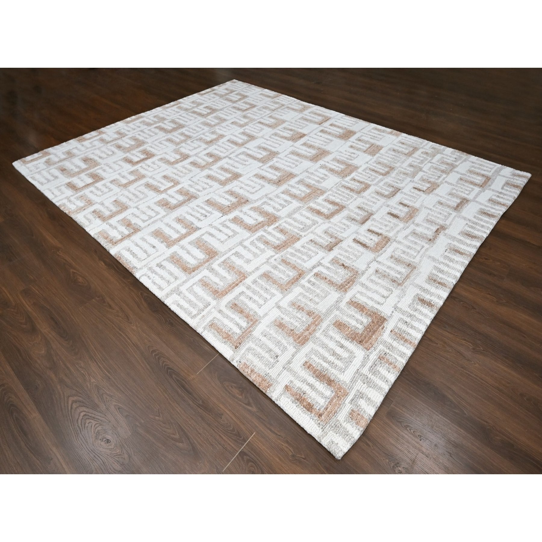9'x12'4" Swan White, Natural Wool, Minimalist Swedish Design, Hand Knotted, Oriental Rug FWR61998