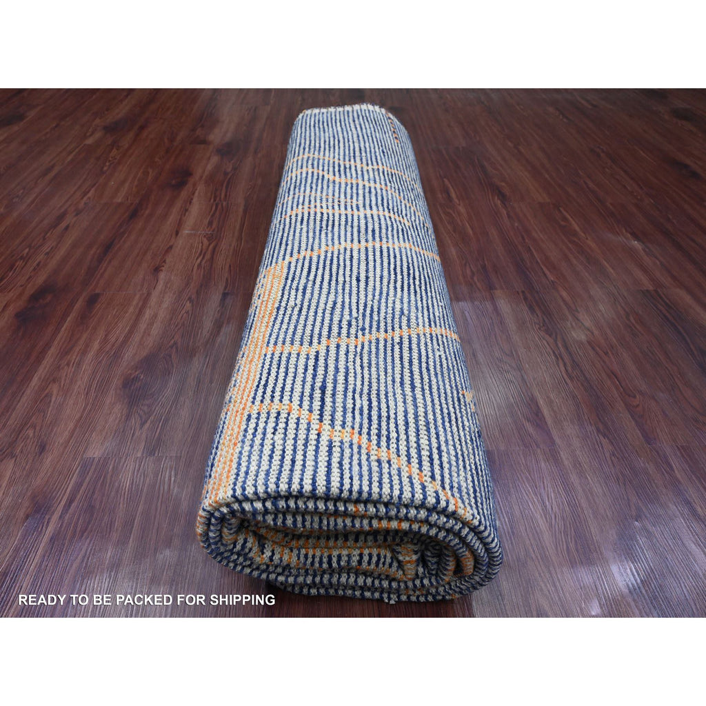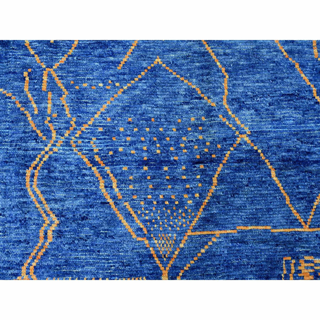 9'x12'5" Cobalt Blue, Moroccan Weave, Arts And Crafts Design With Tassels, Tone On Tone, Hand Knotted, Soft Wool, Textured Pile, Oriental Rug FWR122508