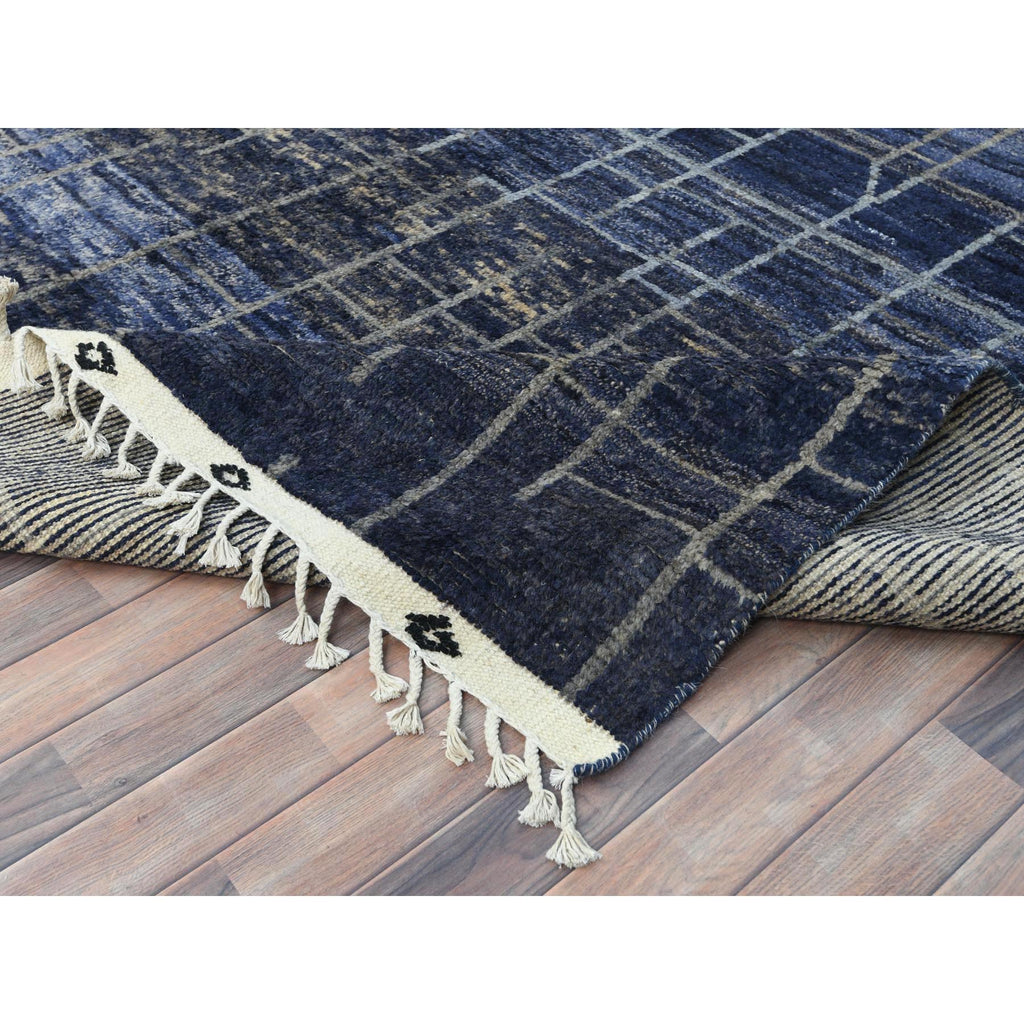 9'x12'5" Denim Blue, Hand Knotted Ben Ourain Moroccan Berber Influence Shilhah Design, Natural Dyes Extra Soft Wool, Oriental Rug FWR497790