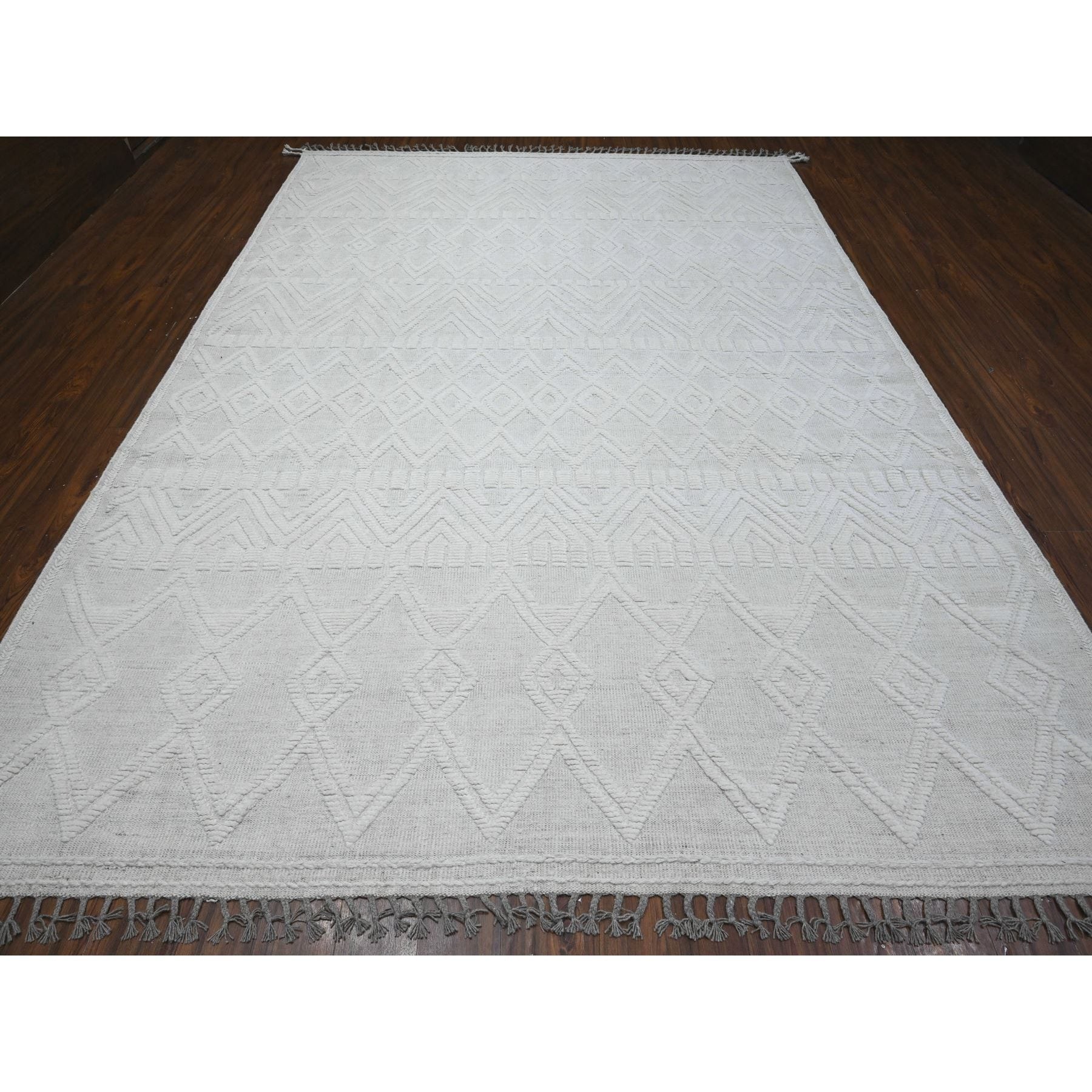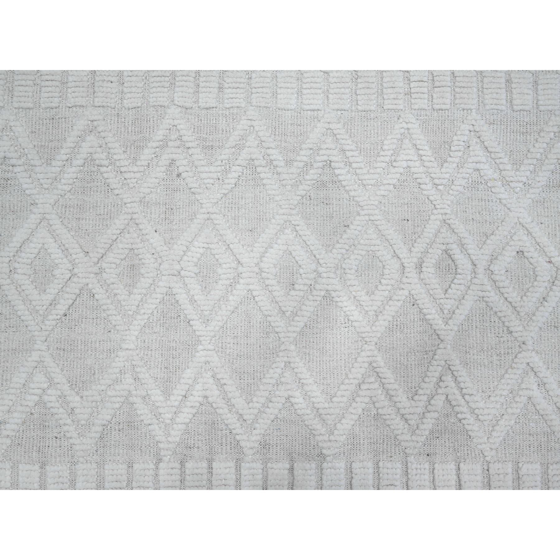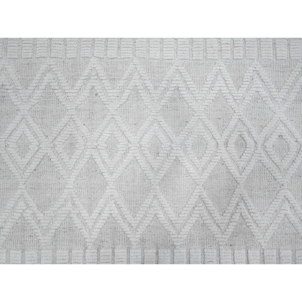9'x12'6" Polar Bear White, Hand Knotted Beni Ourain Geometric Moroccan Weave Inspired Design, 100% Wool, Oriental Rug FWR535170