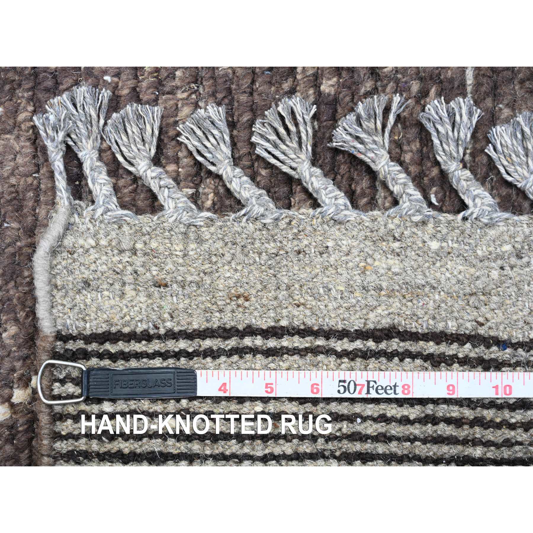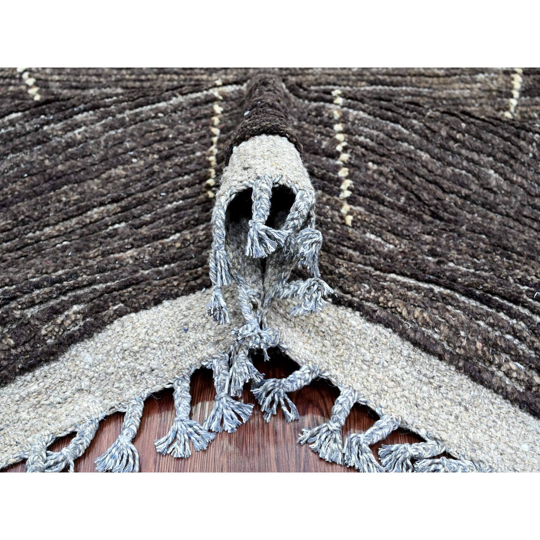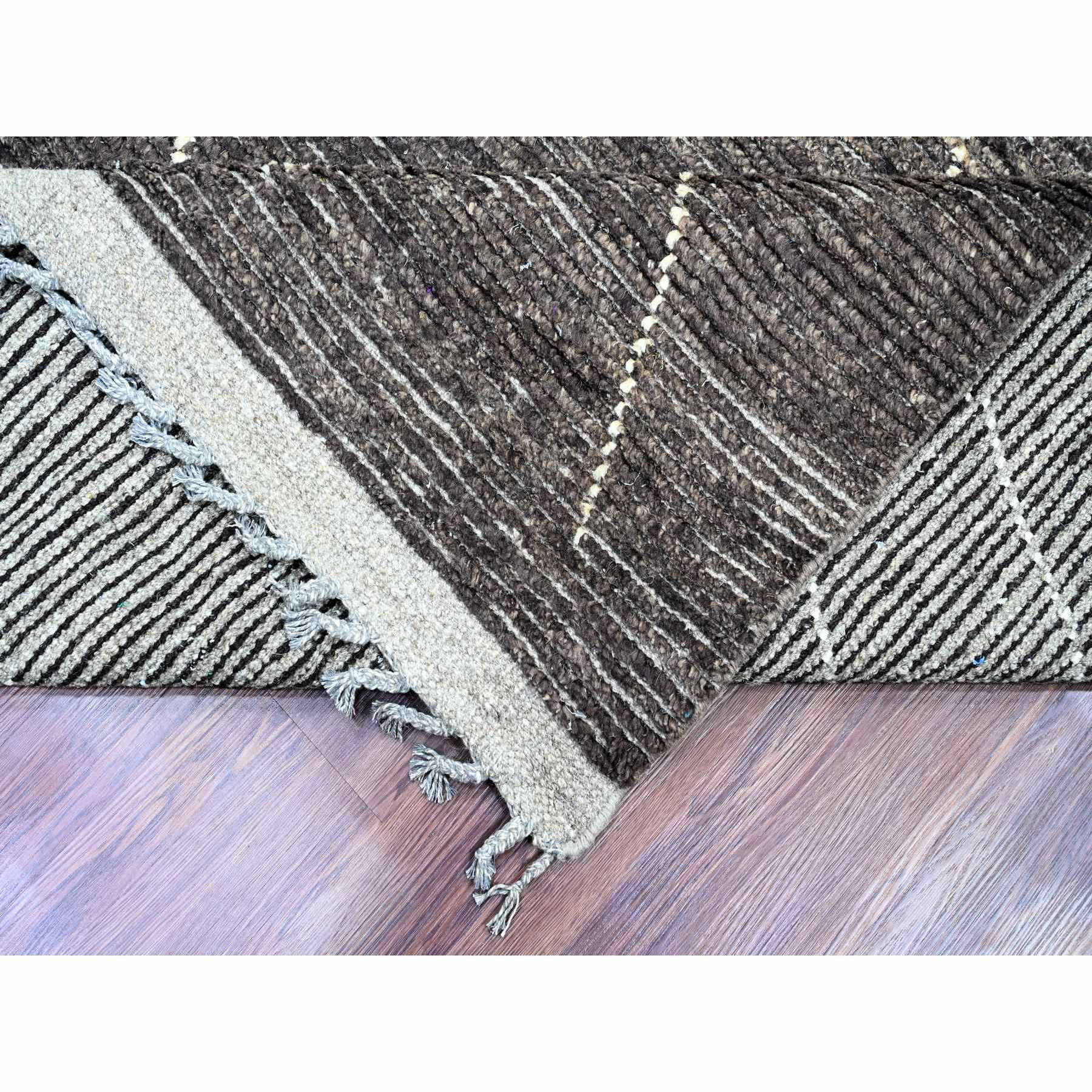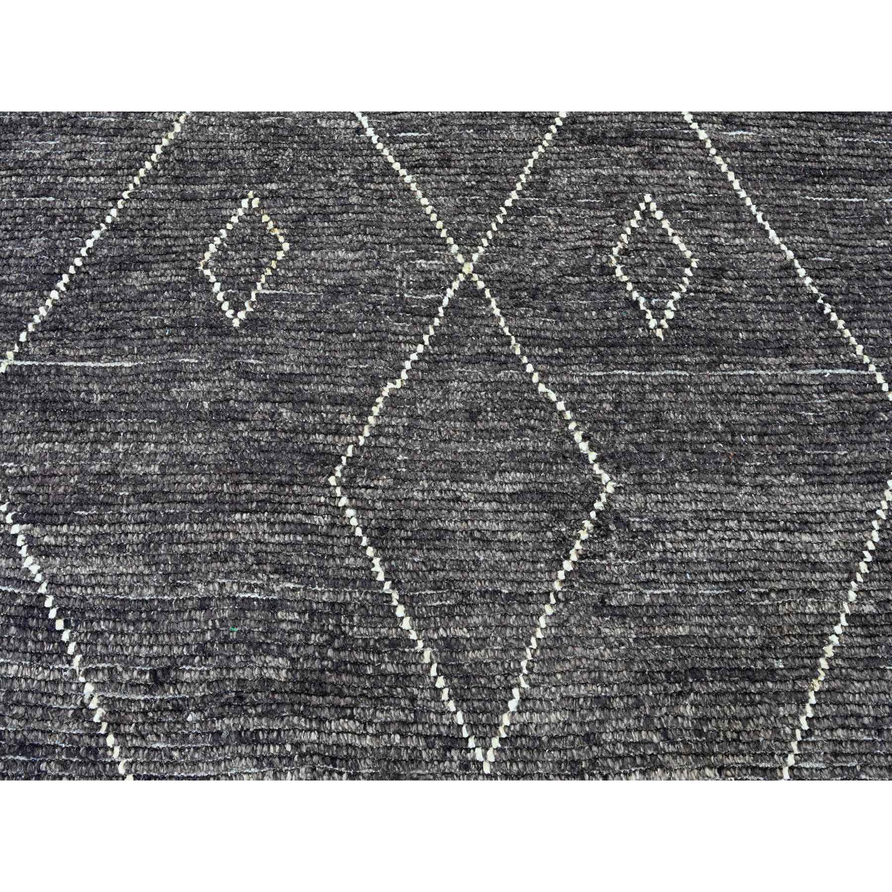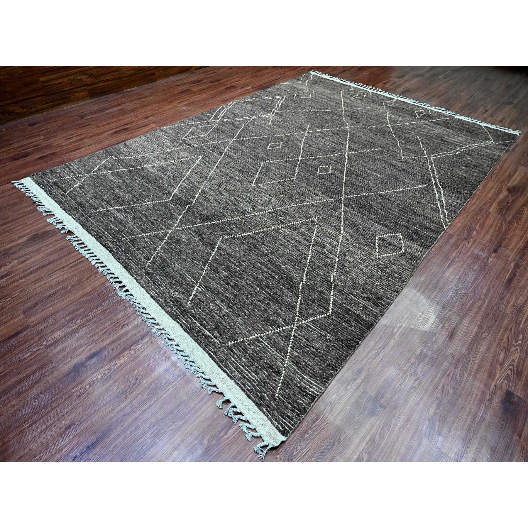 9'x12'8" Charcoal Black, Moroccan Weave With Geometric Pattern, Soft Wool, Hand Knotted, Tone On Tone, Textured Pile, Oriental Rug FWR125370