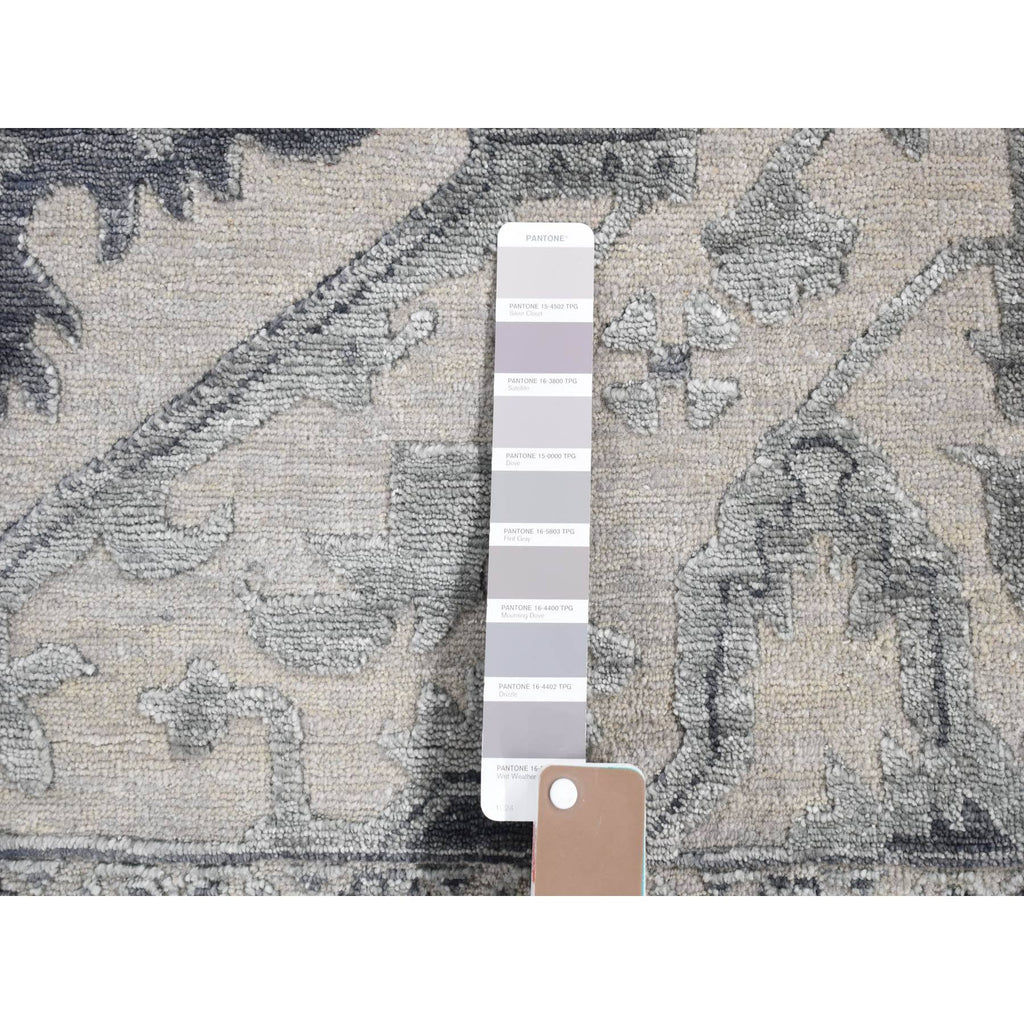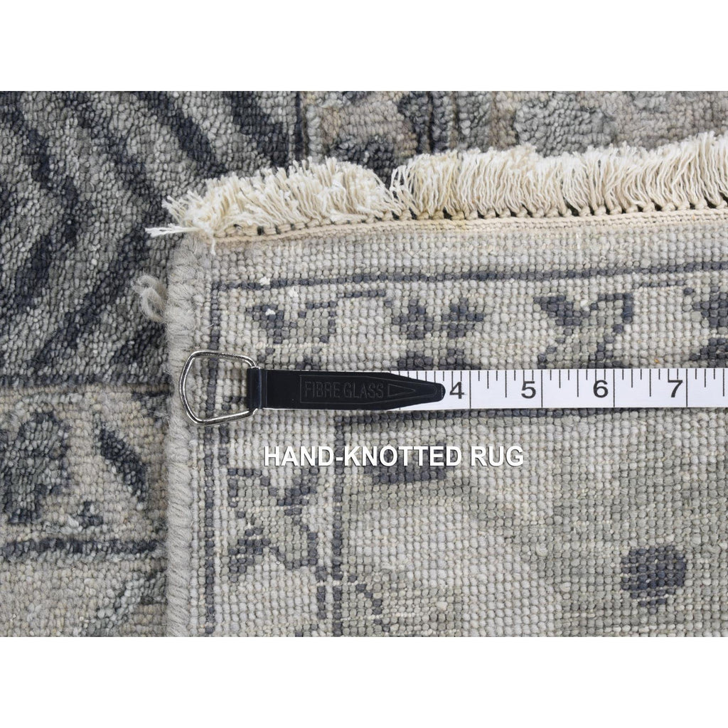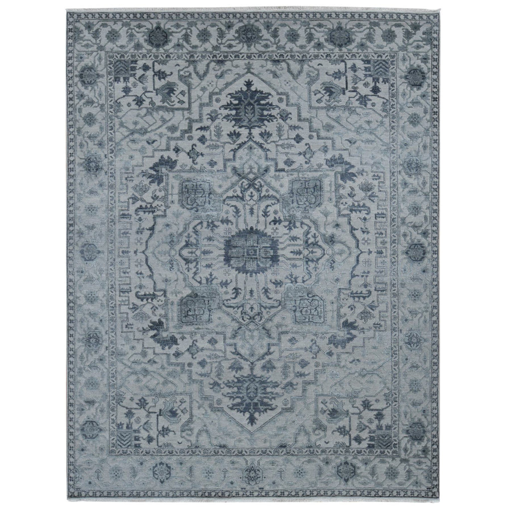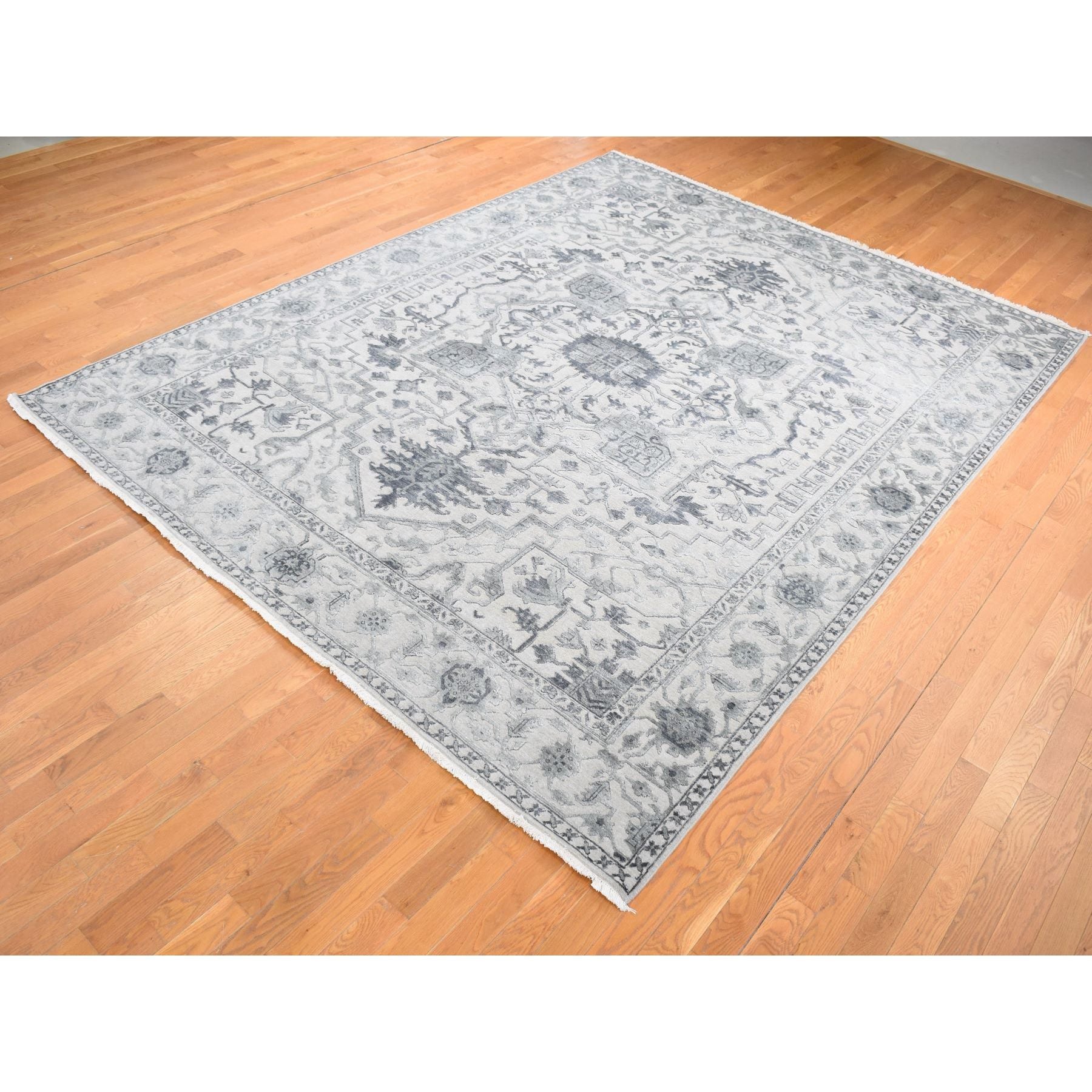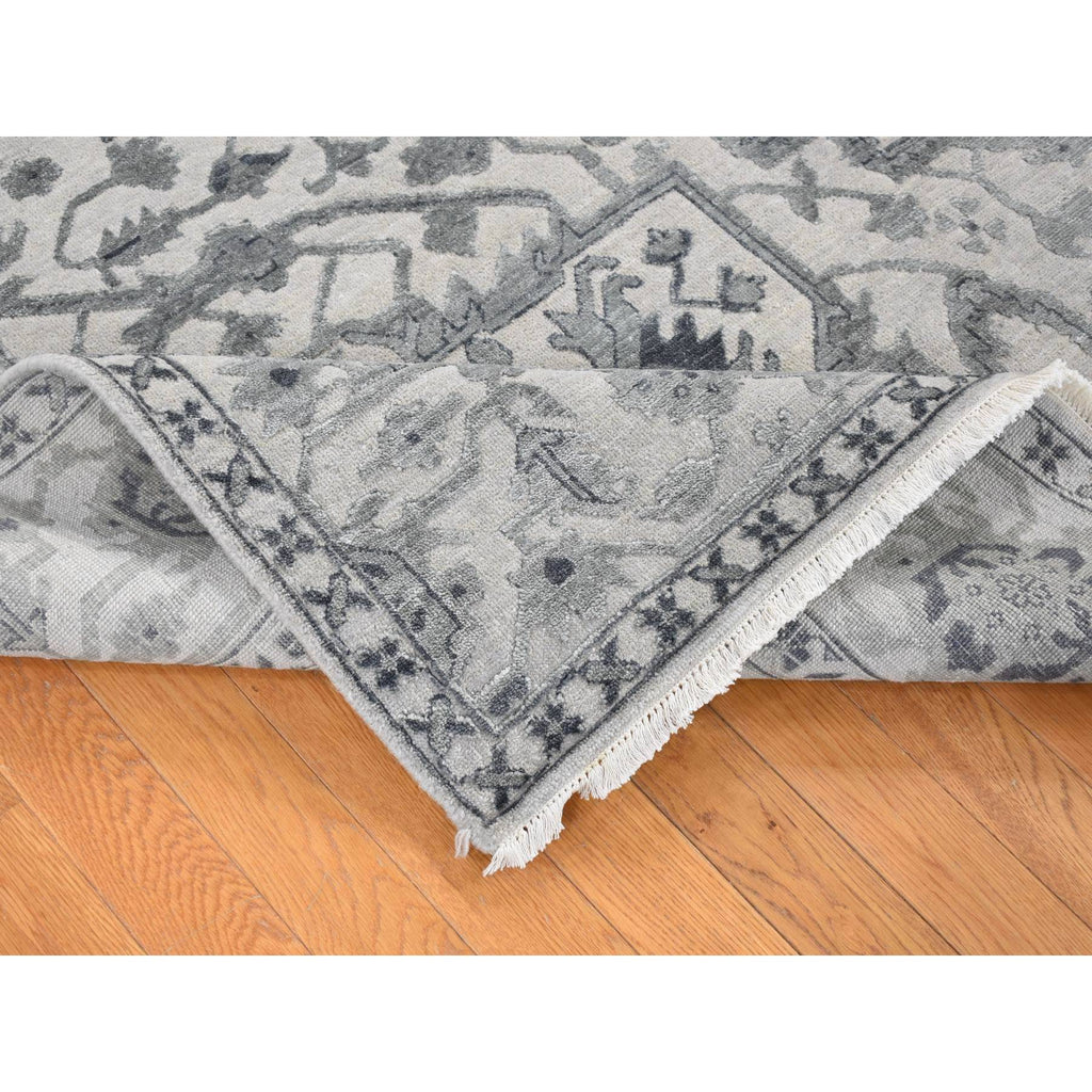 9'x12' Ash Grey, Heriz Design With All Over Pattern Vegetable Dyes, Wool And Silk Hand Knotted, Oriental Rug FWR484404