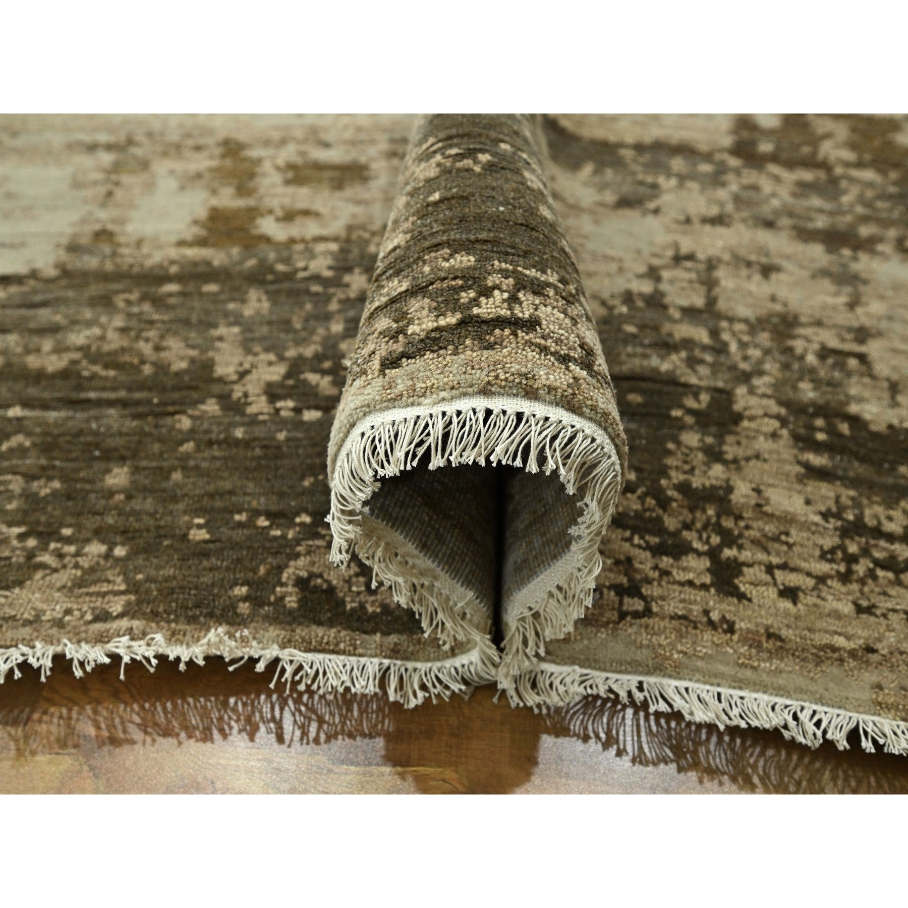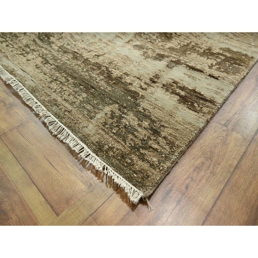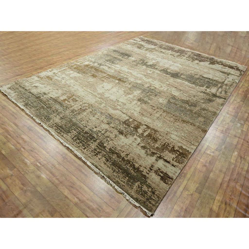 9'x12' Beige & Brown, Modern Abstract Design With Natural Colors, Wool And Silk, Hand Knotted, Oriental Rug FWR458034