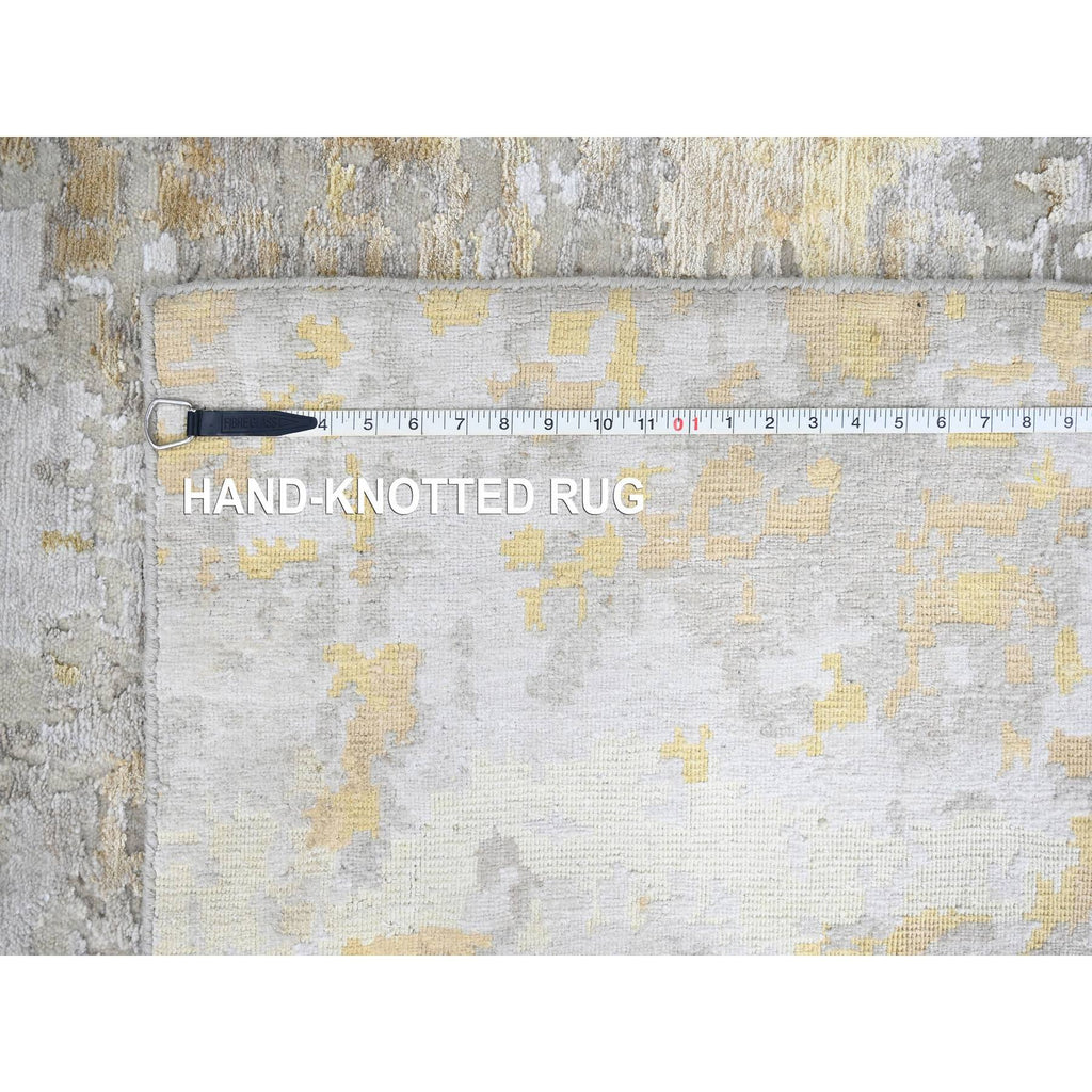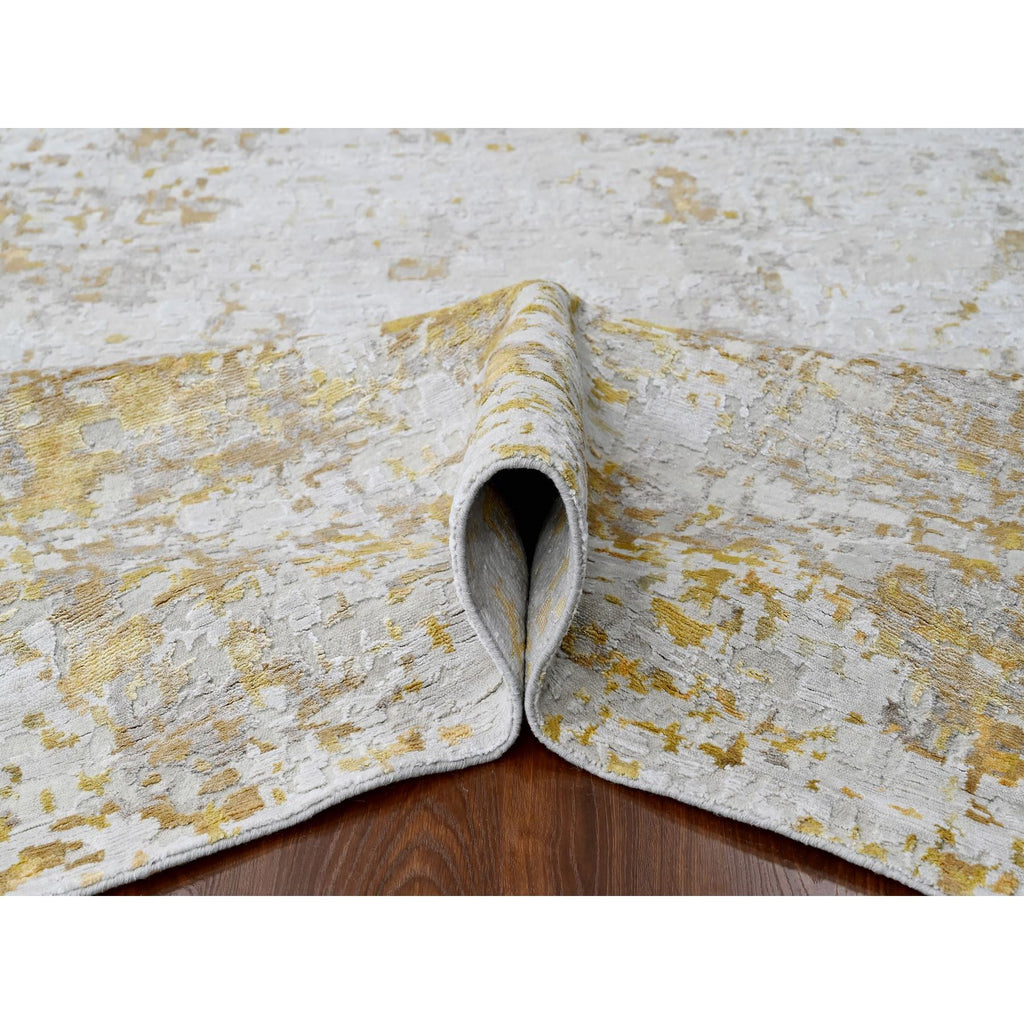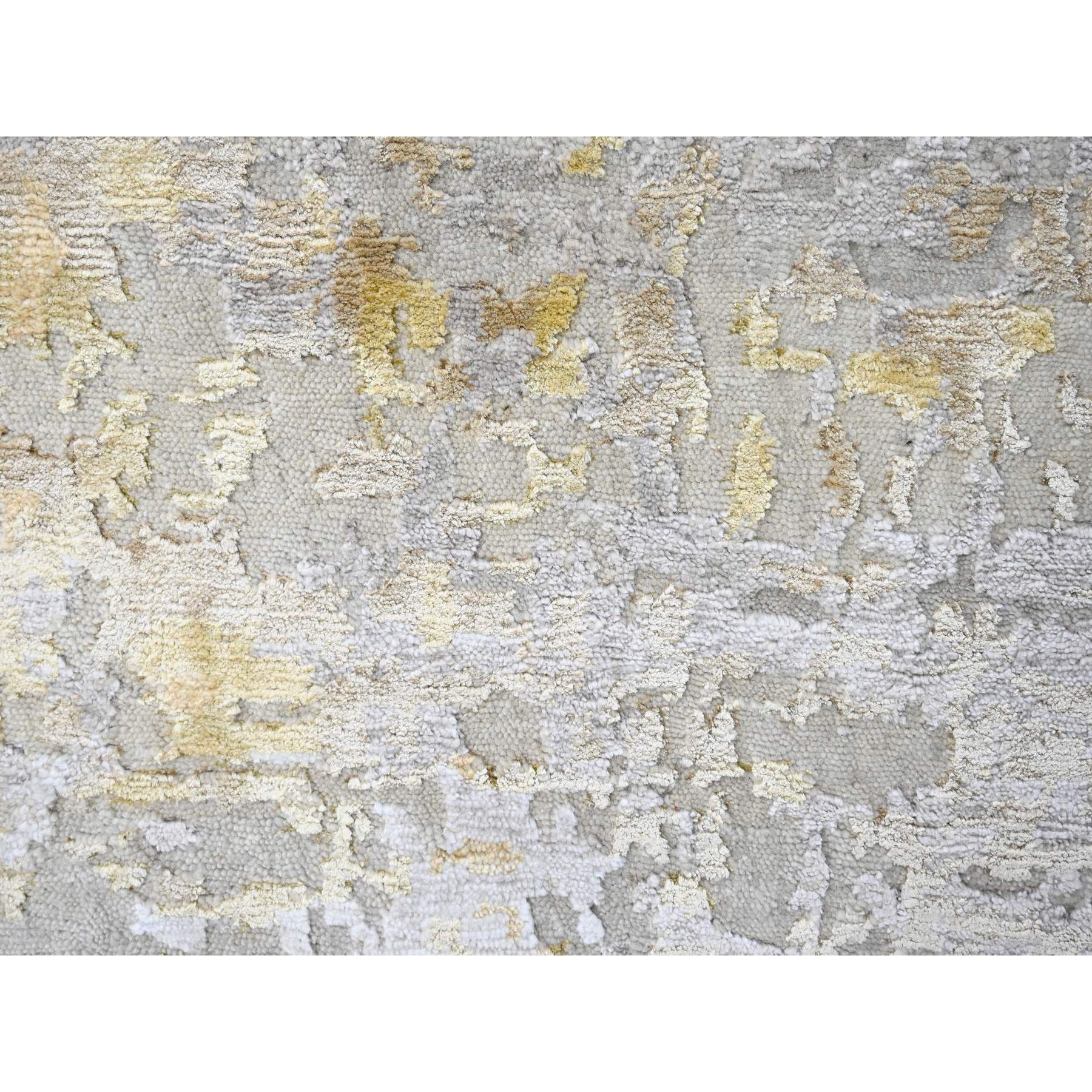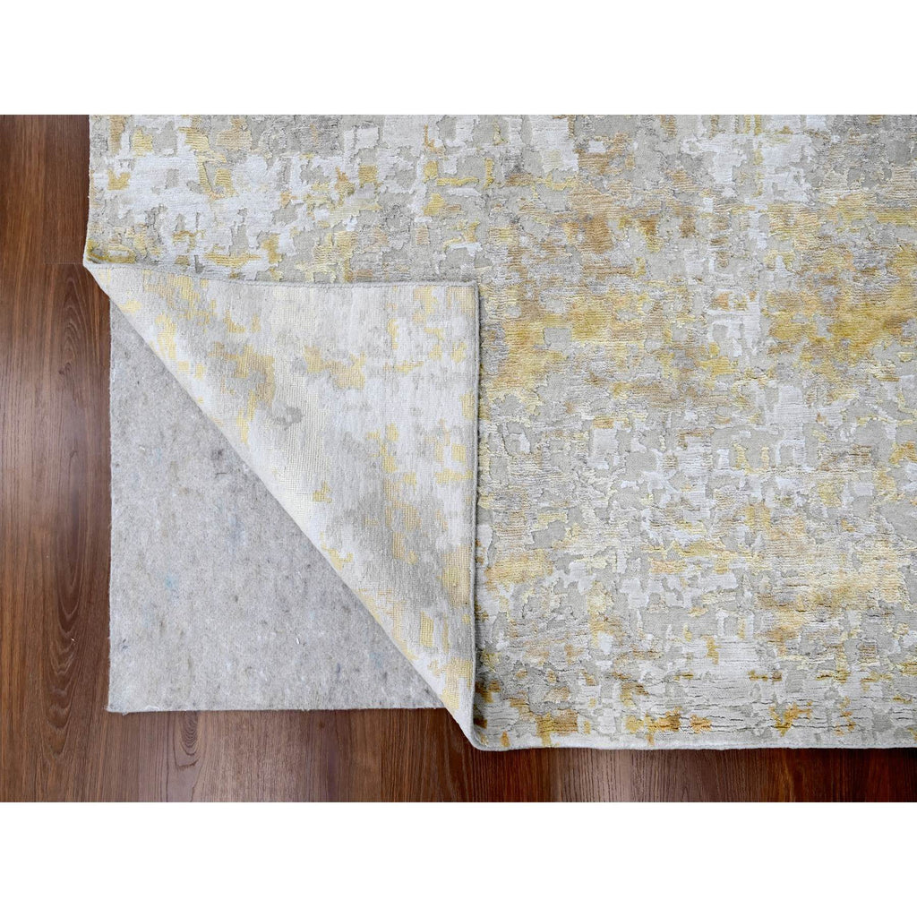 9'x12' Beige With Gold, Abstract Design, Wool And Silk, Hi-low Pile, Densely Woven, Hand Knotted, Oriental Rug FWR61170